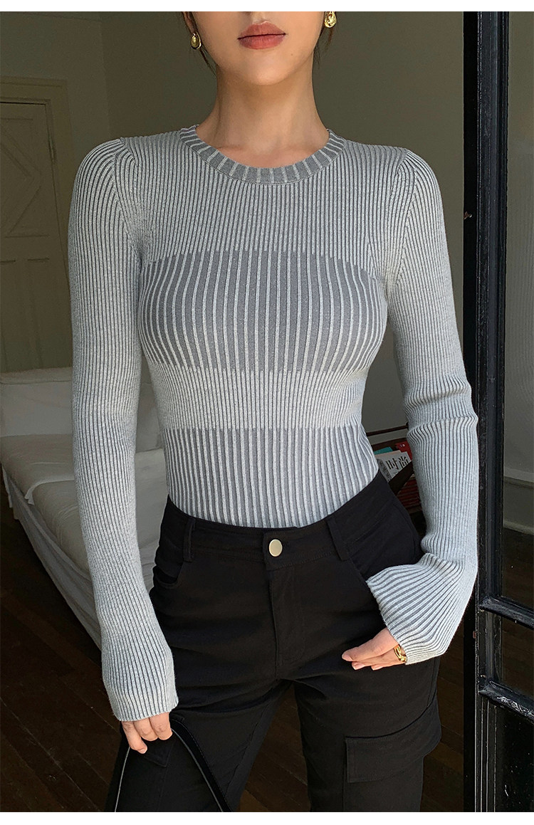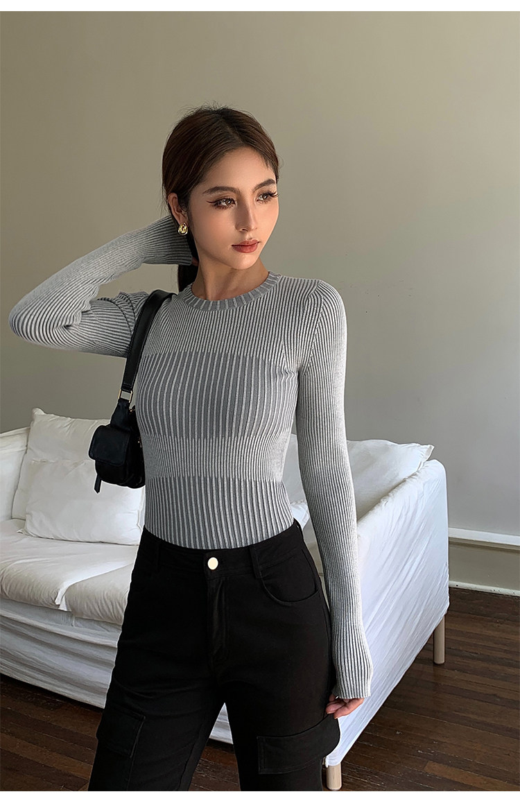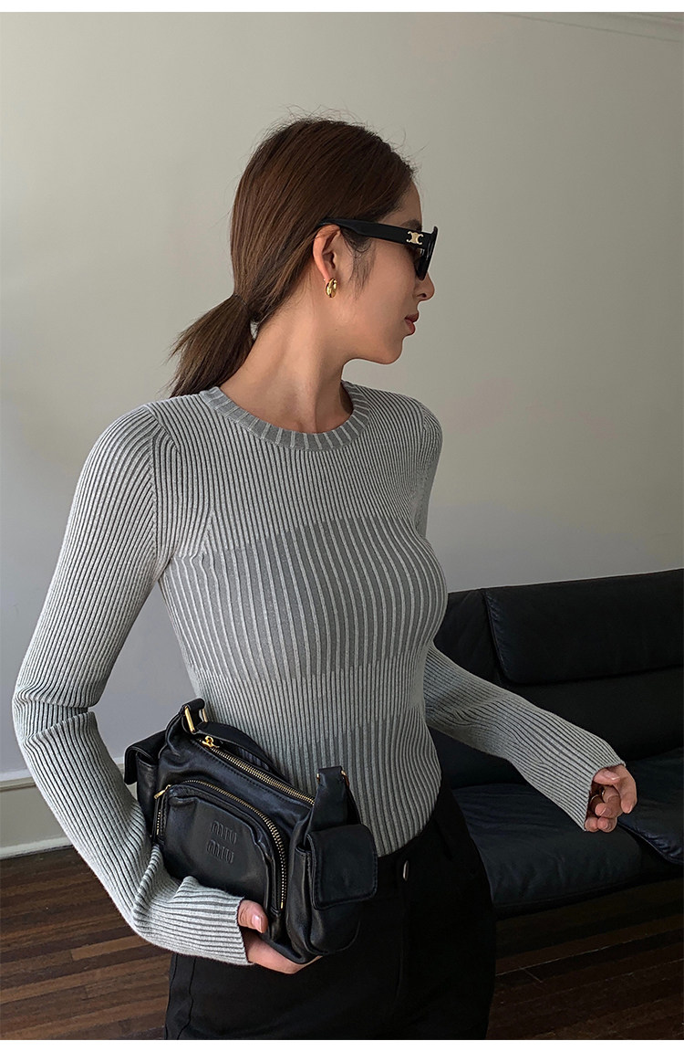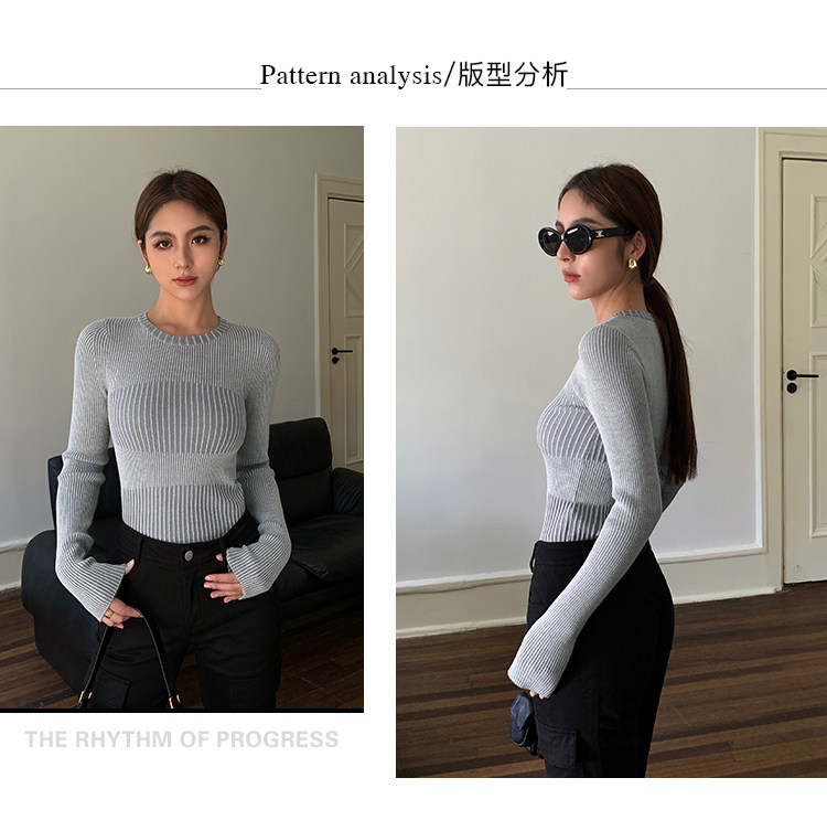 Нева Ху черная вязаная базовая рубашка для женщин 2024 Весна Новая корейская круглая шея универсальные внутренние колготки