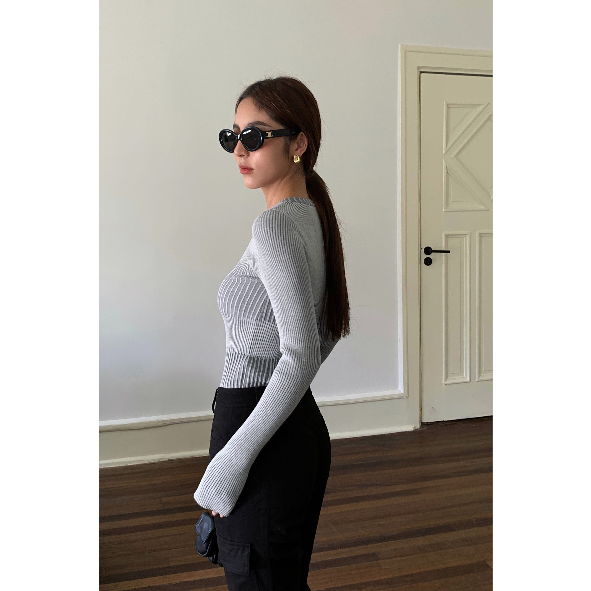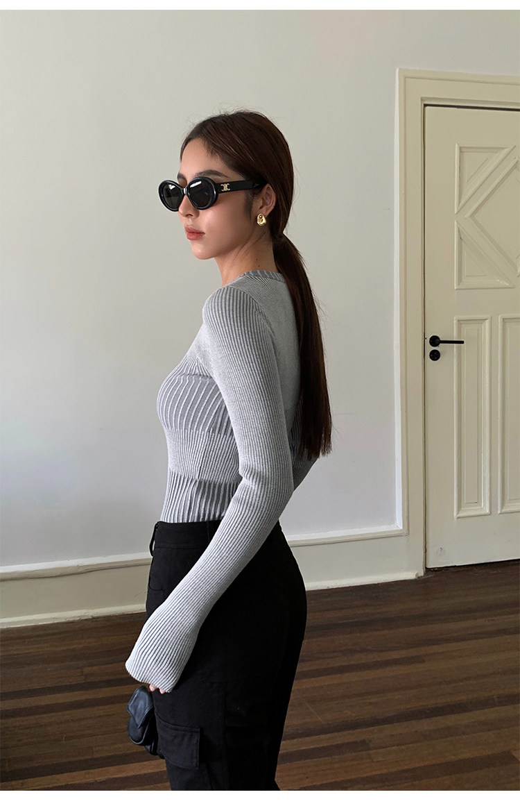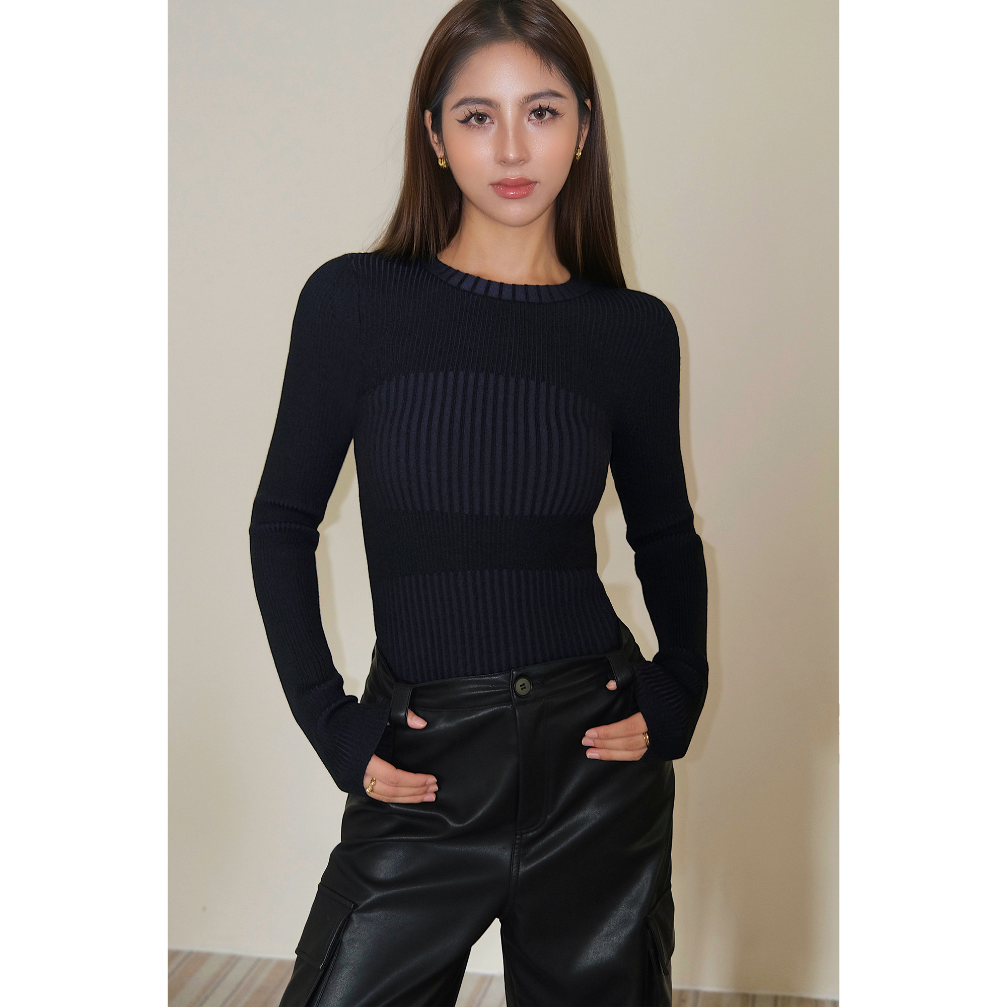 Нева Ху черная вязаная базовая рубашка для женщин 2024 Весна Новая корейская круглая шея универсальные внутренние колготки