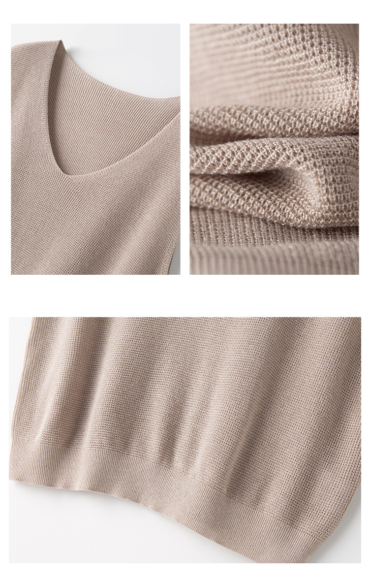 Многоцветный шерстяной шелковый японский трикотажный жилет, V-образный вырез