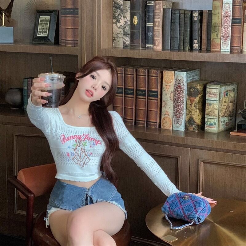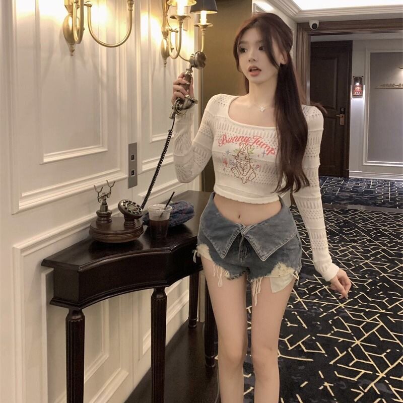 Костюм для джазового танца для девочек, ниша, горячая девушка, короткий свитер с длинными рукавами, сладкая и пряная нижняя рубашка в стиле джаз