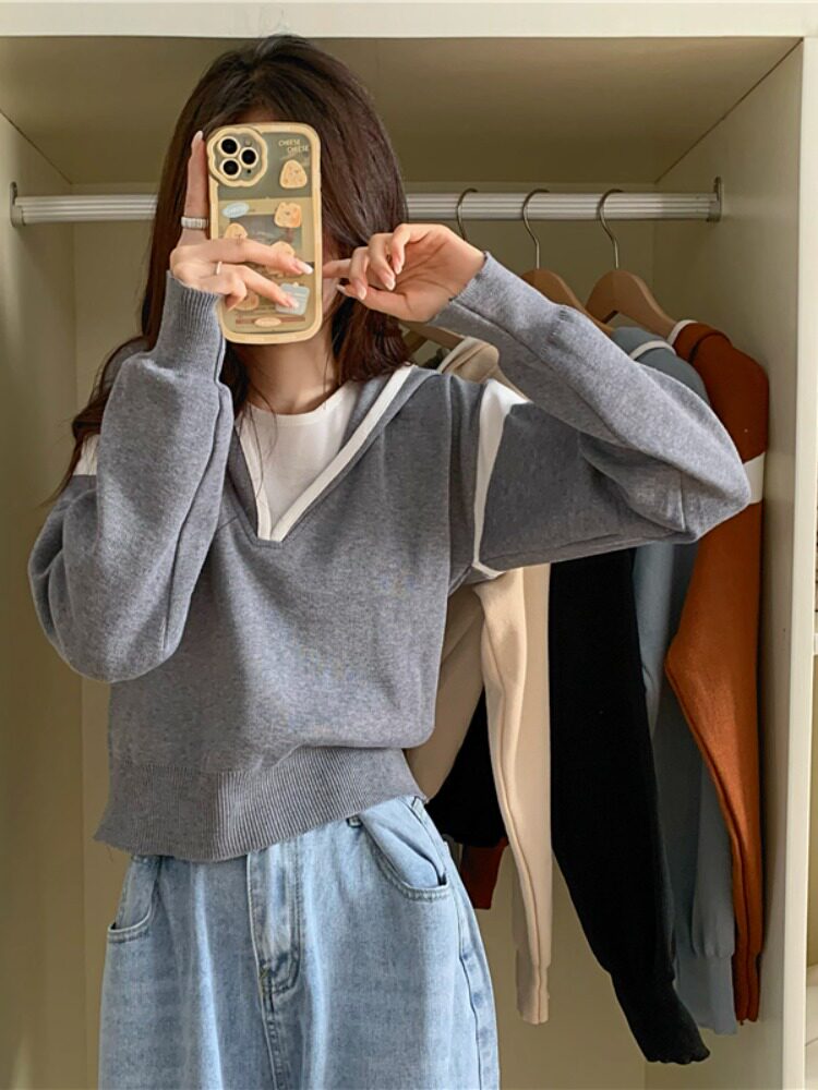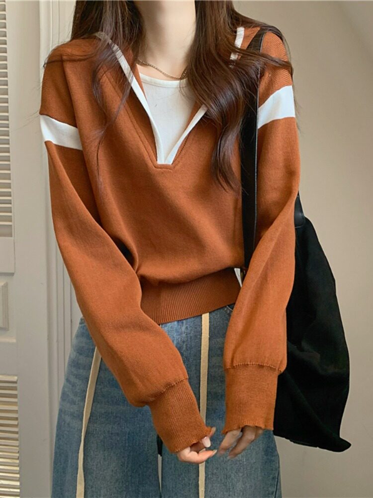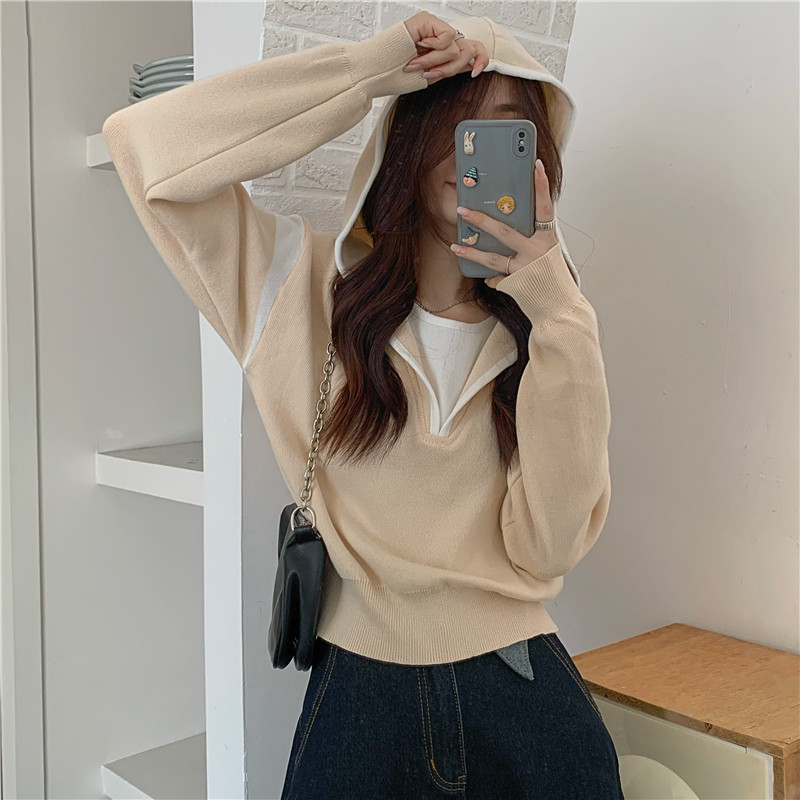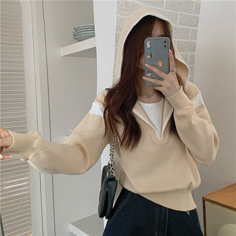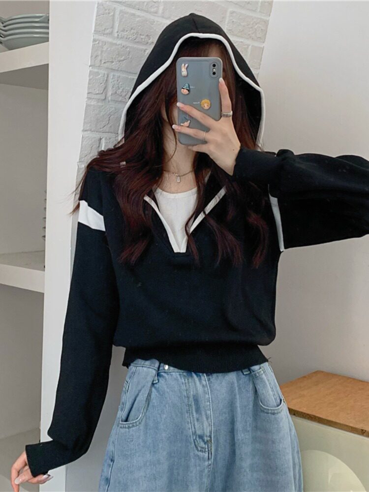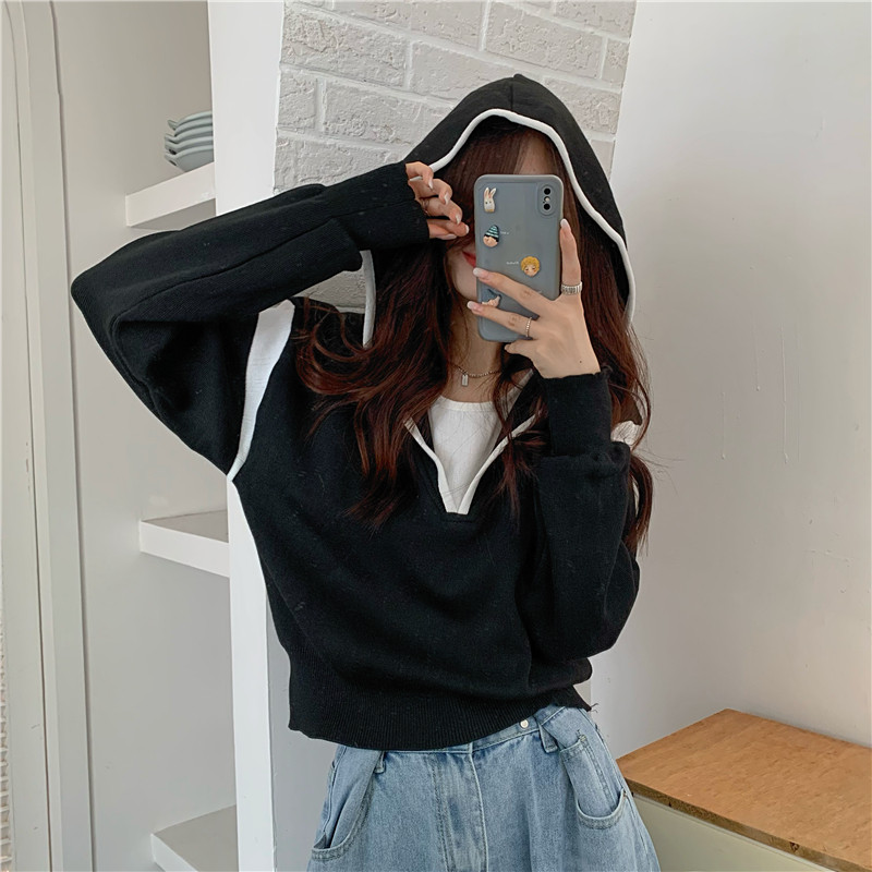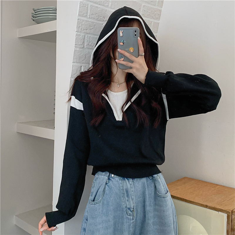 Комплект с капюшоном, трикотажный свитер, осенняя дизайнерская толстовка, оверсайз, тренд сезона