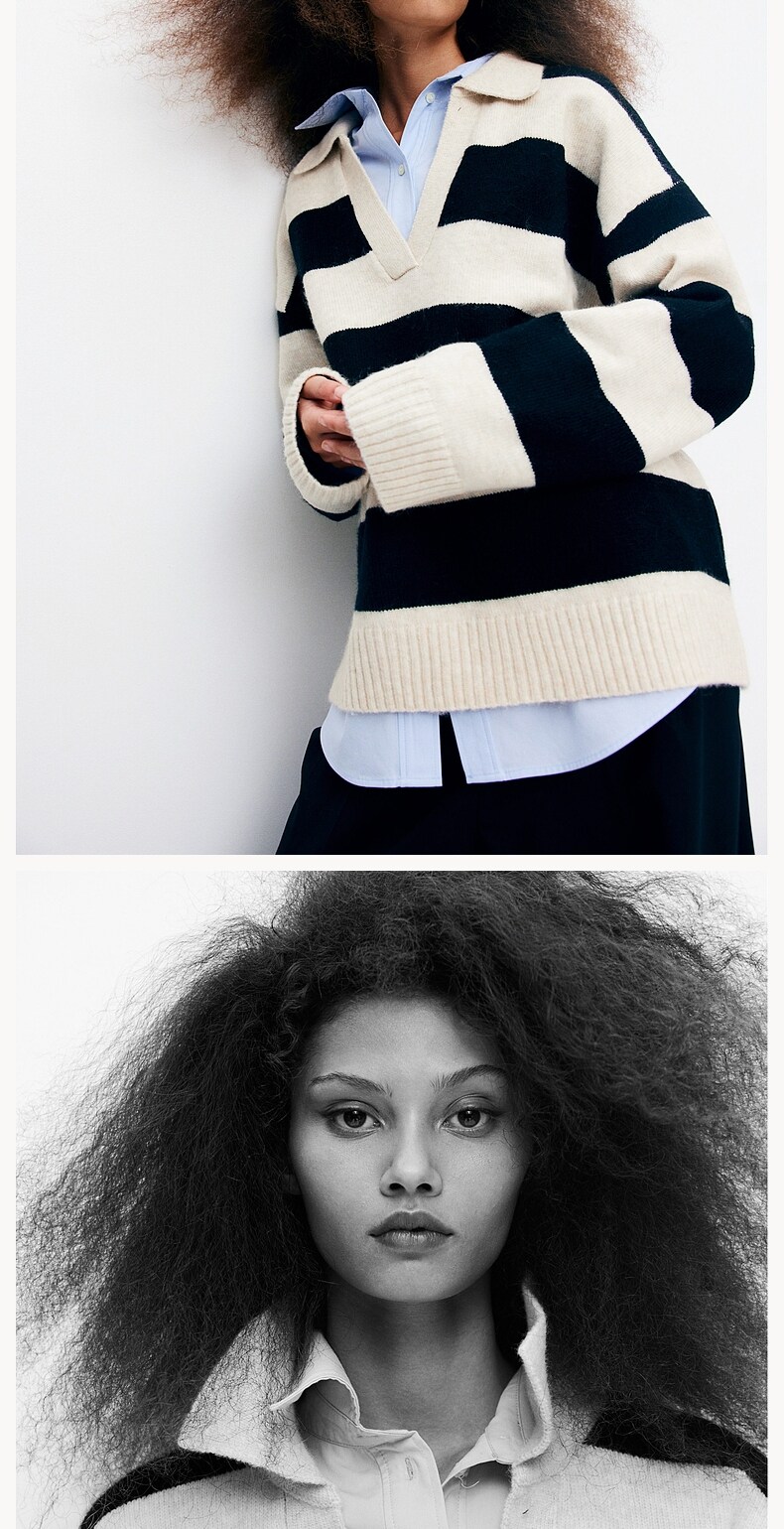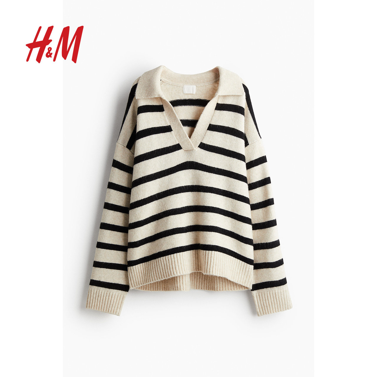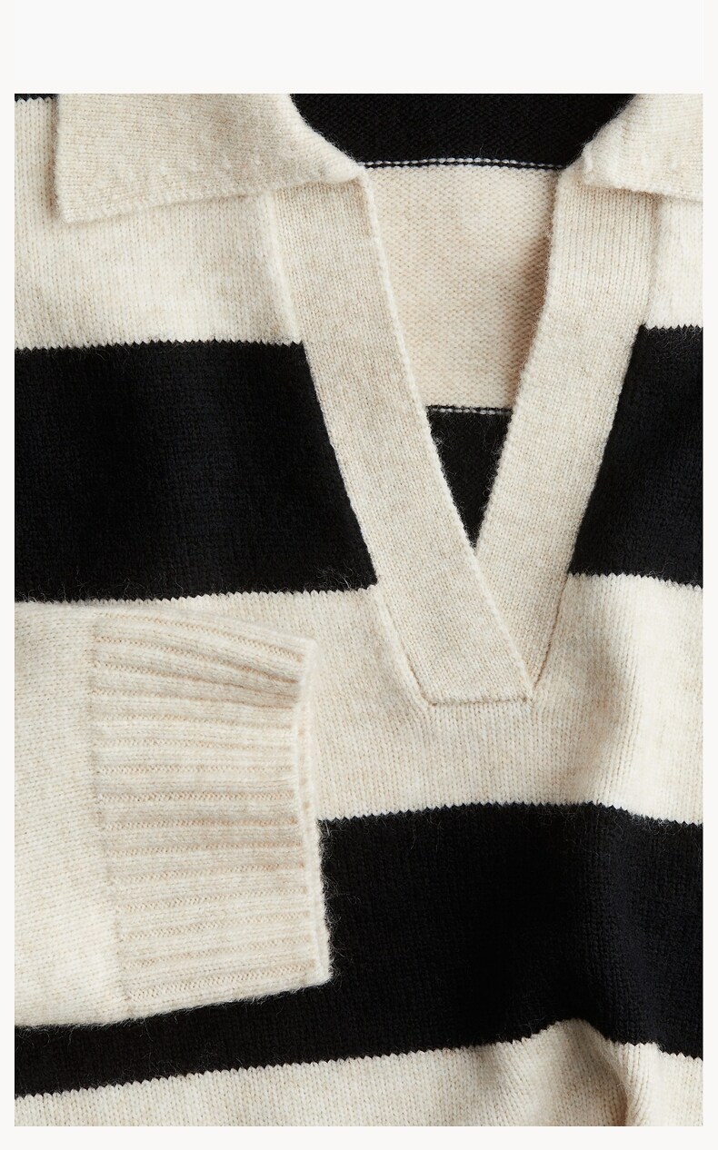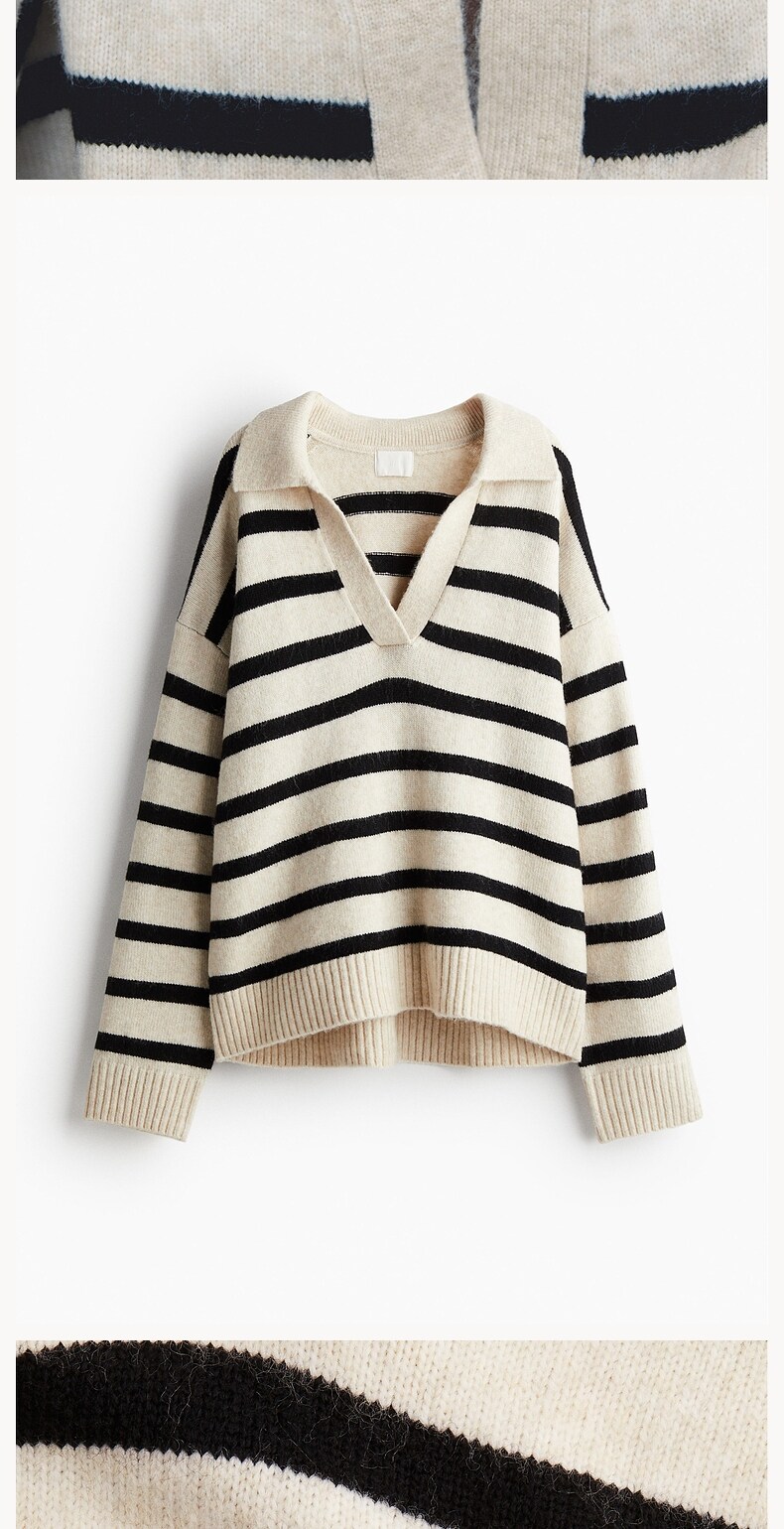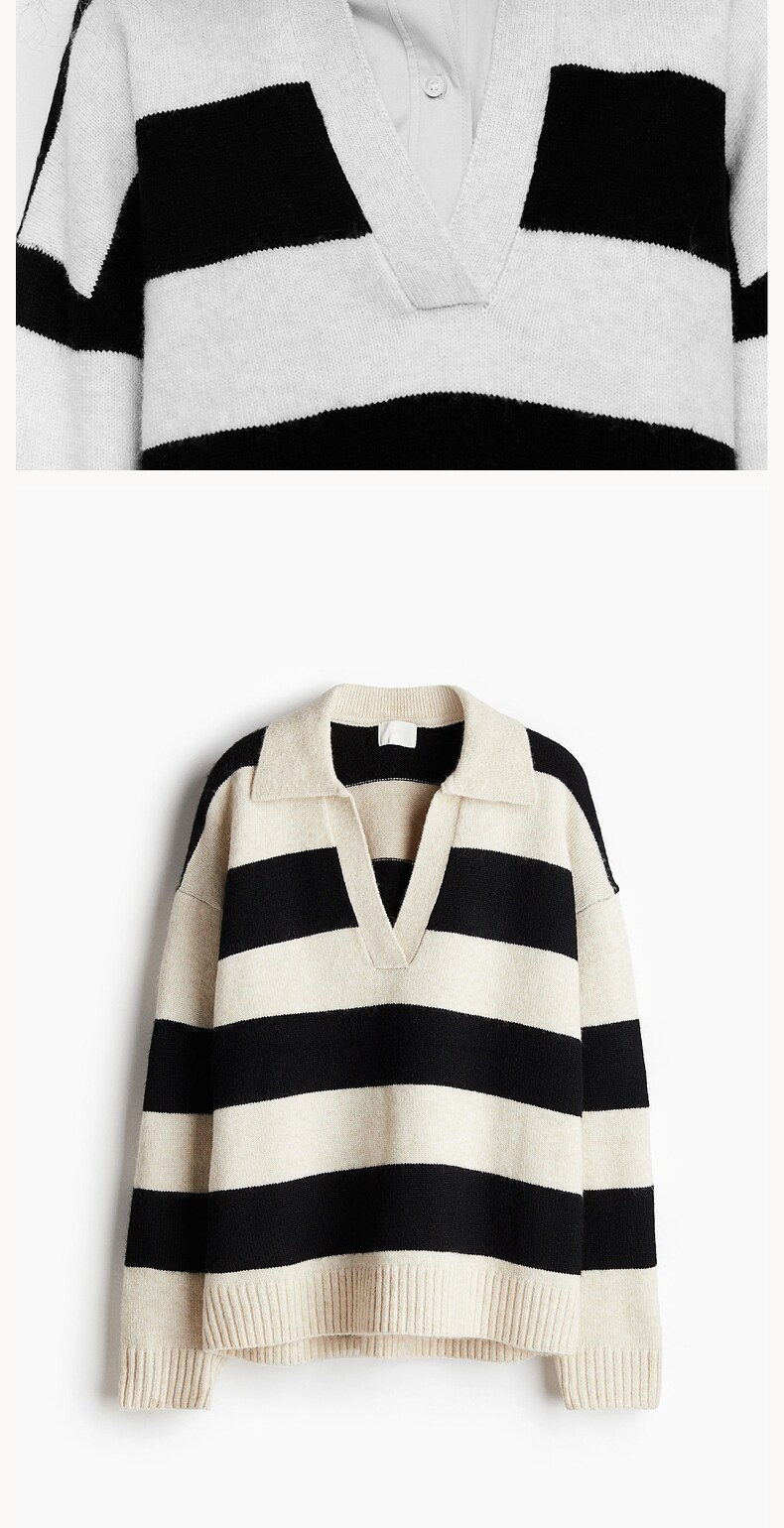 Женский вязаный свитер HM с v-образным вырезом, модный топ в полоску в стиле ретро, пуловер, нижняя рубашка, 1093199