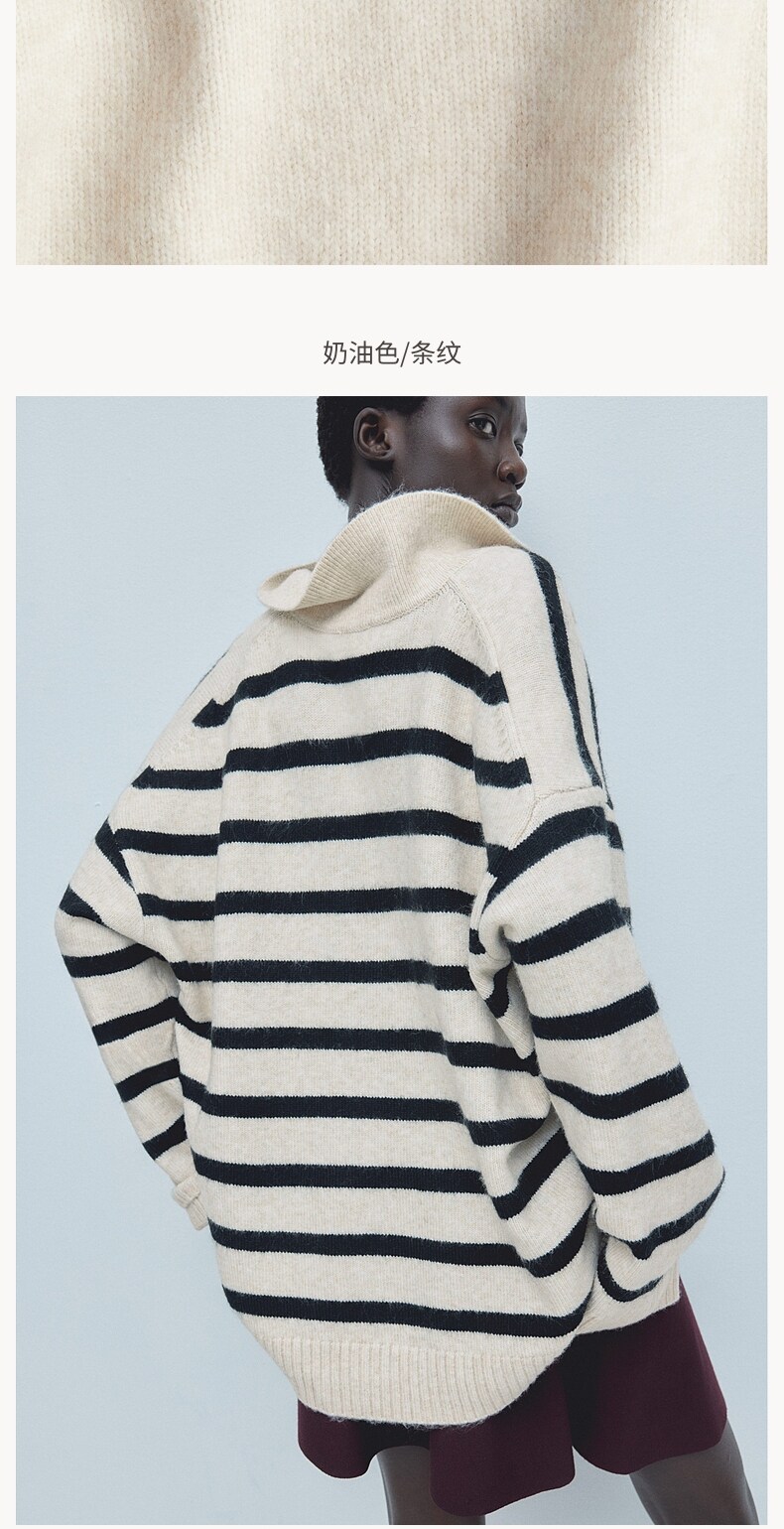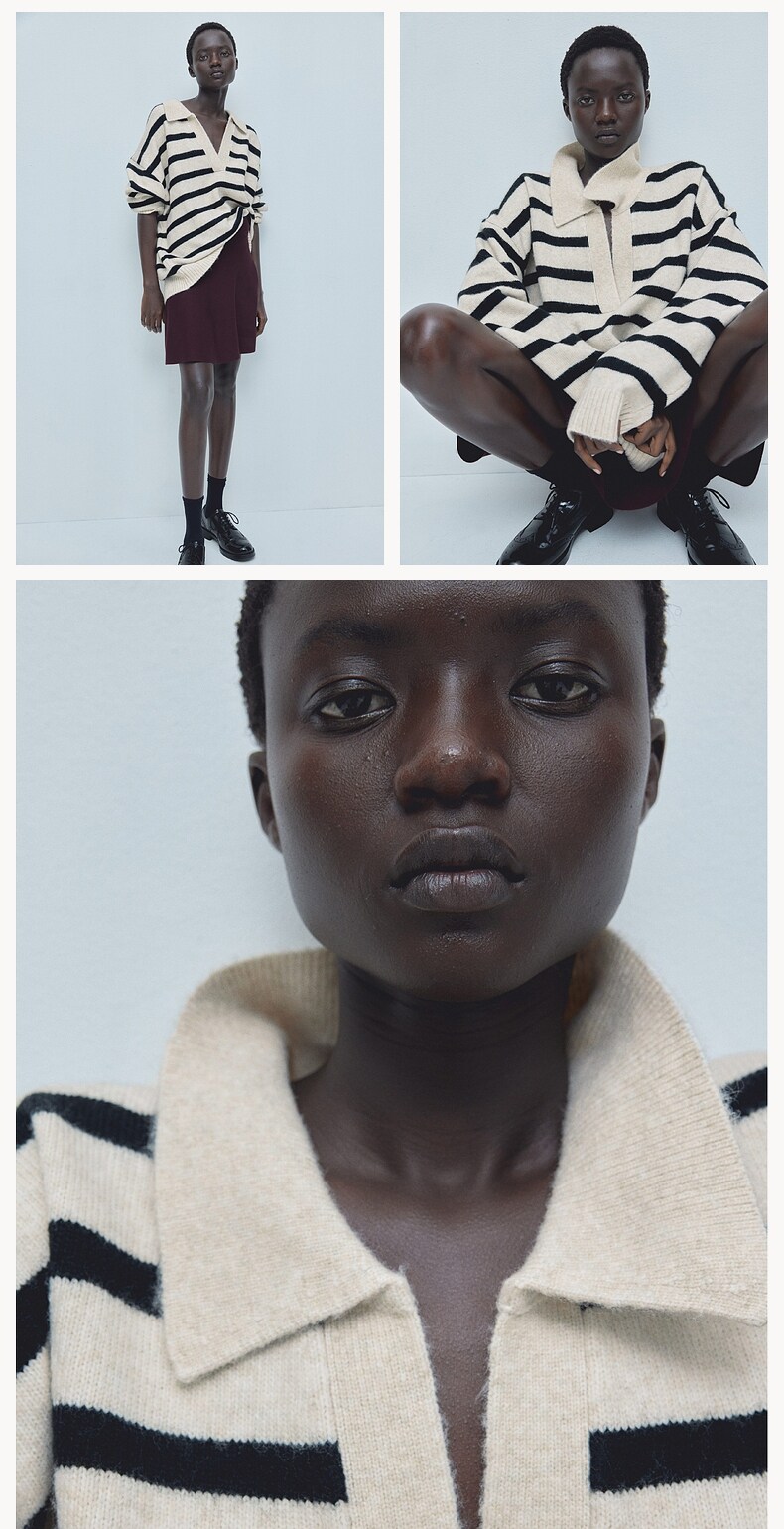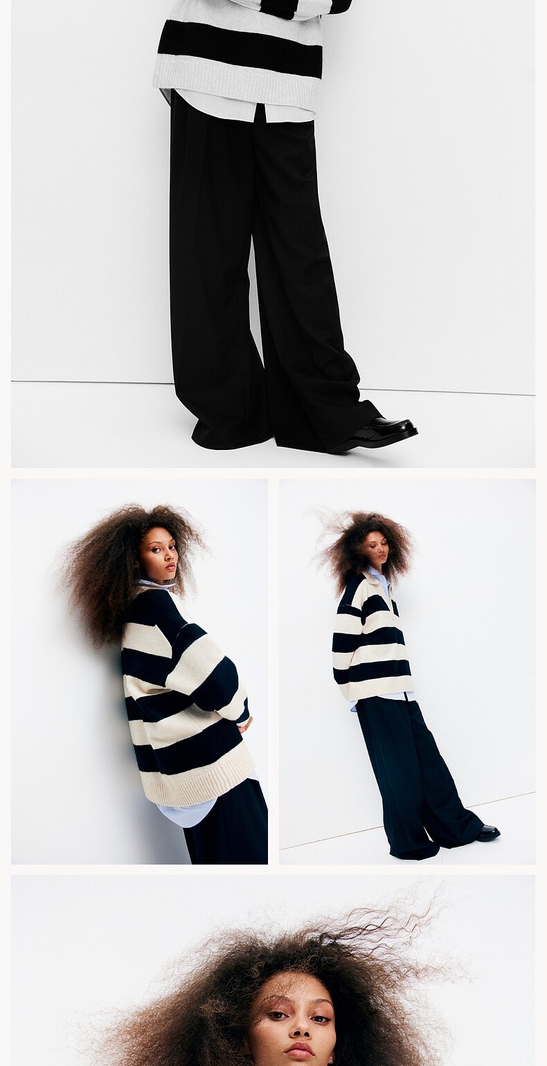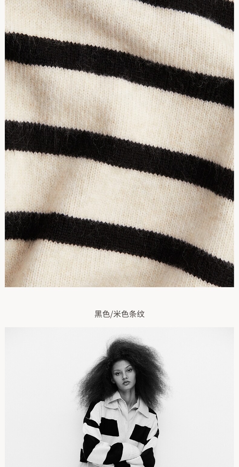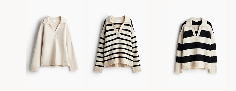Женский вязаный свитер HM с v-образным вырезом, модный топ в полоску в стиле ретро, пуловер, нижняя рубашка, 1093199