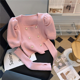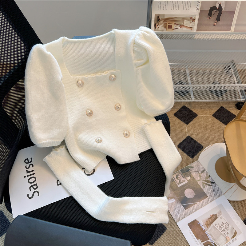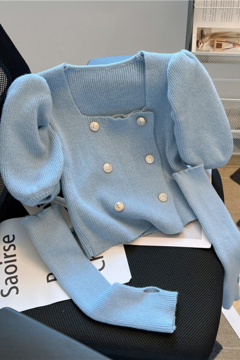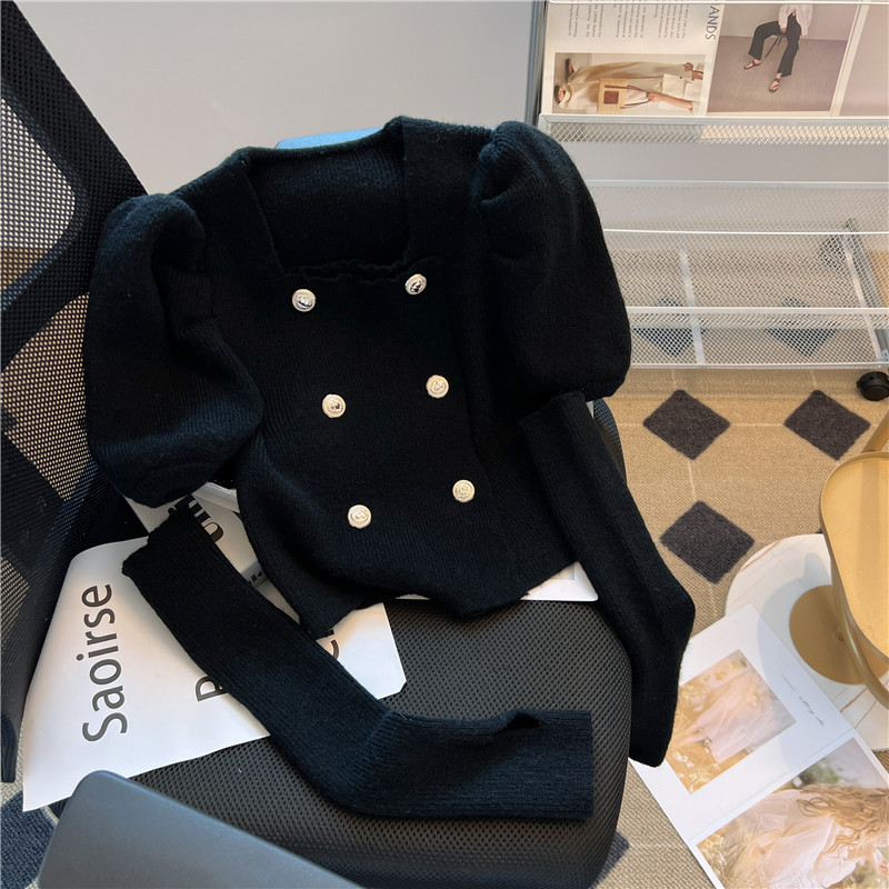 Небольшие нарукавники, демисезонный свитер, термобелье, короткая булавка, в стиле Шанель, квадратный вырез, рукава фонарики