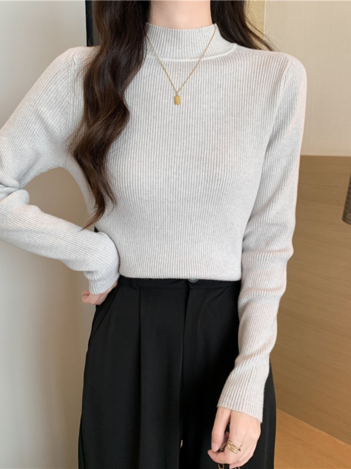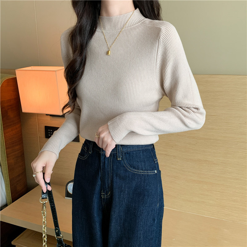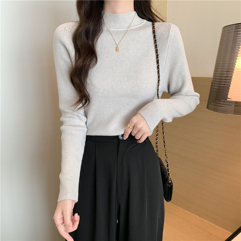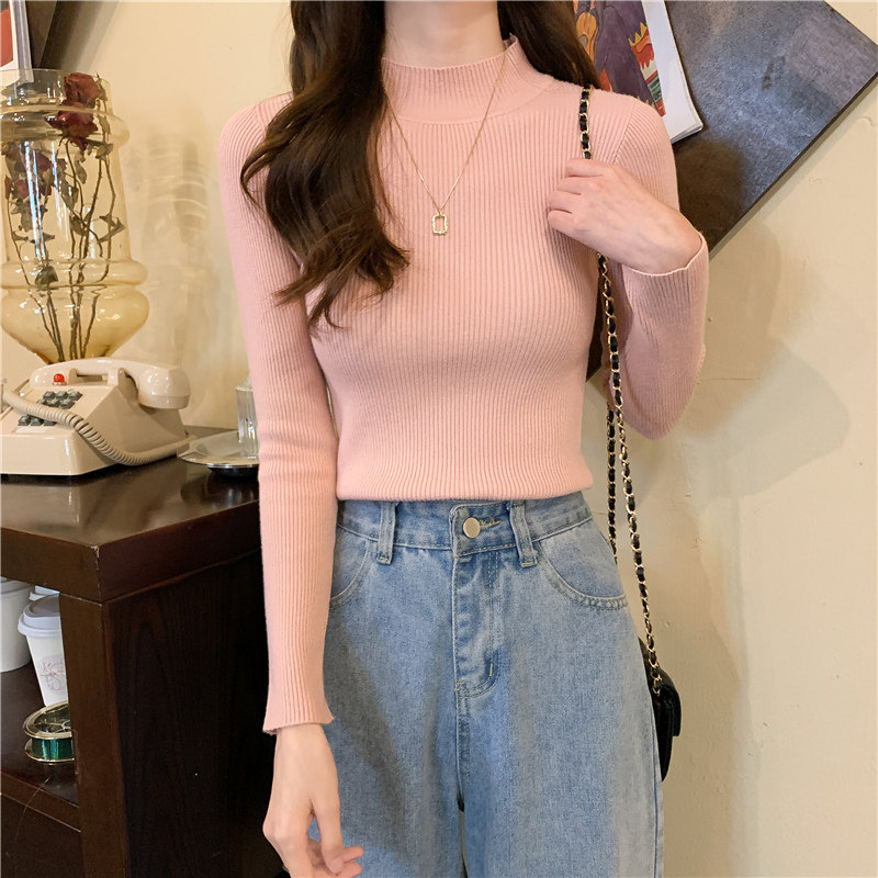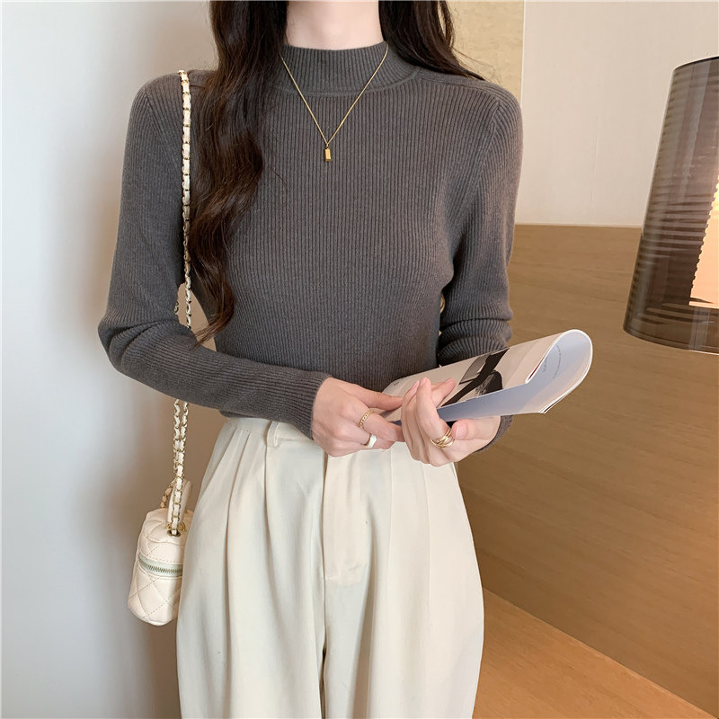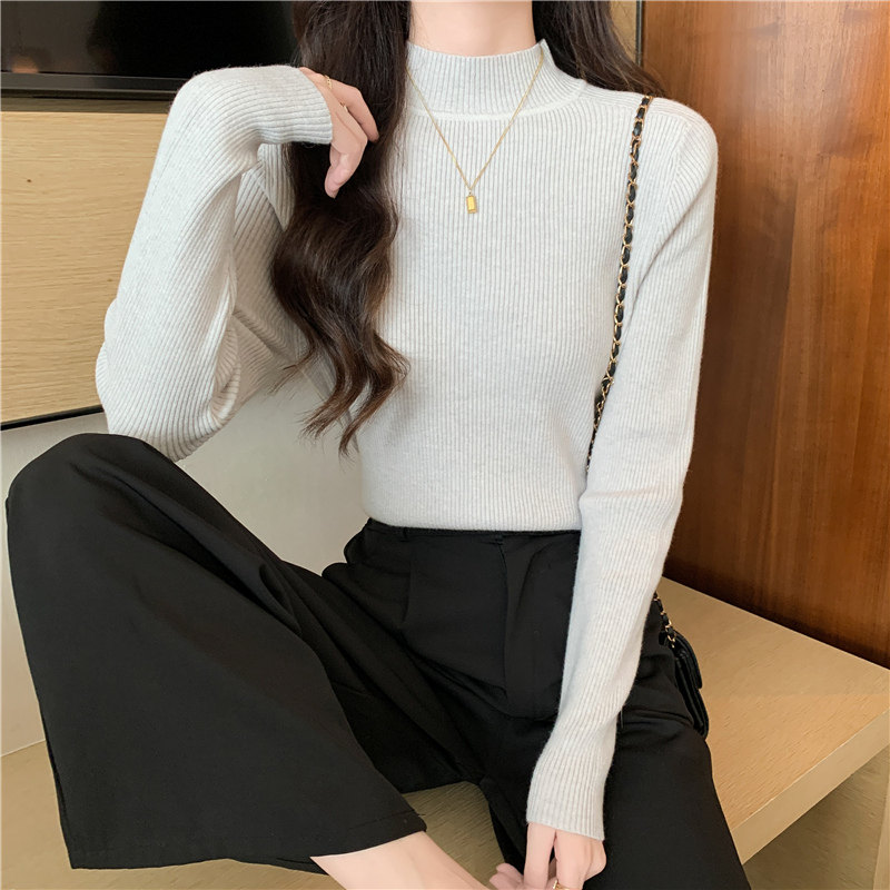 Трикотажный весенний осенний зимний свитер, приталенный лонгслив, высокий воротник