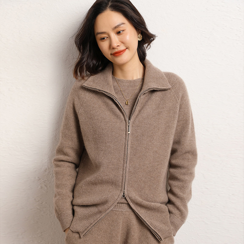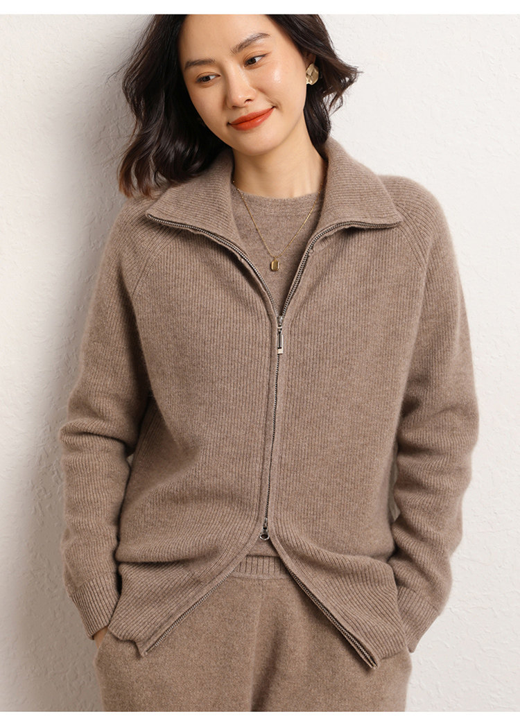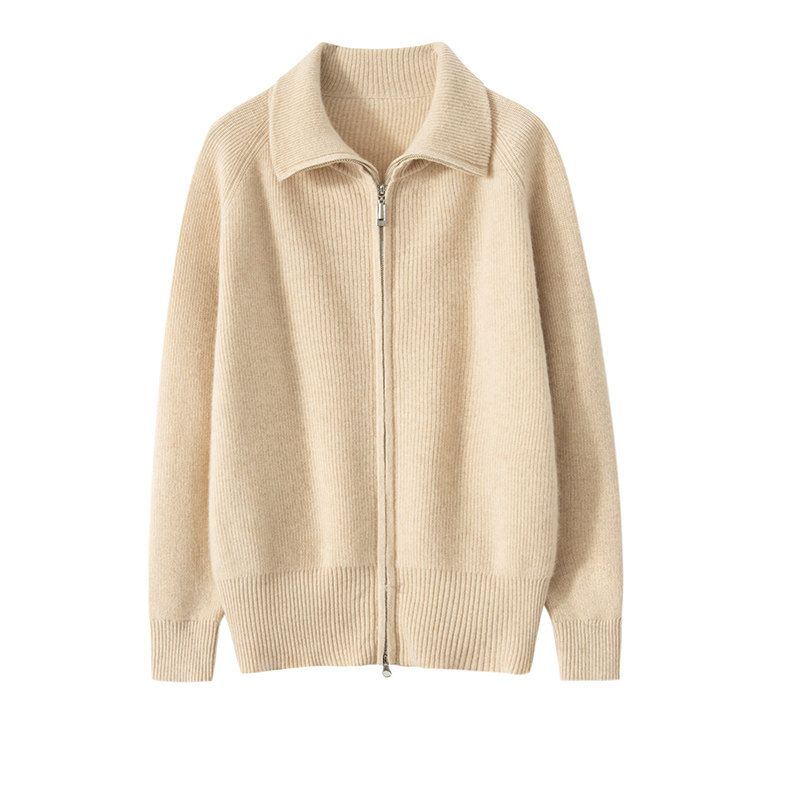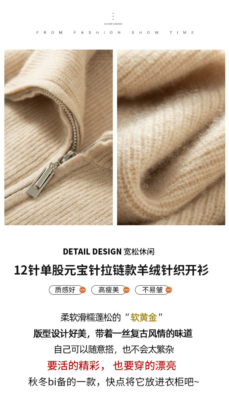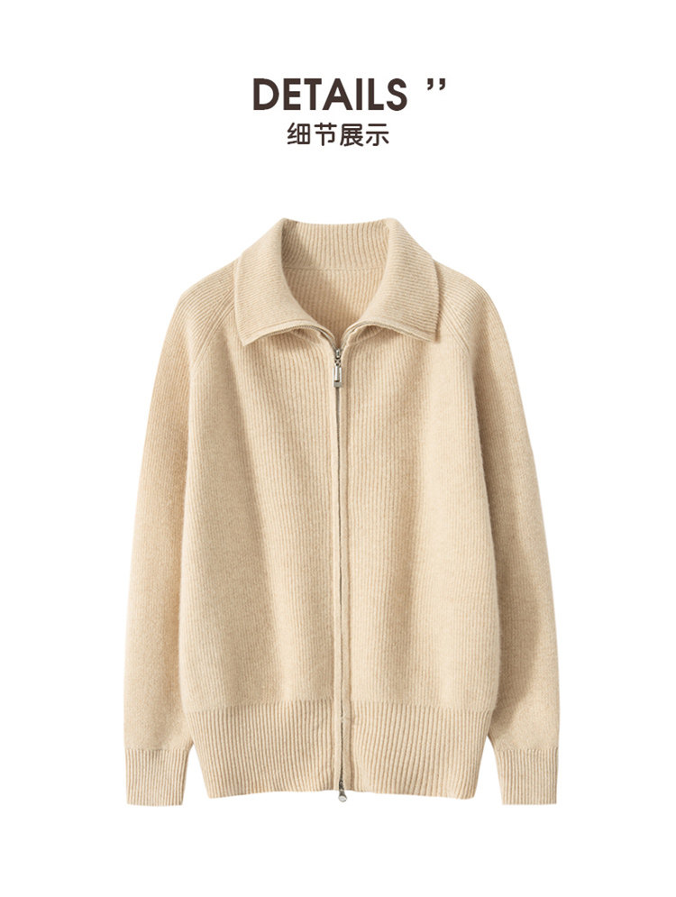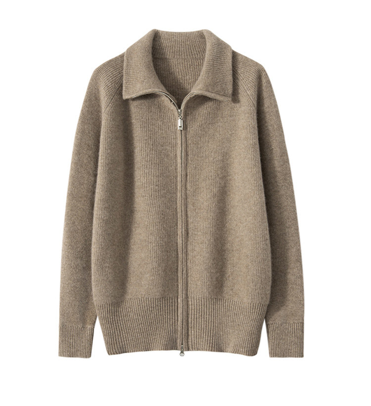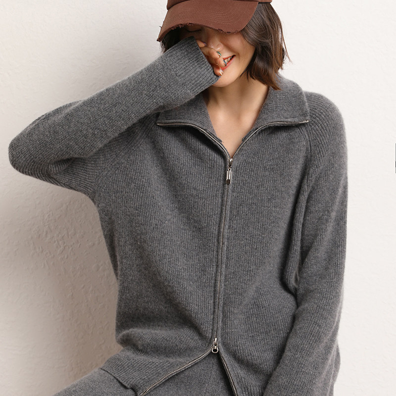 Демисезонный кашемировый кардиган с молнией, трикотажный свитер, шерстяная куртка, оверсайз, увеличенная толщина