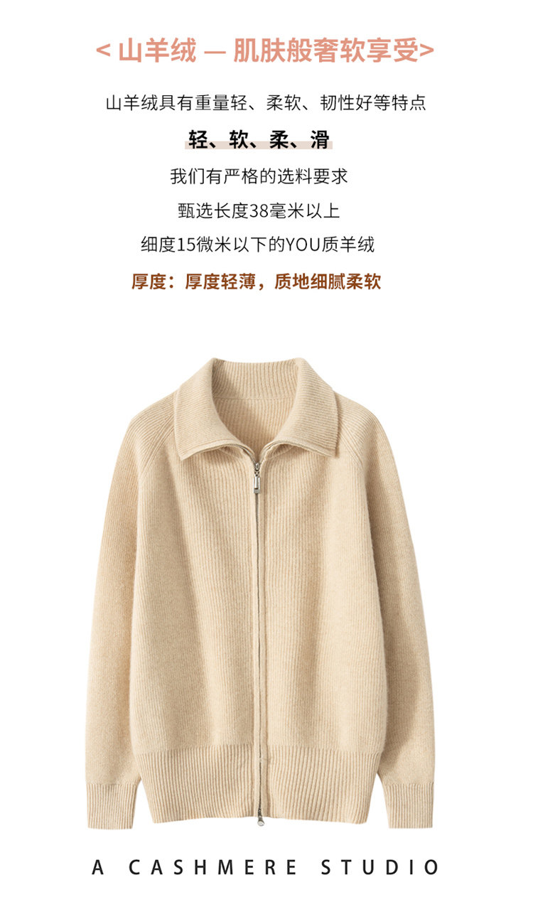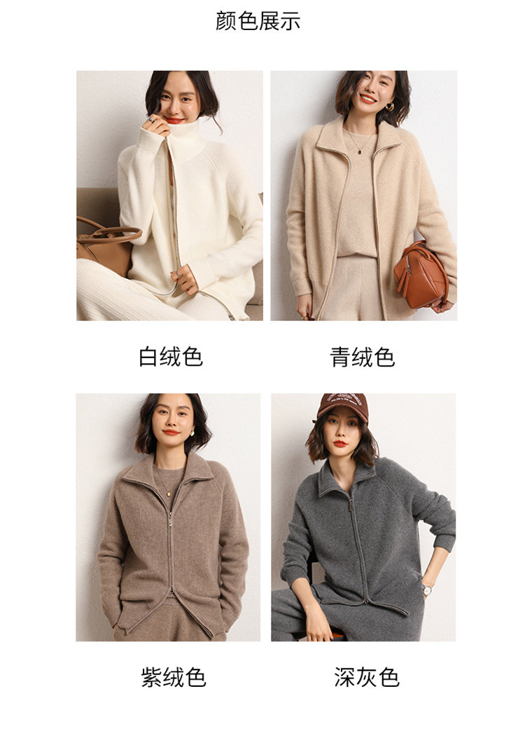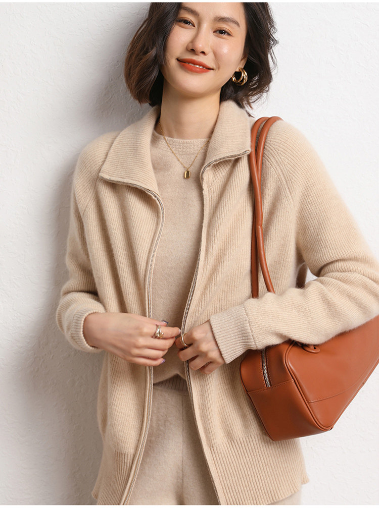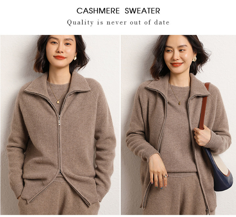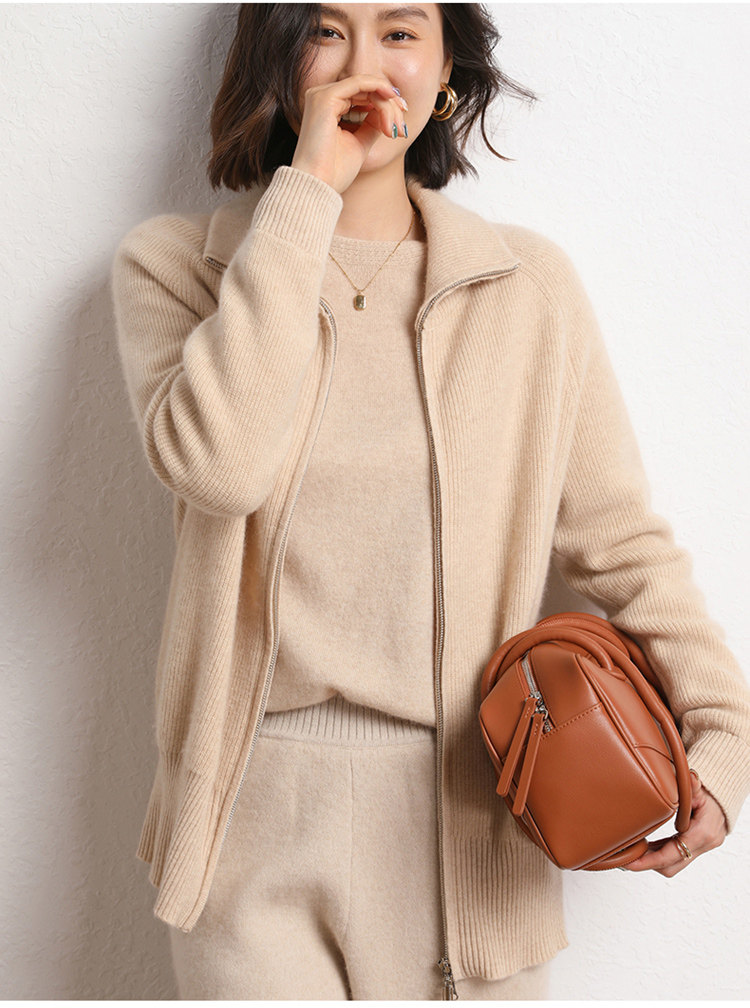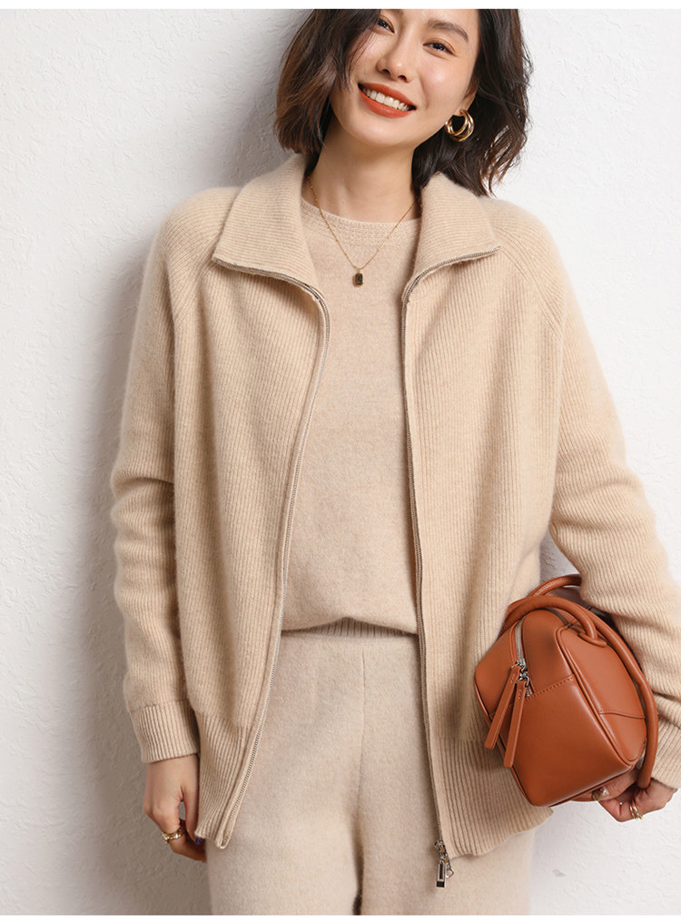 Демисезонный кашемировый кардиган с молнией, трикотажный свитер, шерстяная куртка, оверсайз, увеличенная толщина