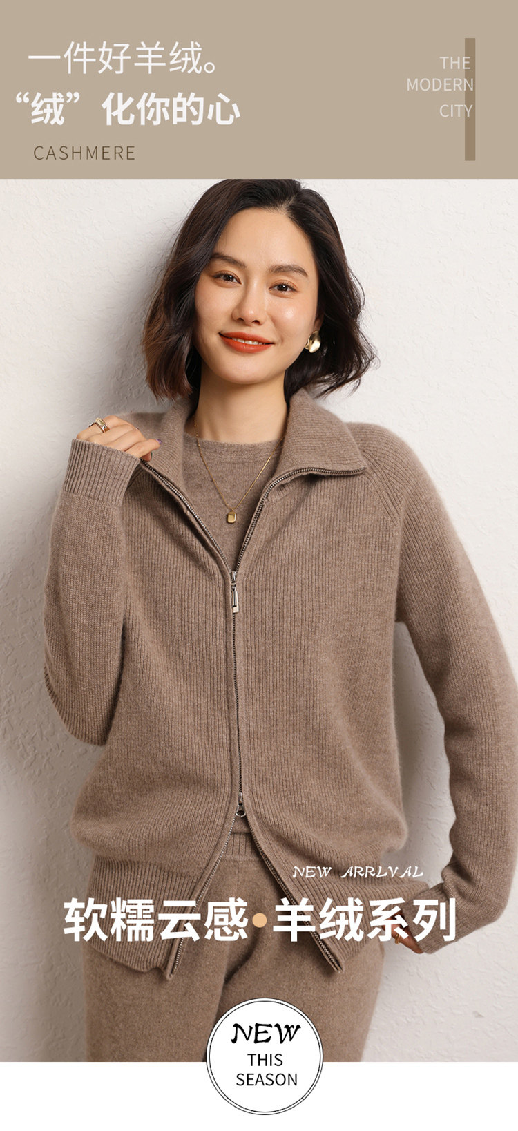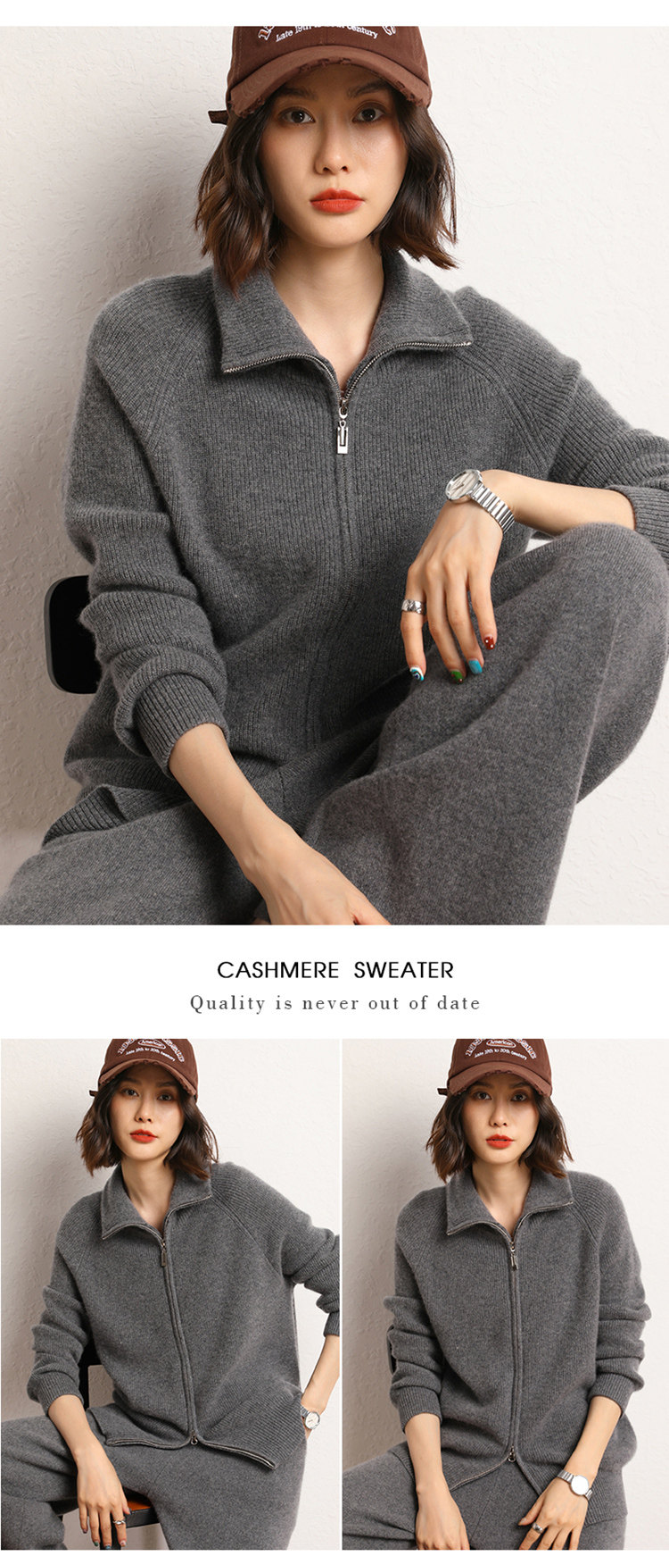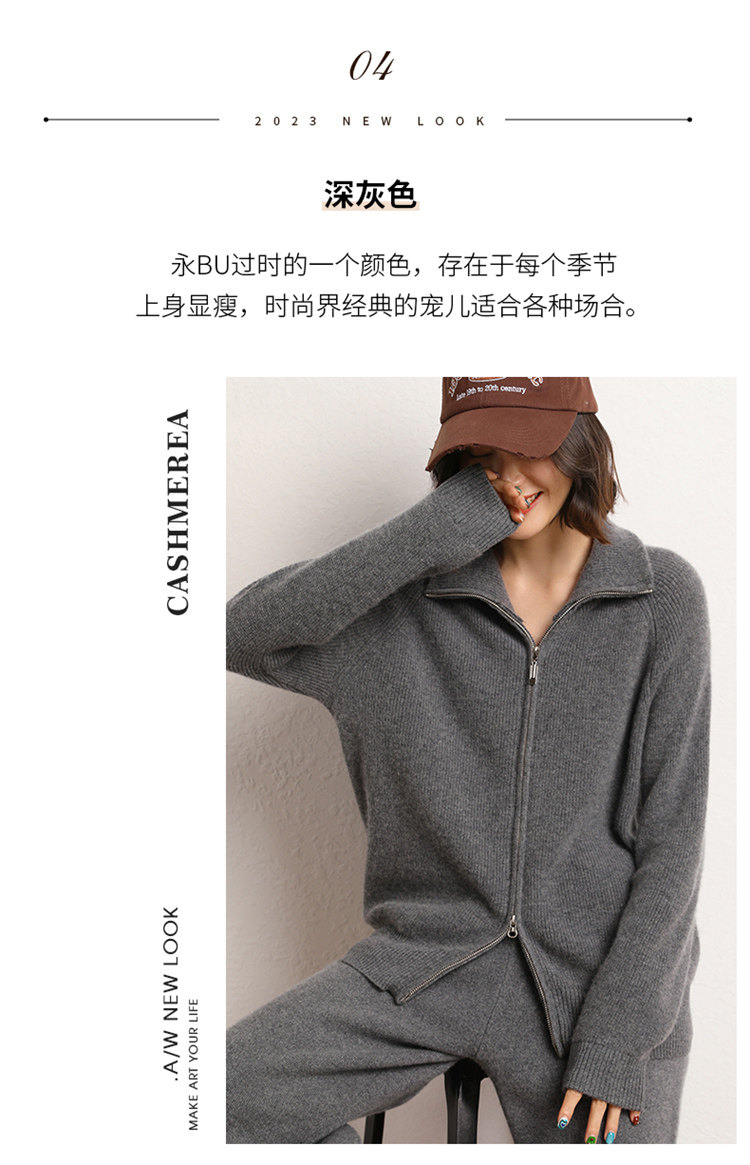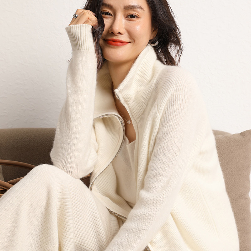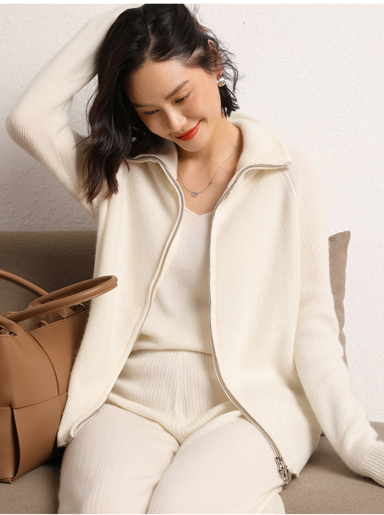 Демисезонный кашемировый кардиган с молнией, трикотажный свитер, шерстяная куртка, оверсайз, увеличенная толщина