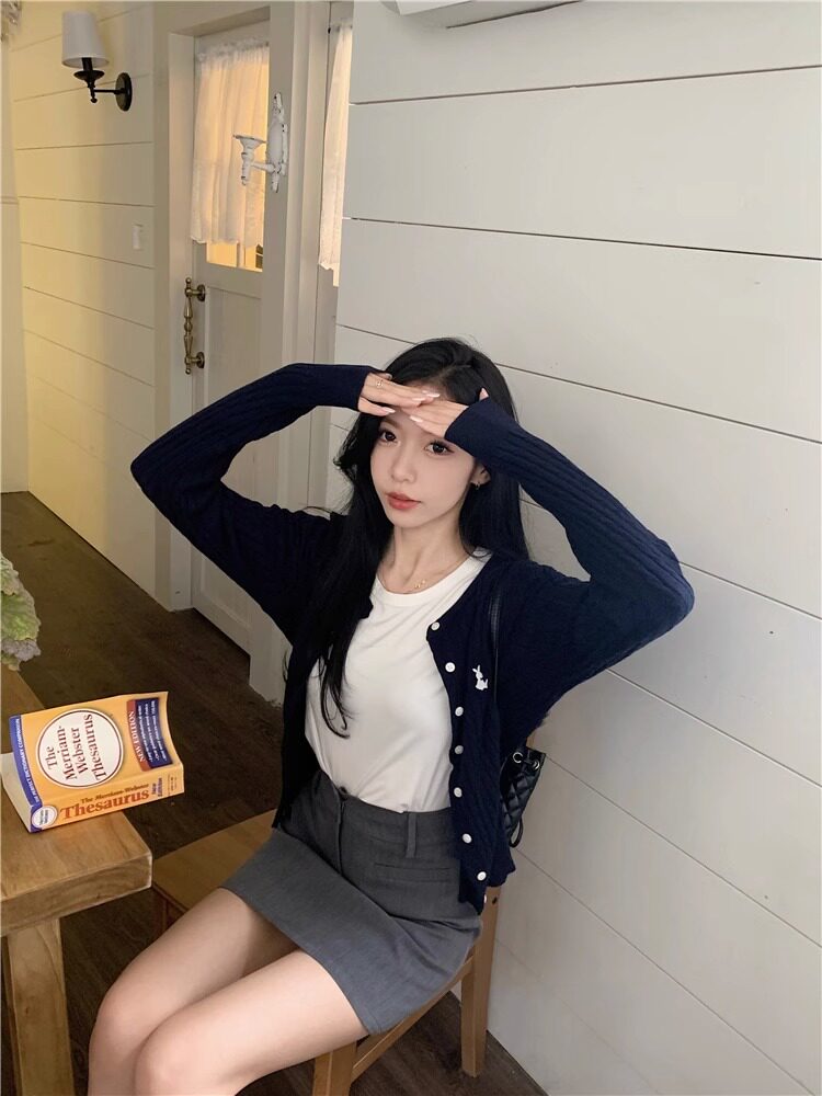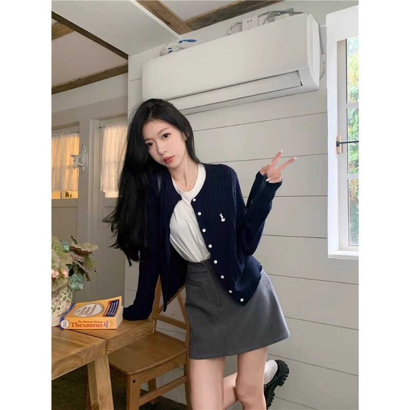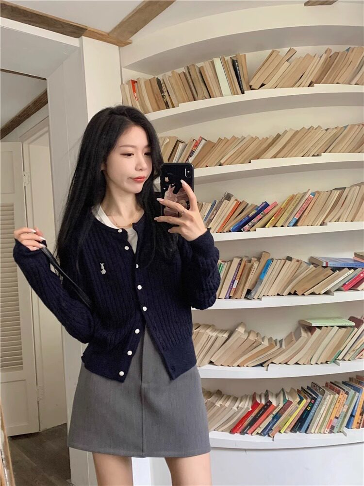 Трикотажный свитер, демисезонный кардиган, базовая приятная телу куртка с круглым воротником, подходит для подростков, в западном стиле