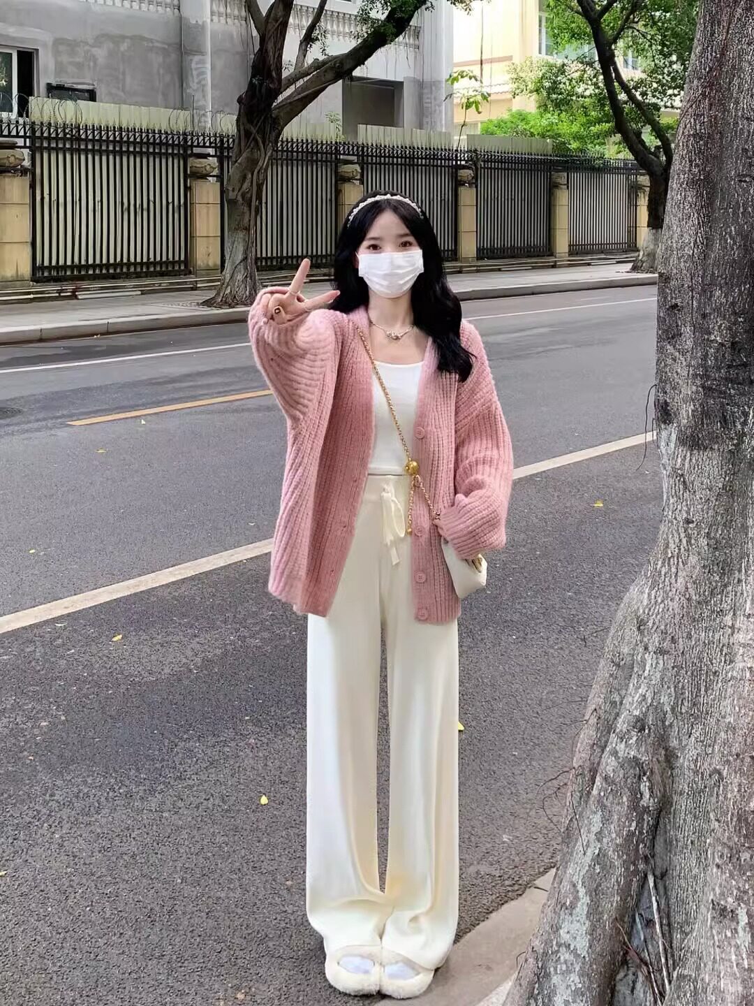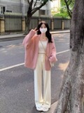 Осенний свитер, розовый небольшой дизайнерский кардиган, тренд сезона