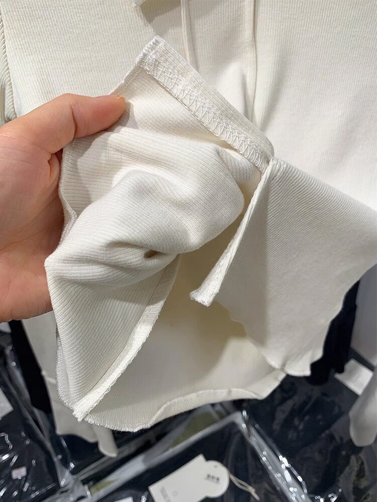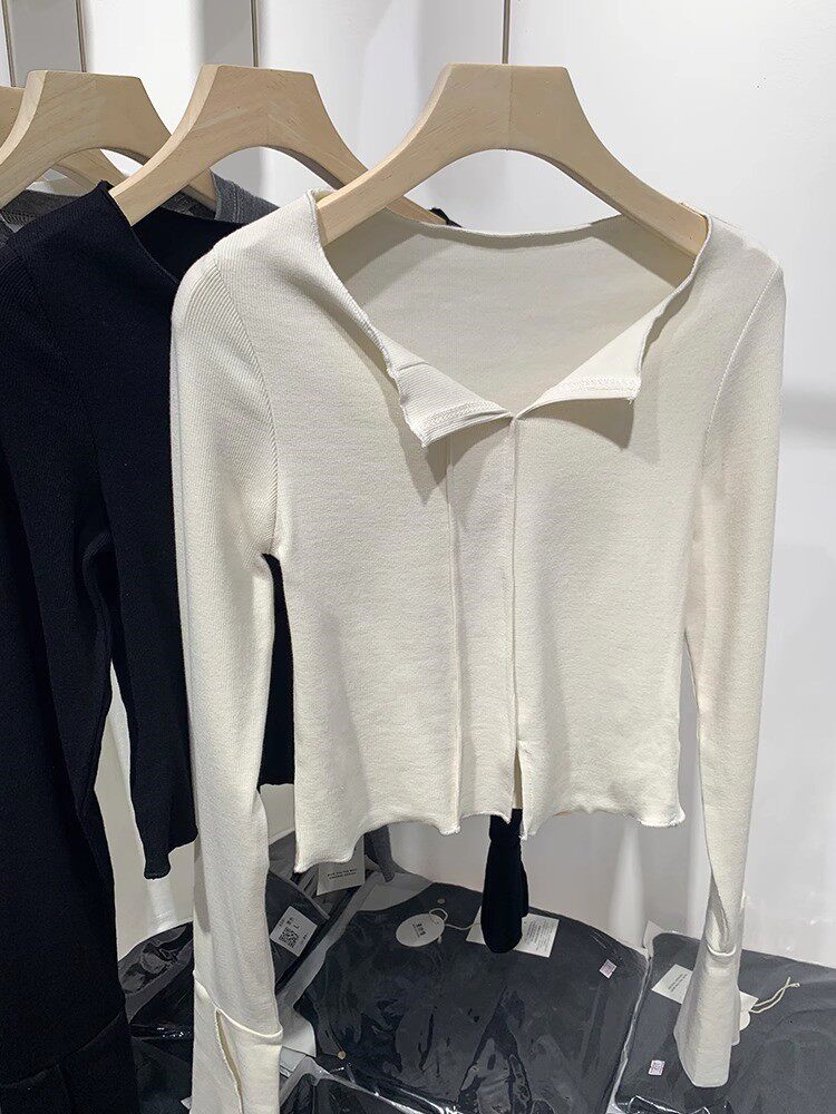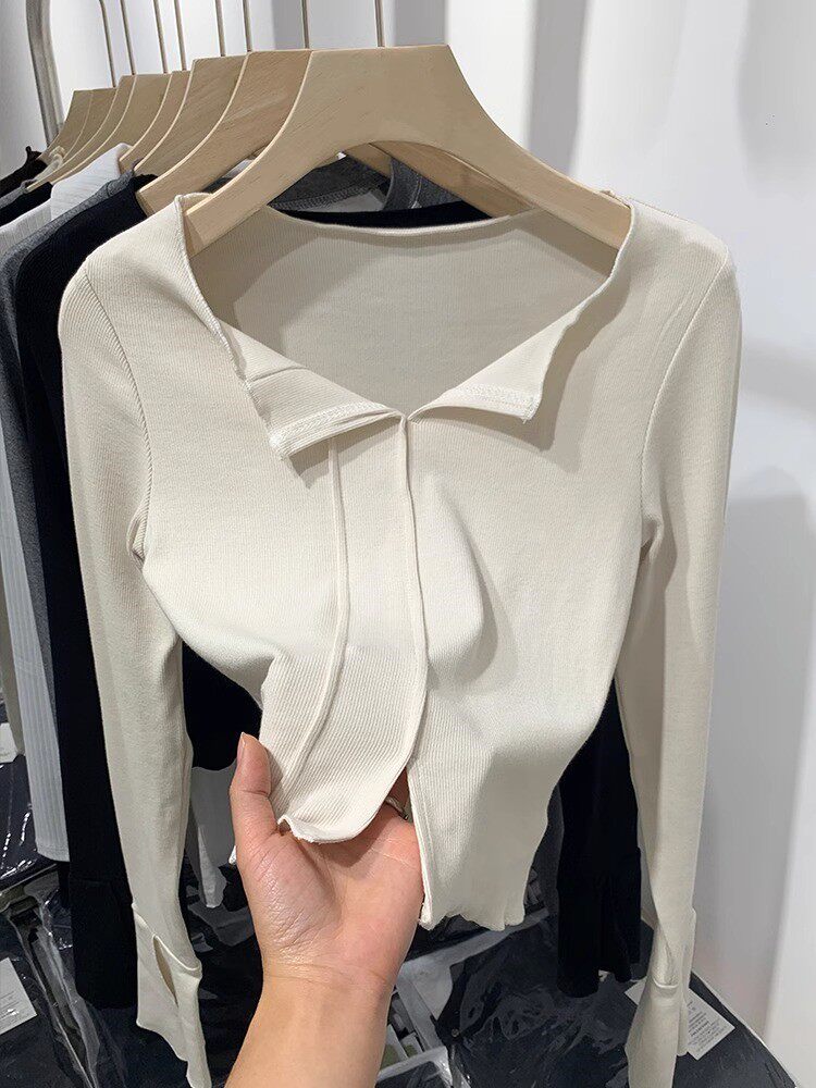 Трикотажный мегафон, осенняя дизайнерская футболка, базовый приятный телу лонгслив, V-образный вырез, тренд сезона, облегающий крой