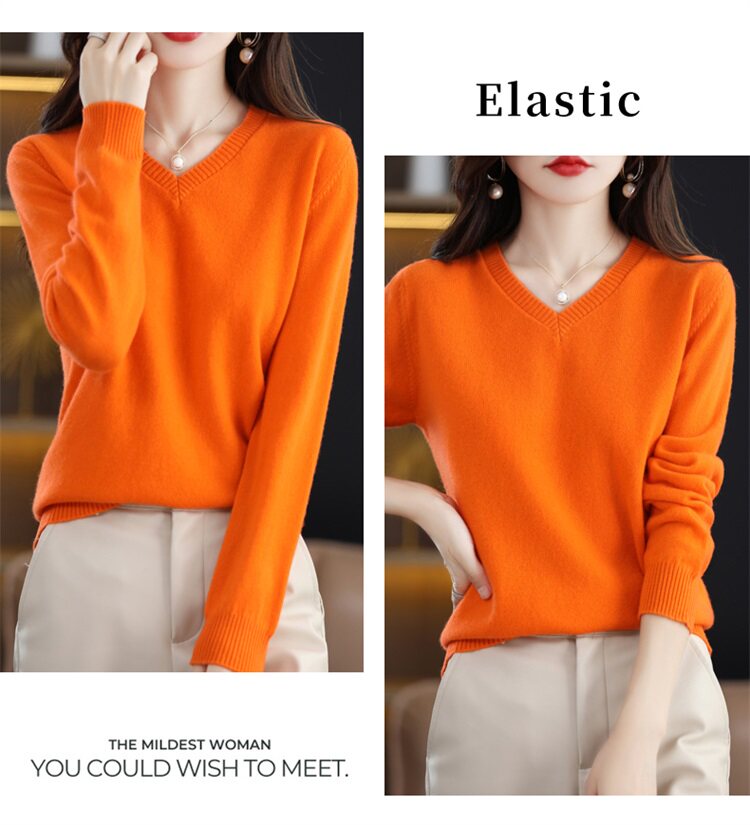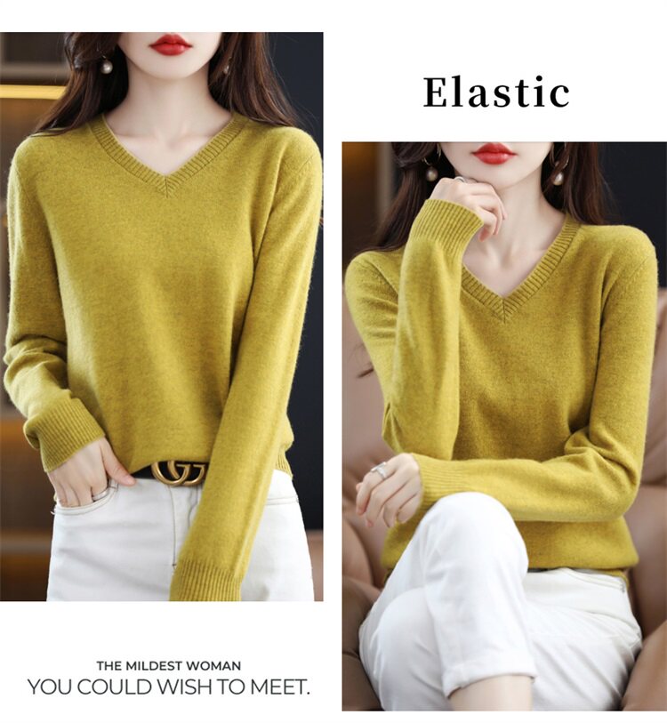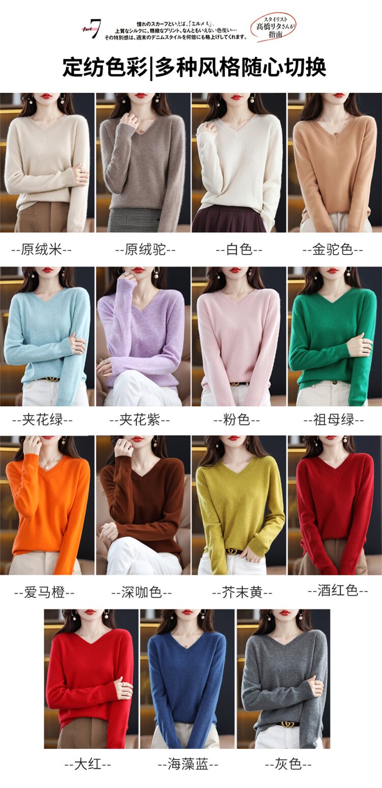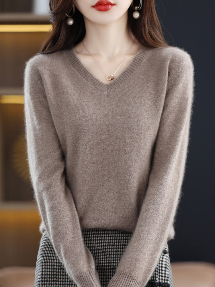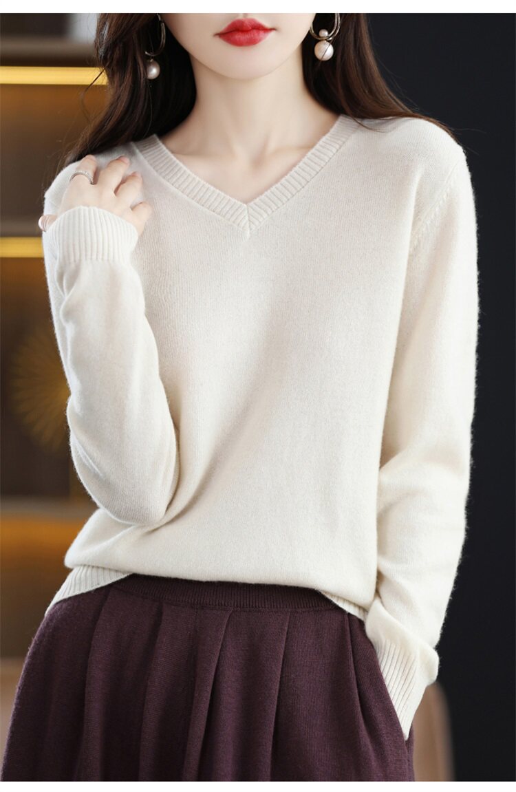 Шерстяной свитер, трикотажный осенний лонгслив, V-образный вырез, оверсайз, свободный крой