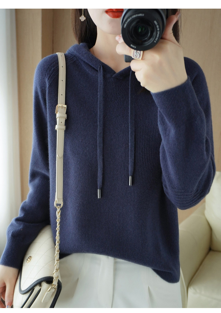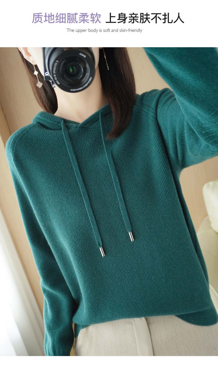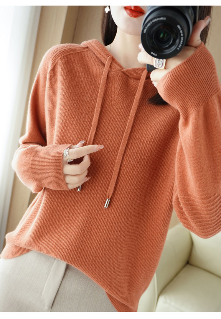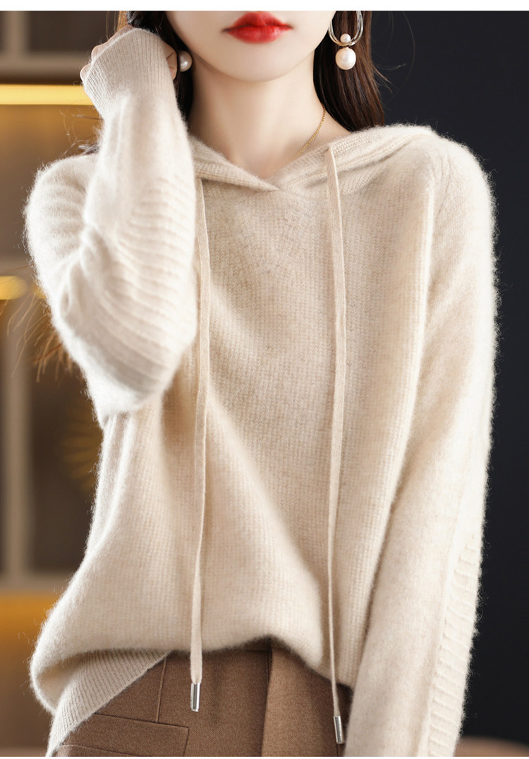 Кашемировая осенняя толстовка с капюшоном, шерстяной свитер, вязаная шапка, балахон, оверсайз