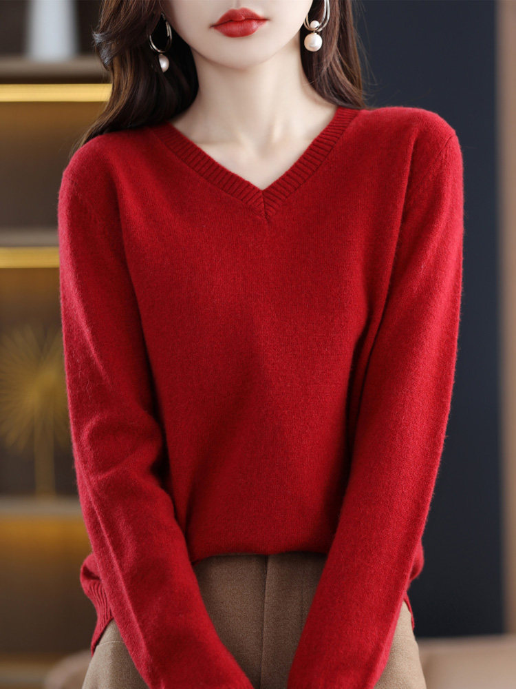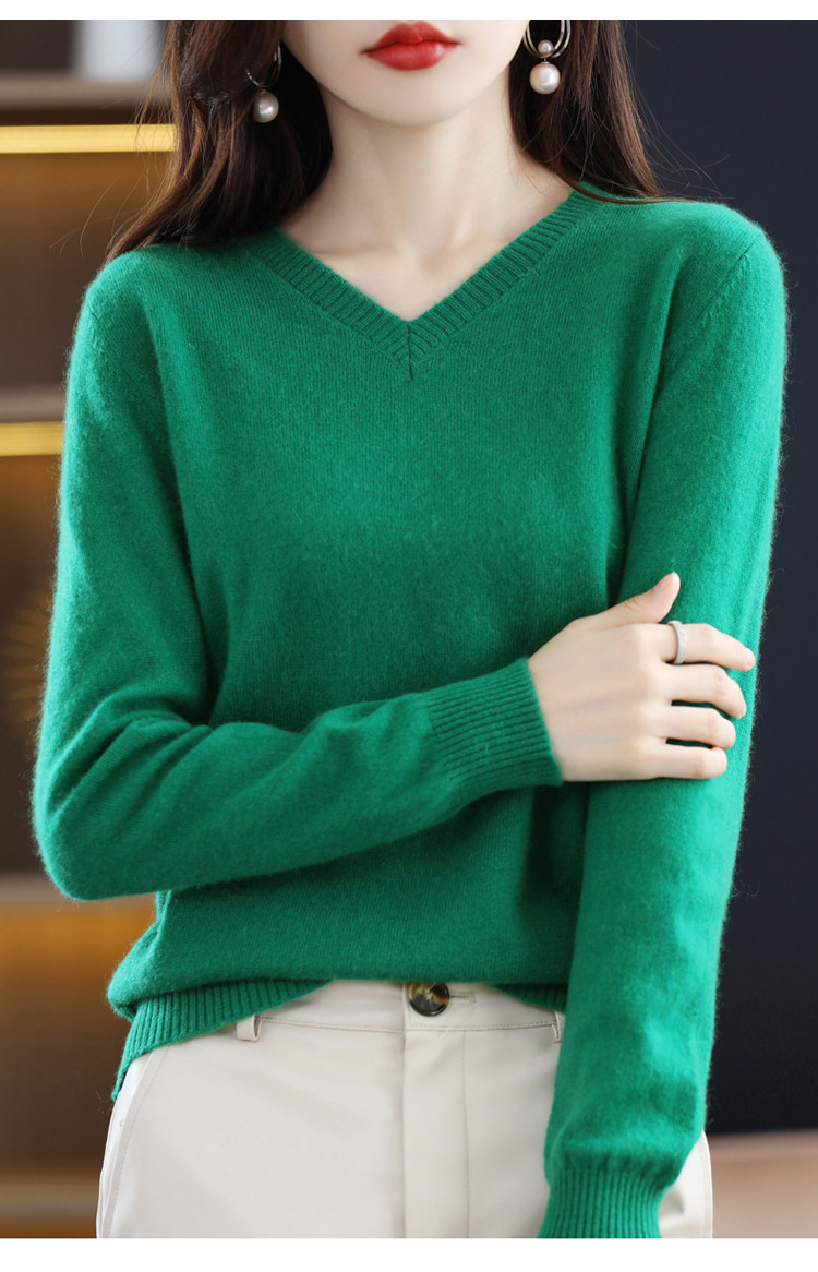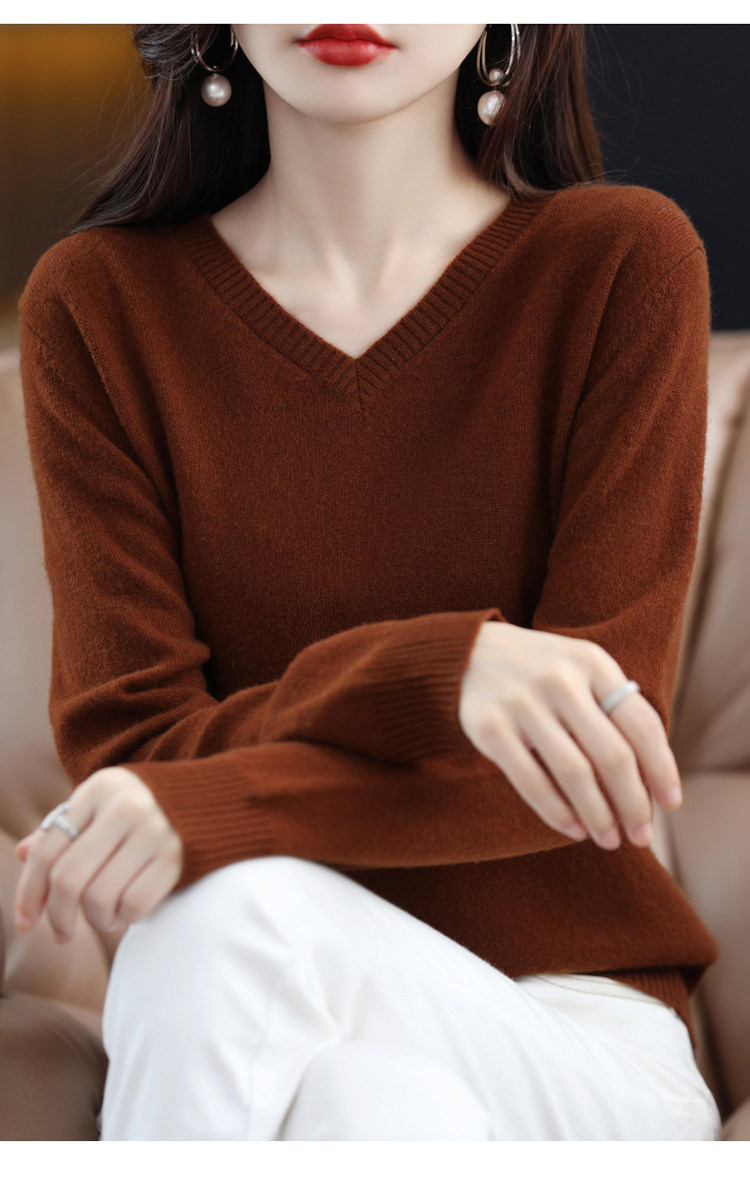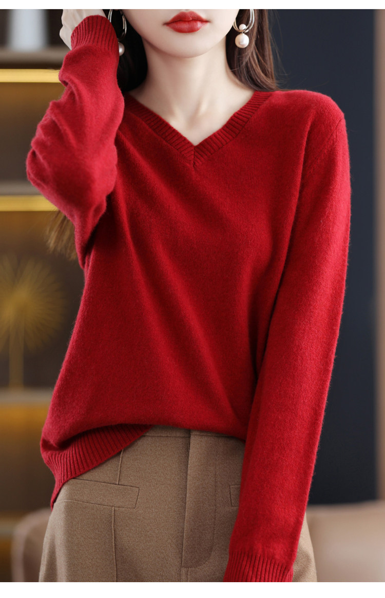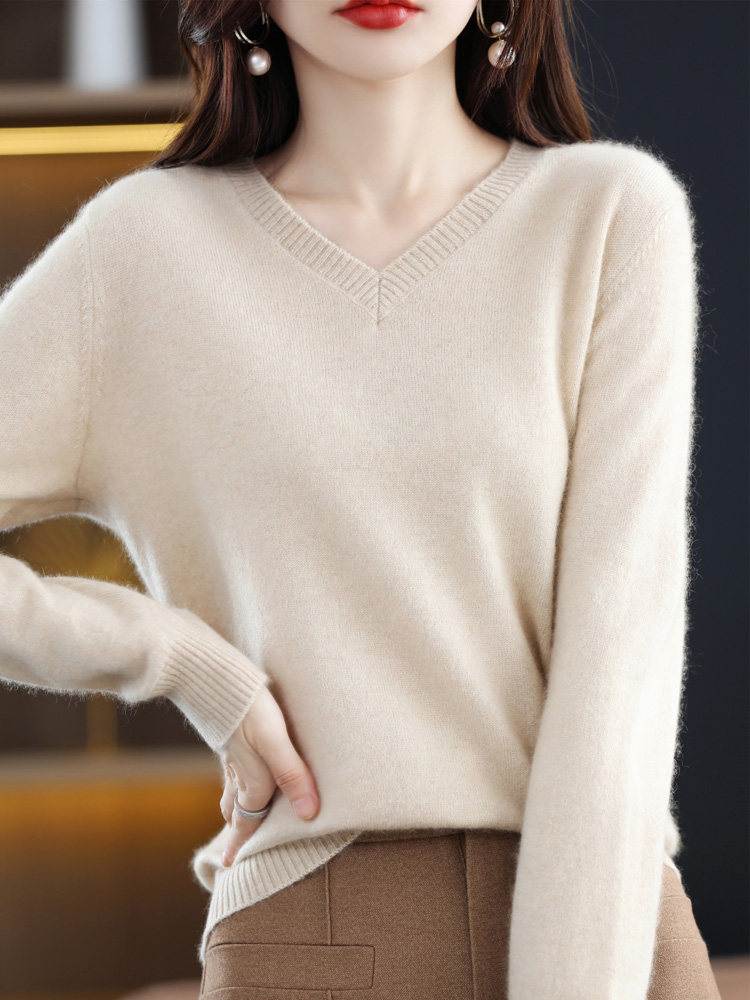 Шерстяной демисезонный свитер, трикотажный лонгслив, V-образный вырез, оверсайз