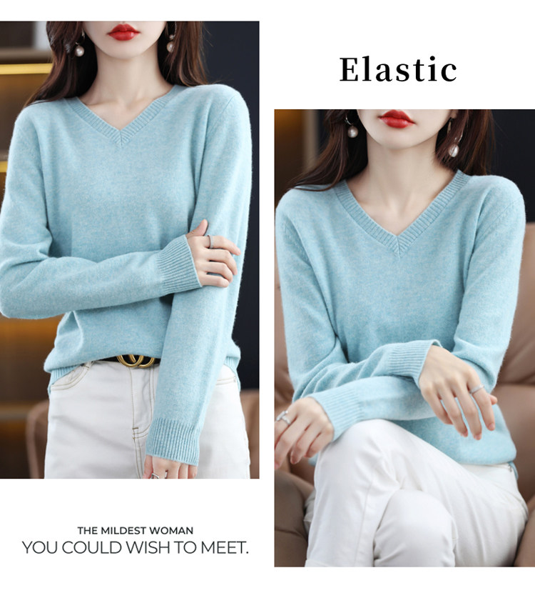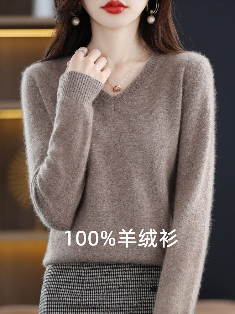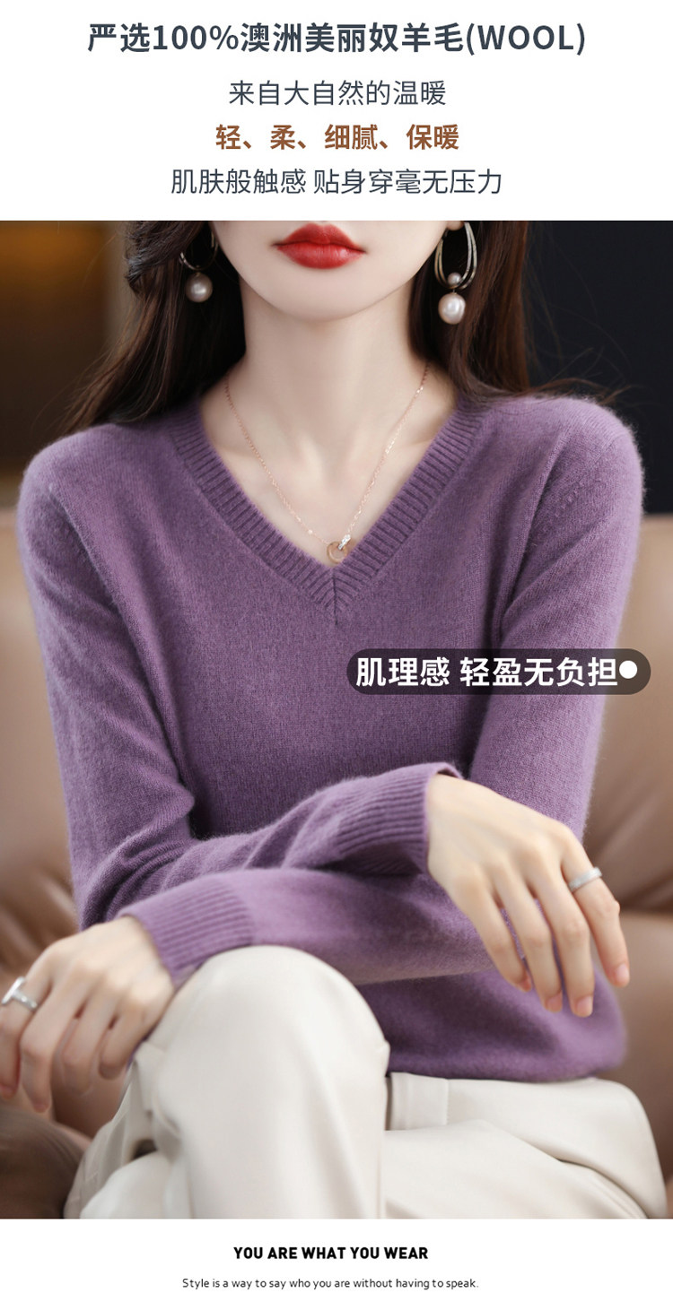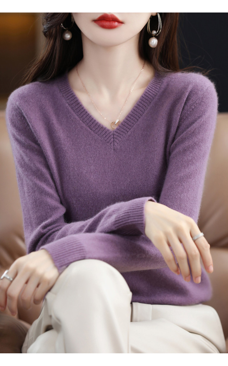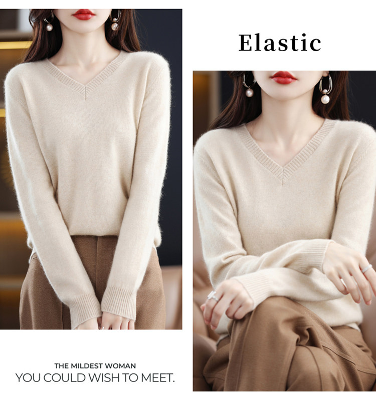 Шерстяной демисезонный свитер, трикотажный лонгслив, V-образный вырез, оверсайз