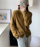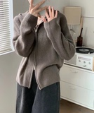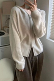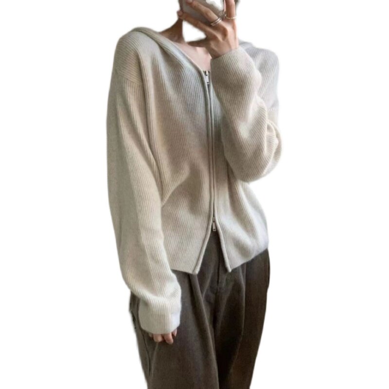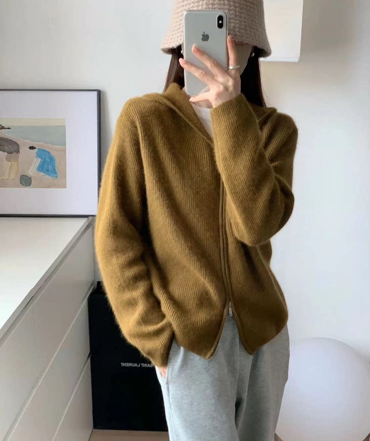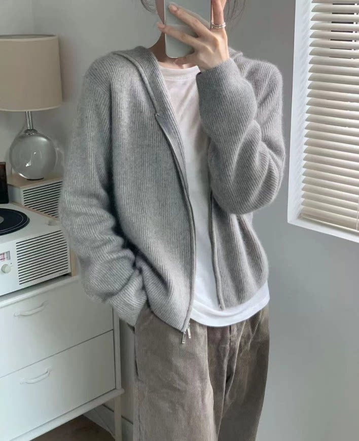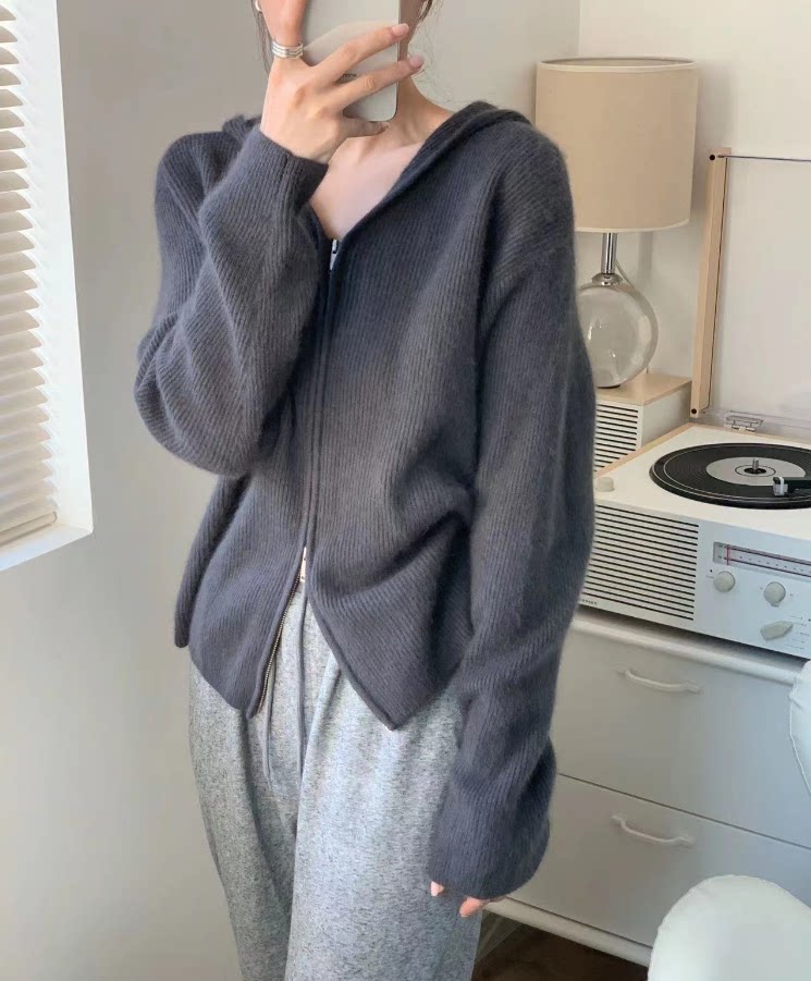 Шерстяной кардиган с капюшоном с молнией, свитер, куртка, придает объем, в корейском стиле