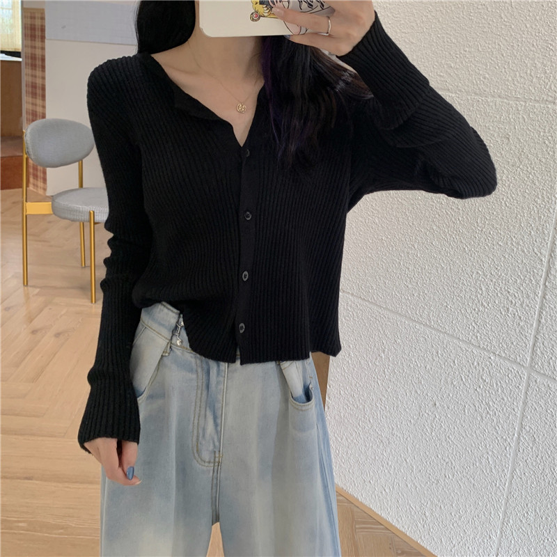 Осенний тонкий черный кардиган, куртка, лонгслив, короткий свитер