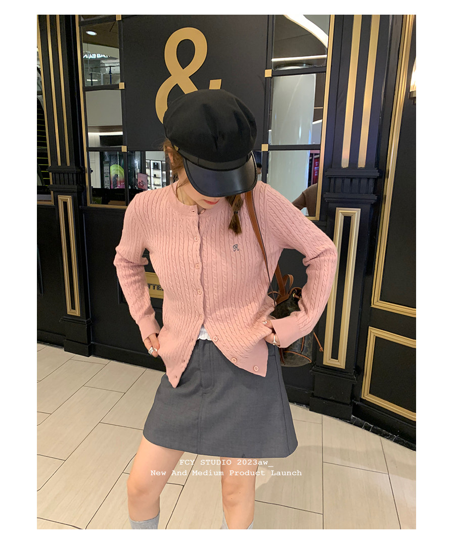 Трикотажный кардиган, ретро розовый свитер, куртка, с вышивкой, 2023, в корейском стиле