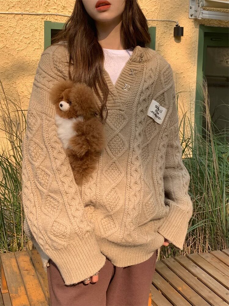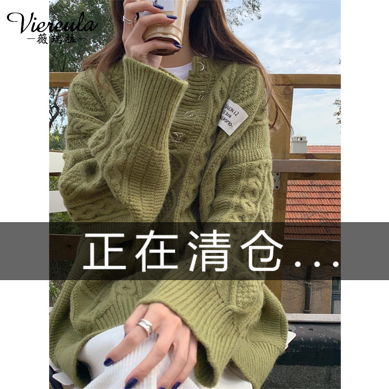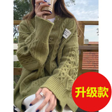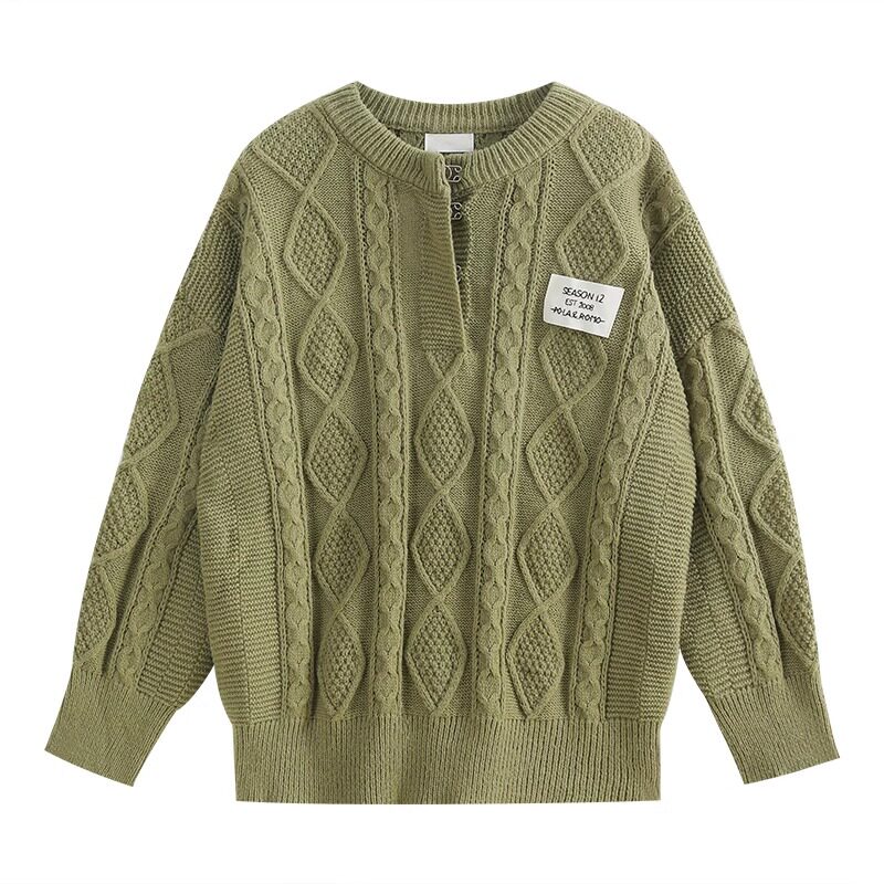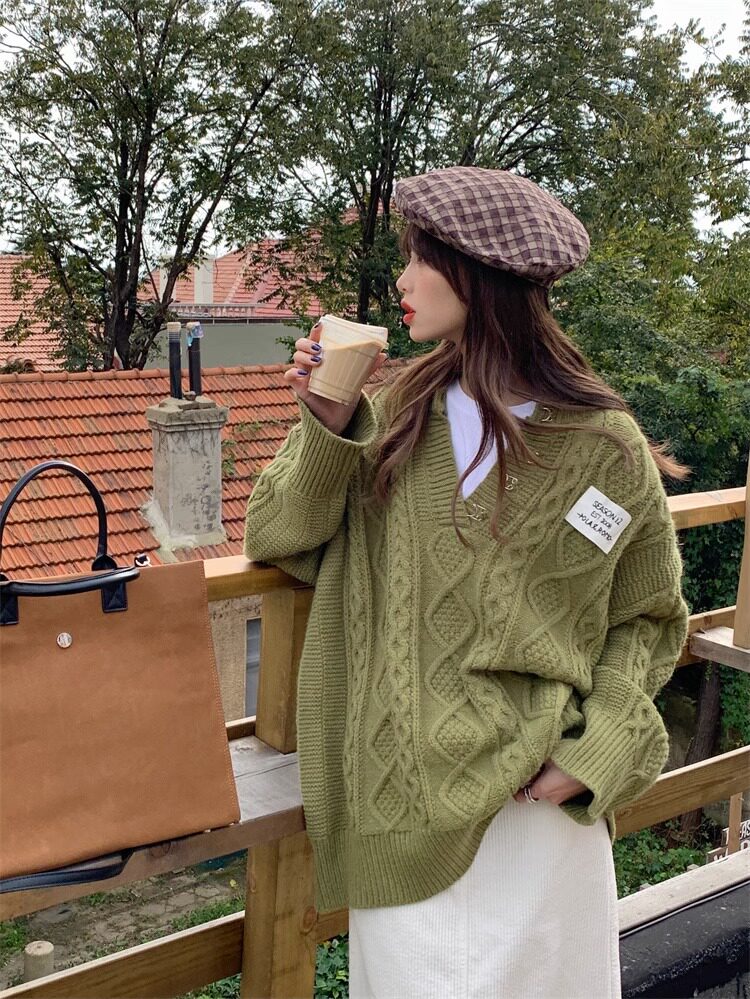 Демисезонный зеленый цветной длинный осенний ретро трикотажный свитер, V-образный вырез, свободный крой