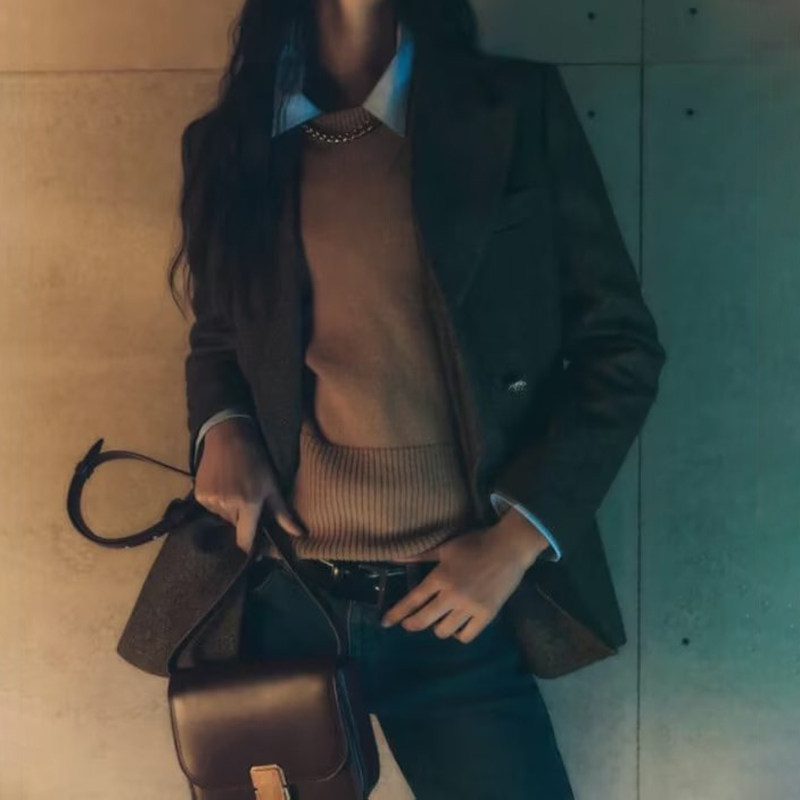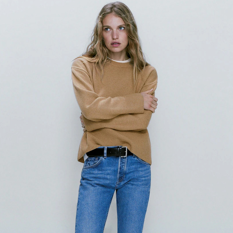 Демисезонный модный шерстяной трикотажный свитер с круглым воротником, коллекция 2023, облегающий крой