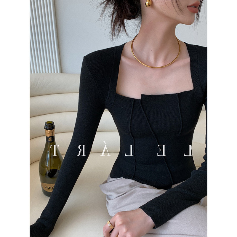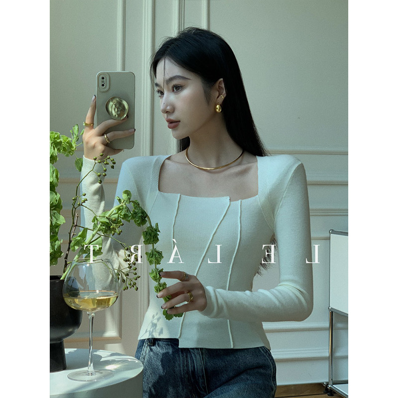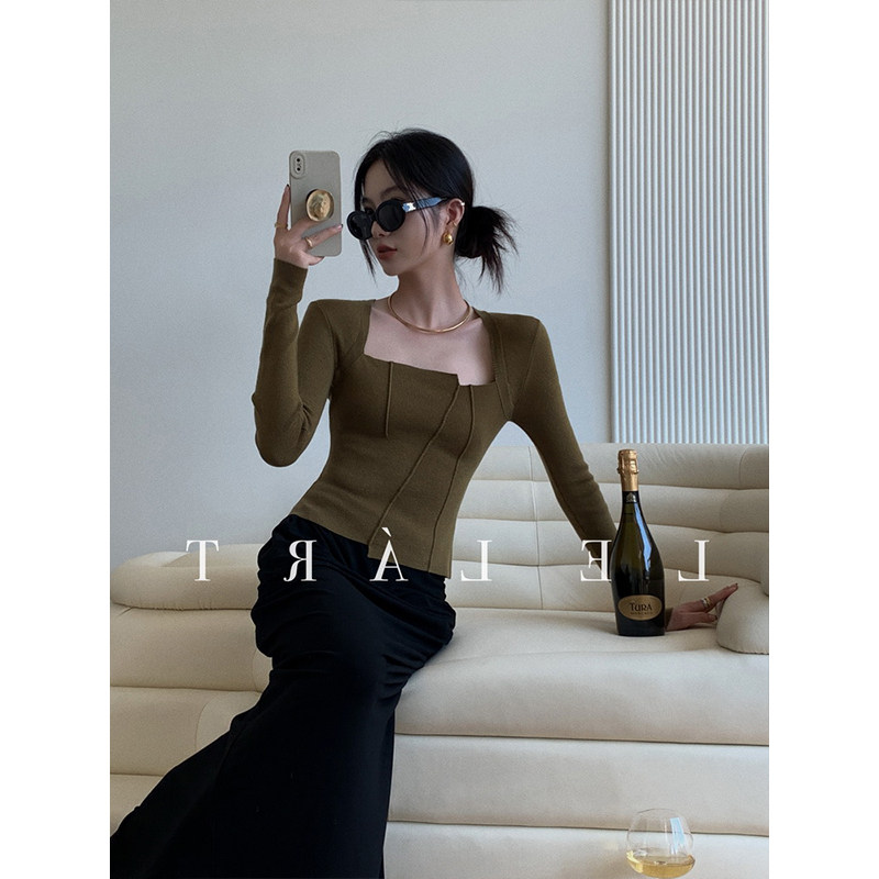 Трикотажный осенний демисезонный костюм, свитер, премиум класс, квадратный вырез