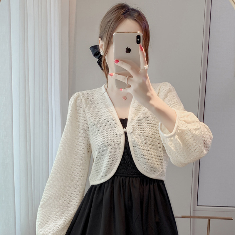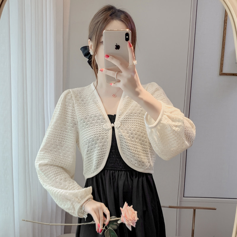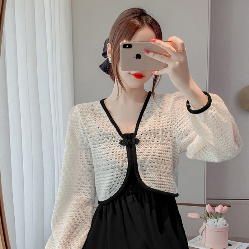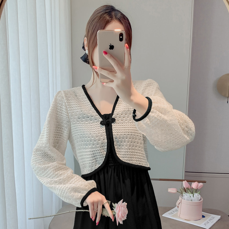 Весенняя тонкая трикотажная одежда для защиты от солнца, платье-комбинация, короткий кардиган, накидка, куртка, китайский стиль