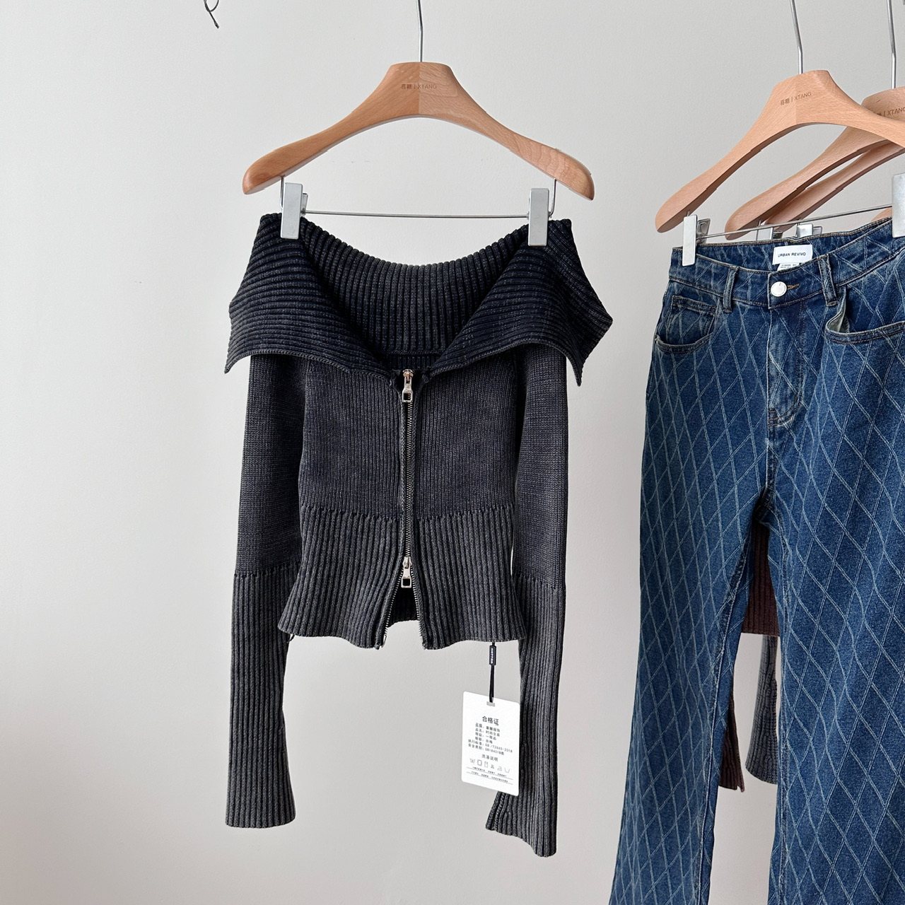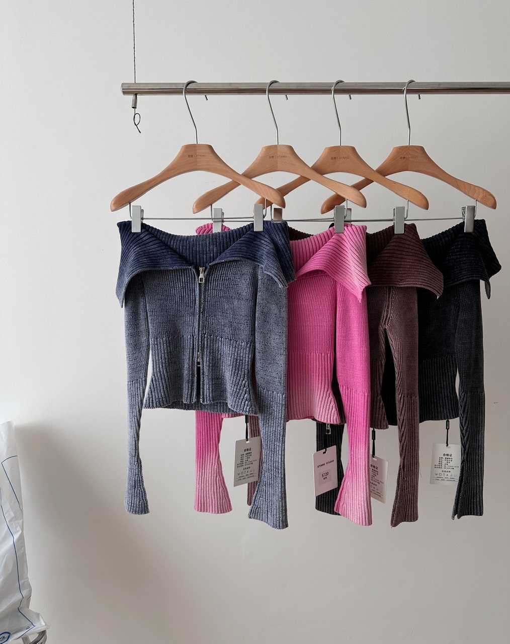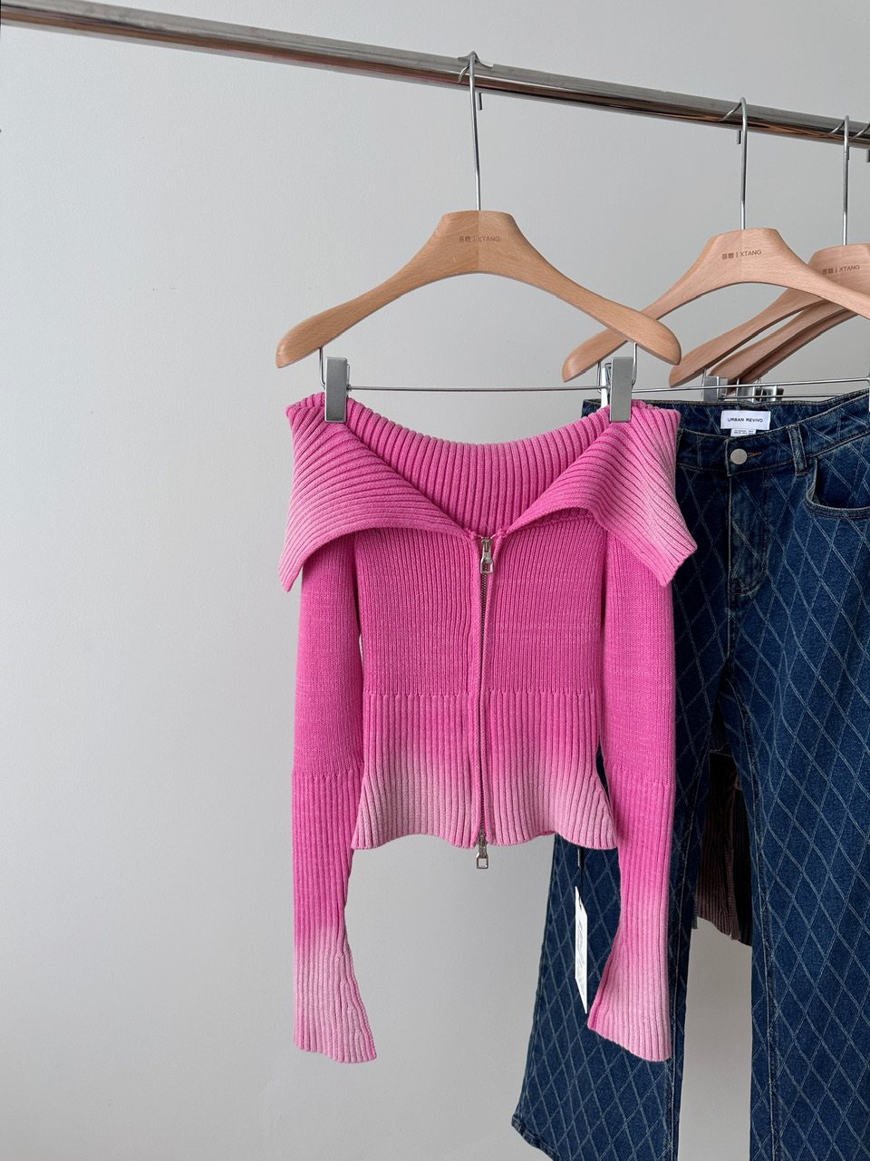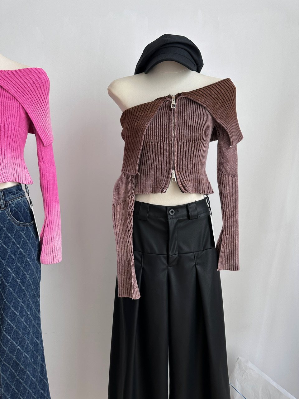 Ретро трикотажный осенний дизайнерский свитер, сексуальный кардиган с молнией, открытые плечи, облегающий крой, тренд сезона, яркий броский стиль