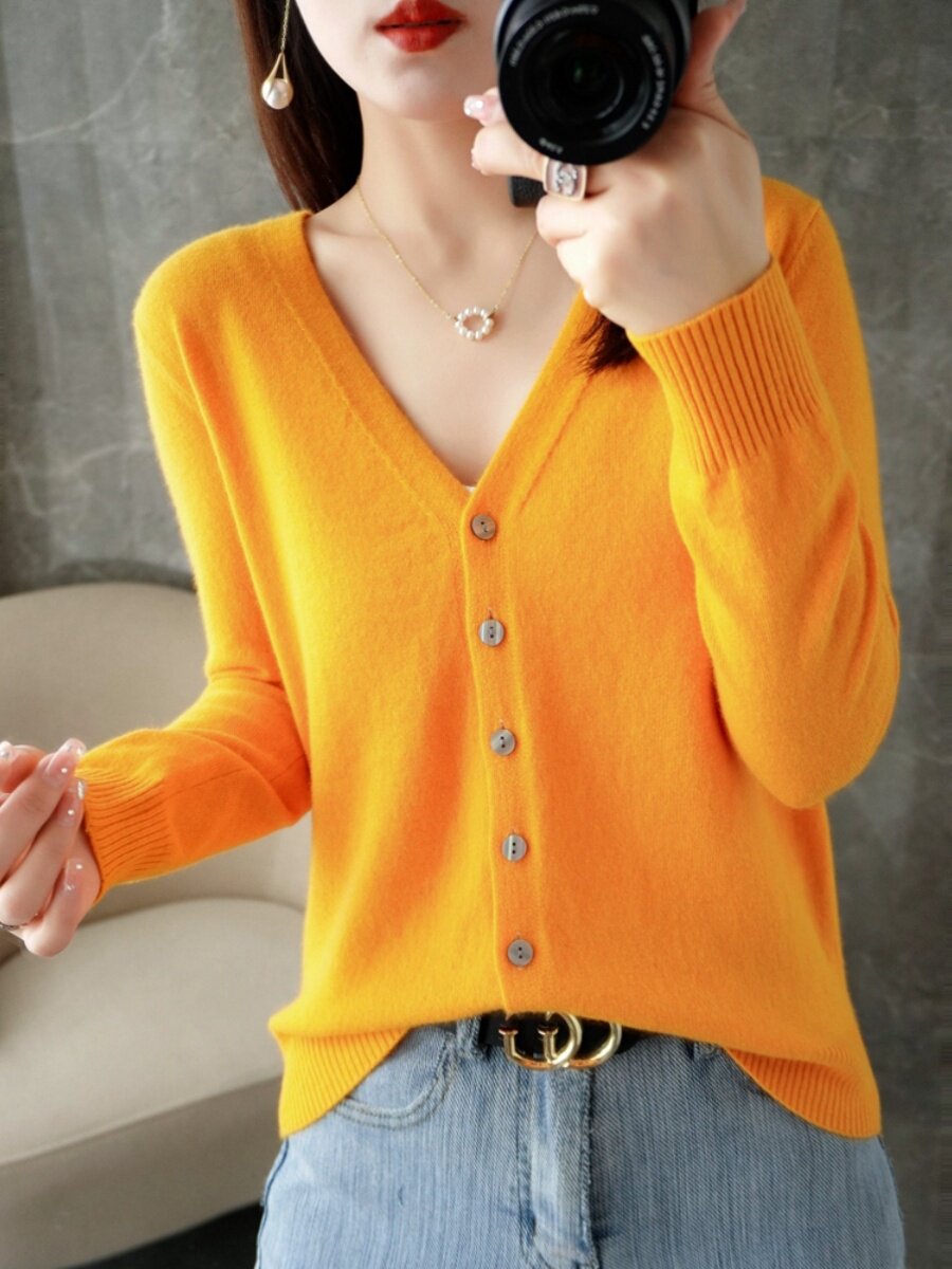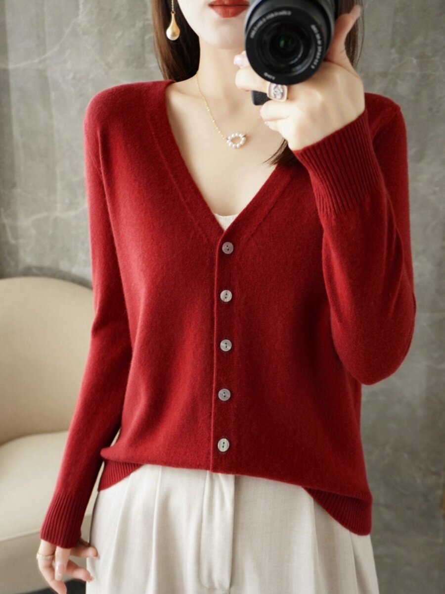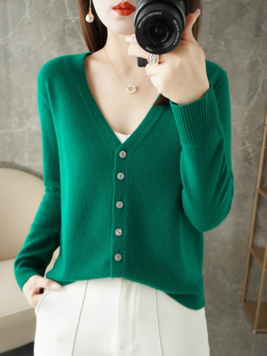 Кашемировый шерстяной базовый приятный телу кардиган, трикотажный свитер, рубашка, V-образный вырез, большой размер
