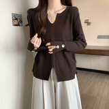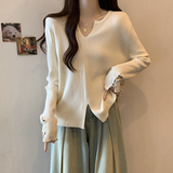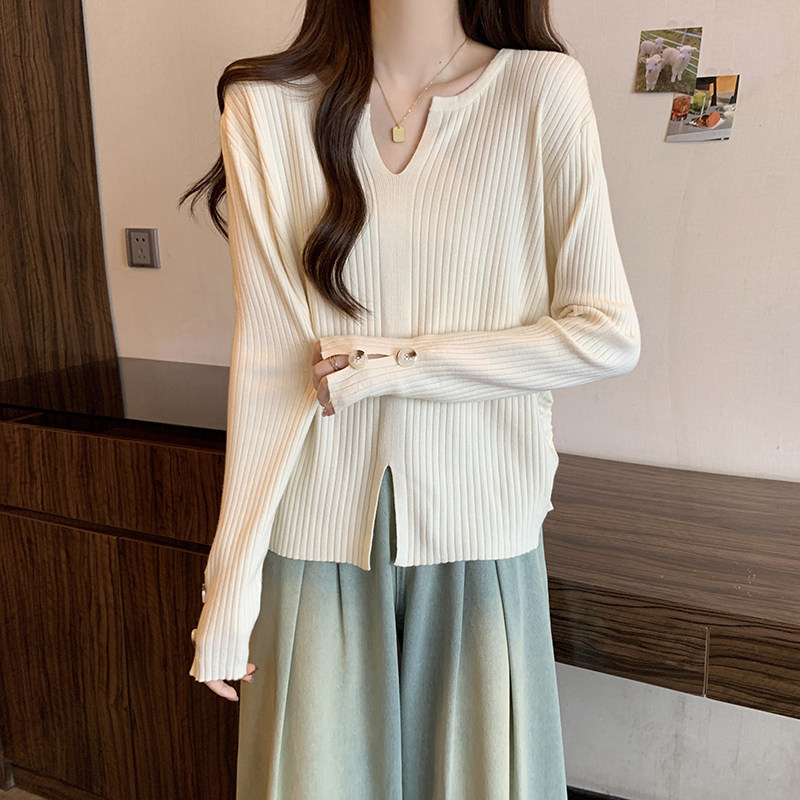 Трикотажный лонгслив, базовый приятный телу дизайнерский свитер, большой размер, подходит для полных девушек, V-образный вырез, тренд сезона