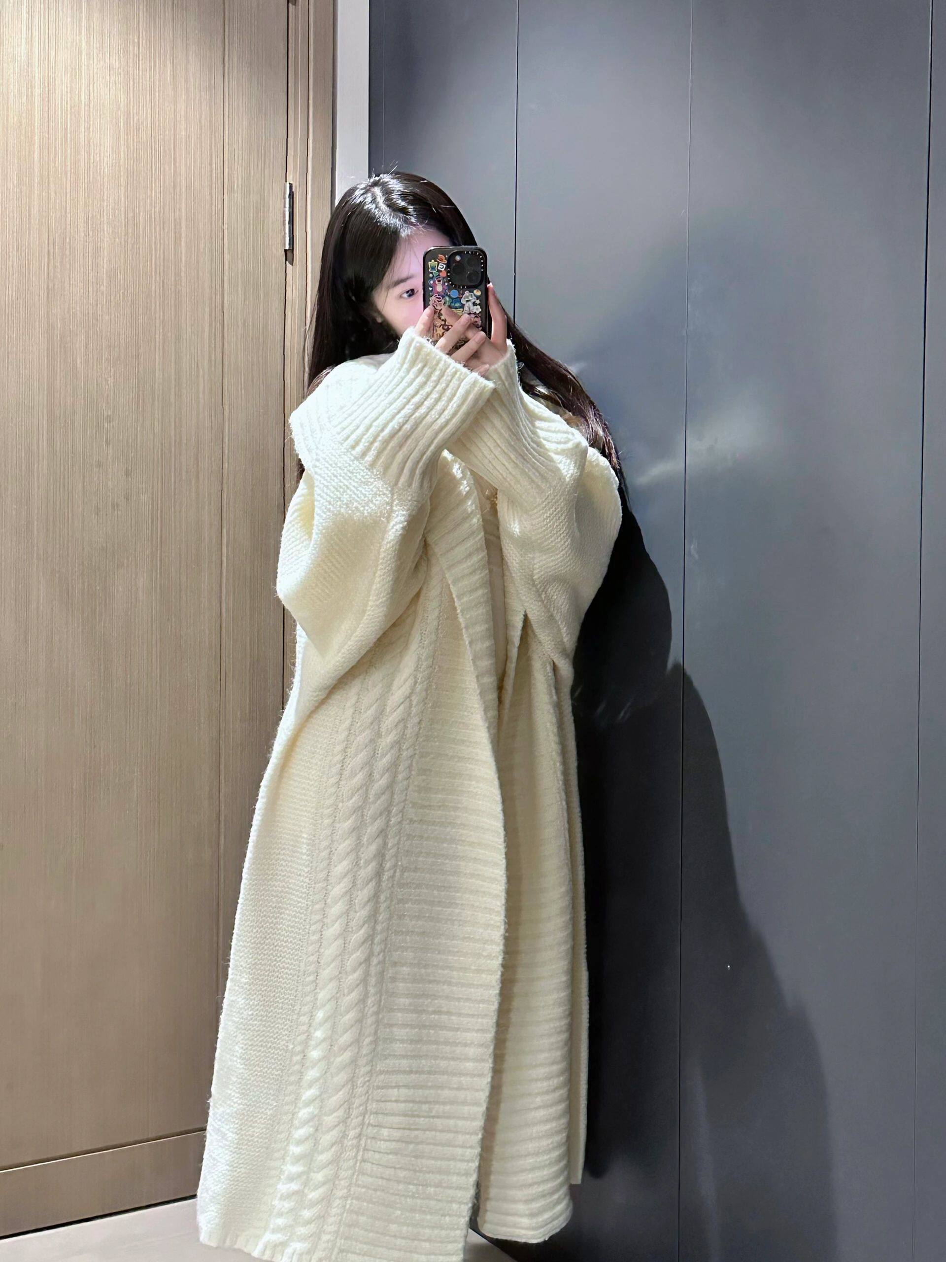 Ретро длинный трикотажный свитер, куртка, кардиган, изысканный стиль, французский стиль, свободный крой
