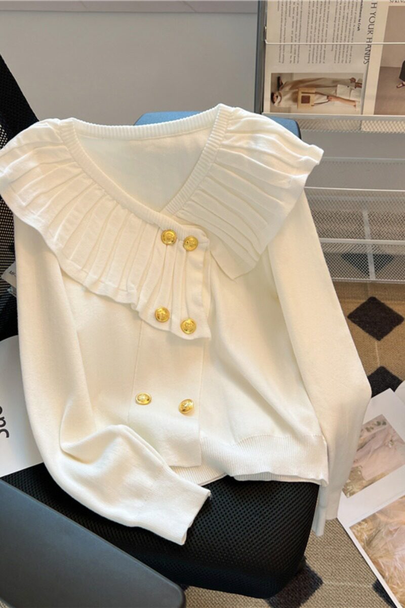 Дизайнерский асимметричный трикотажный весенний свитер, базовая кукла, тренд сезона, кукольный воротник