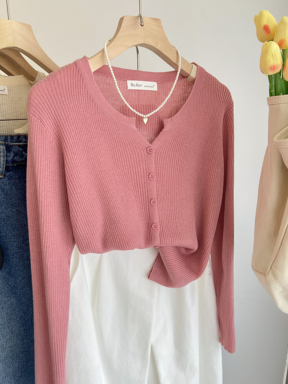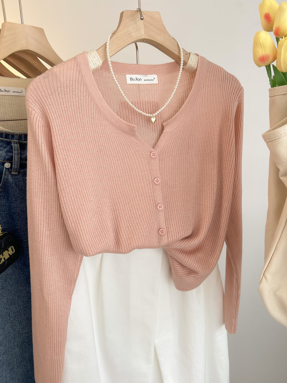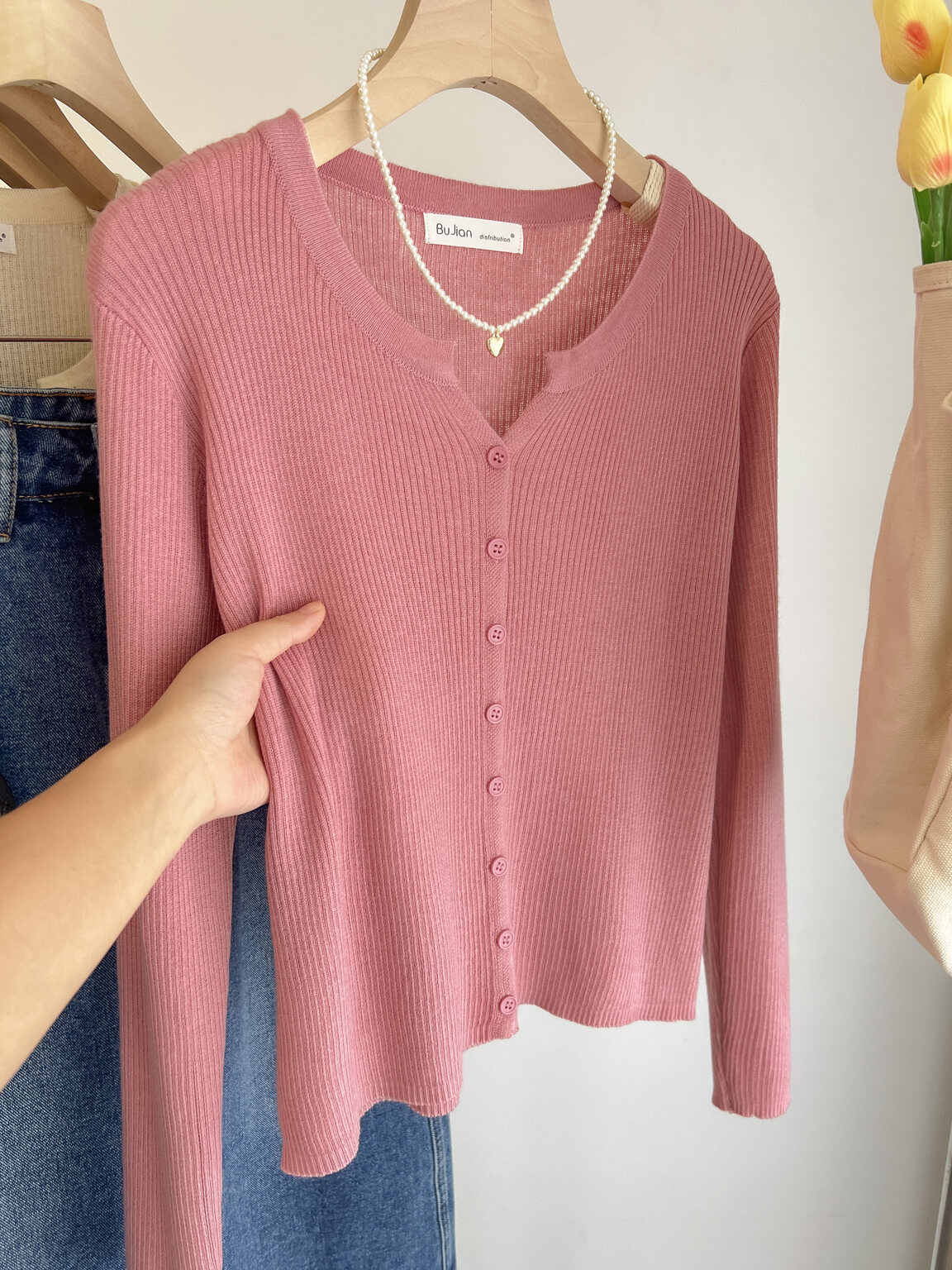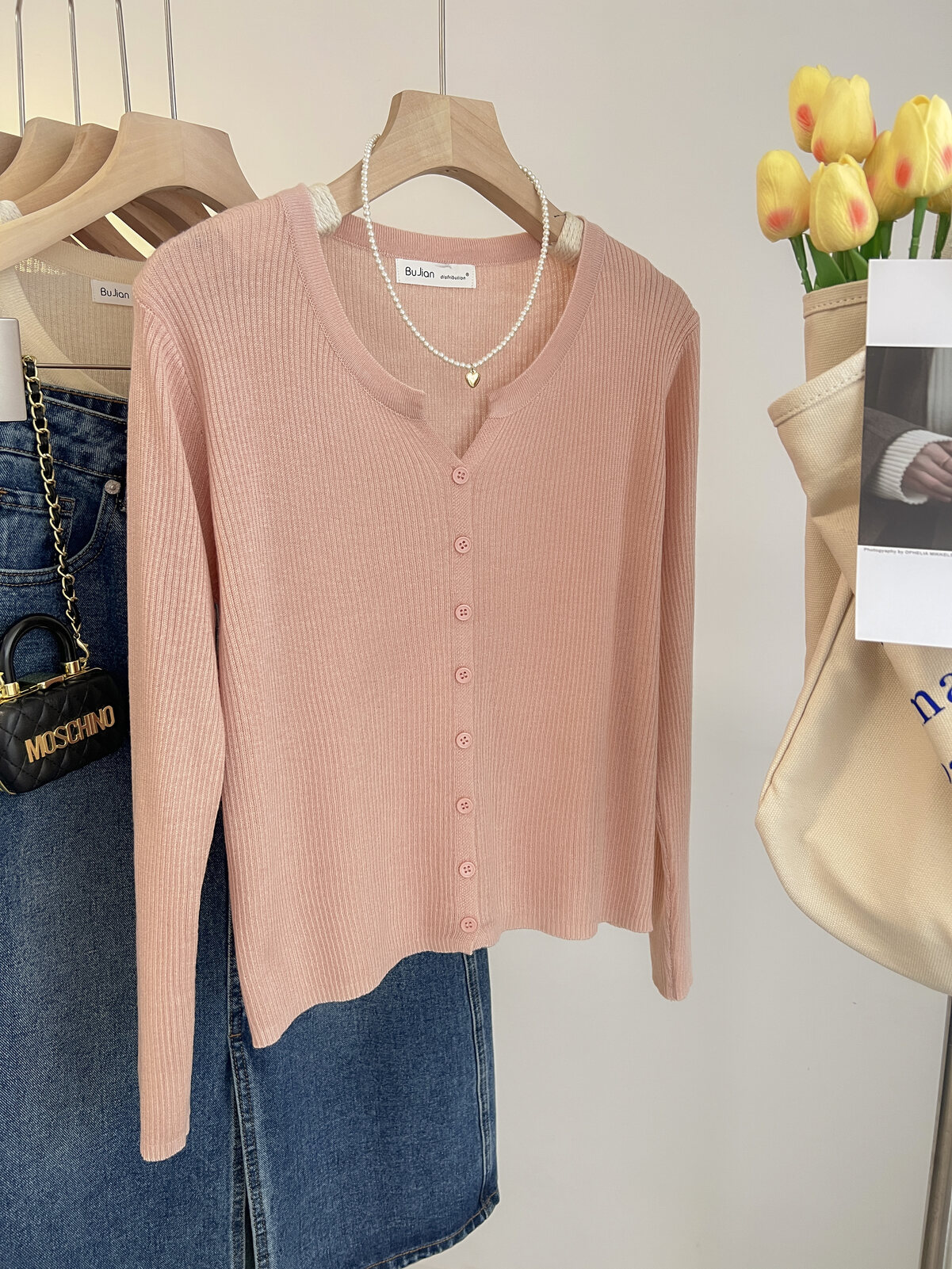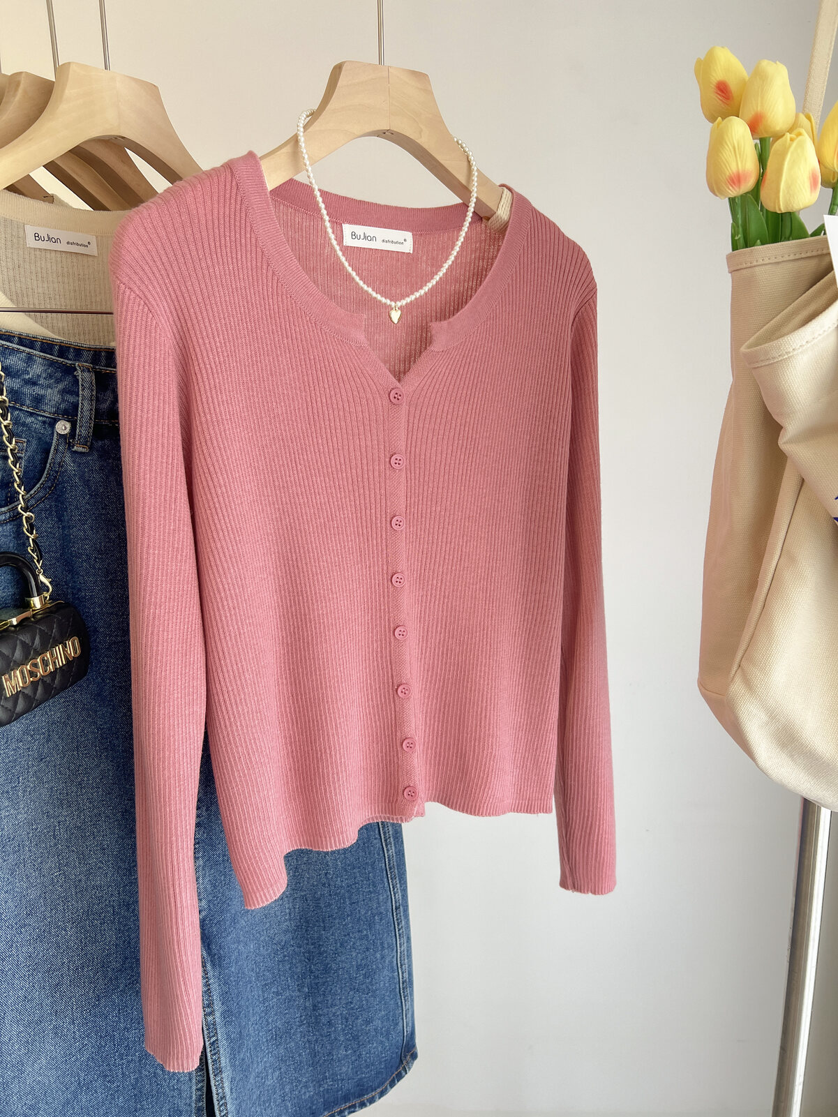 Розовый осенний кардиган, тонкий свитер, куртка, в стиле Шанель, V-образный вырез, оверсайз