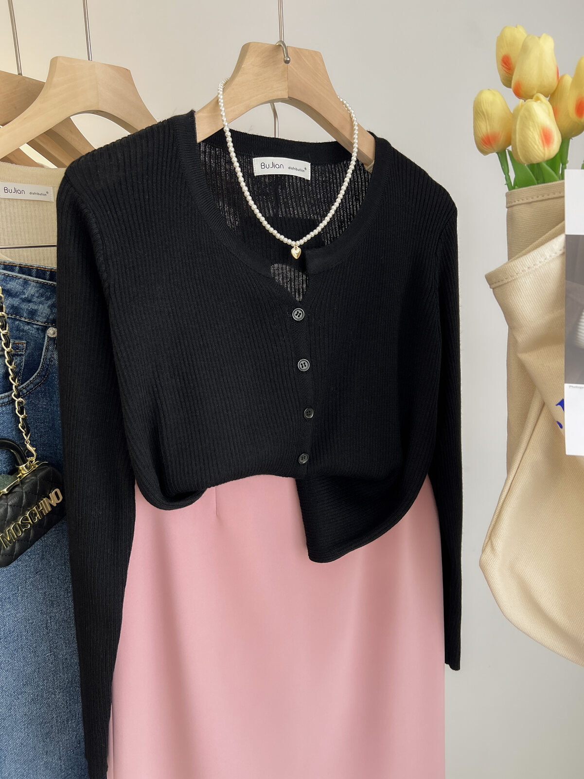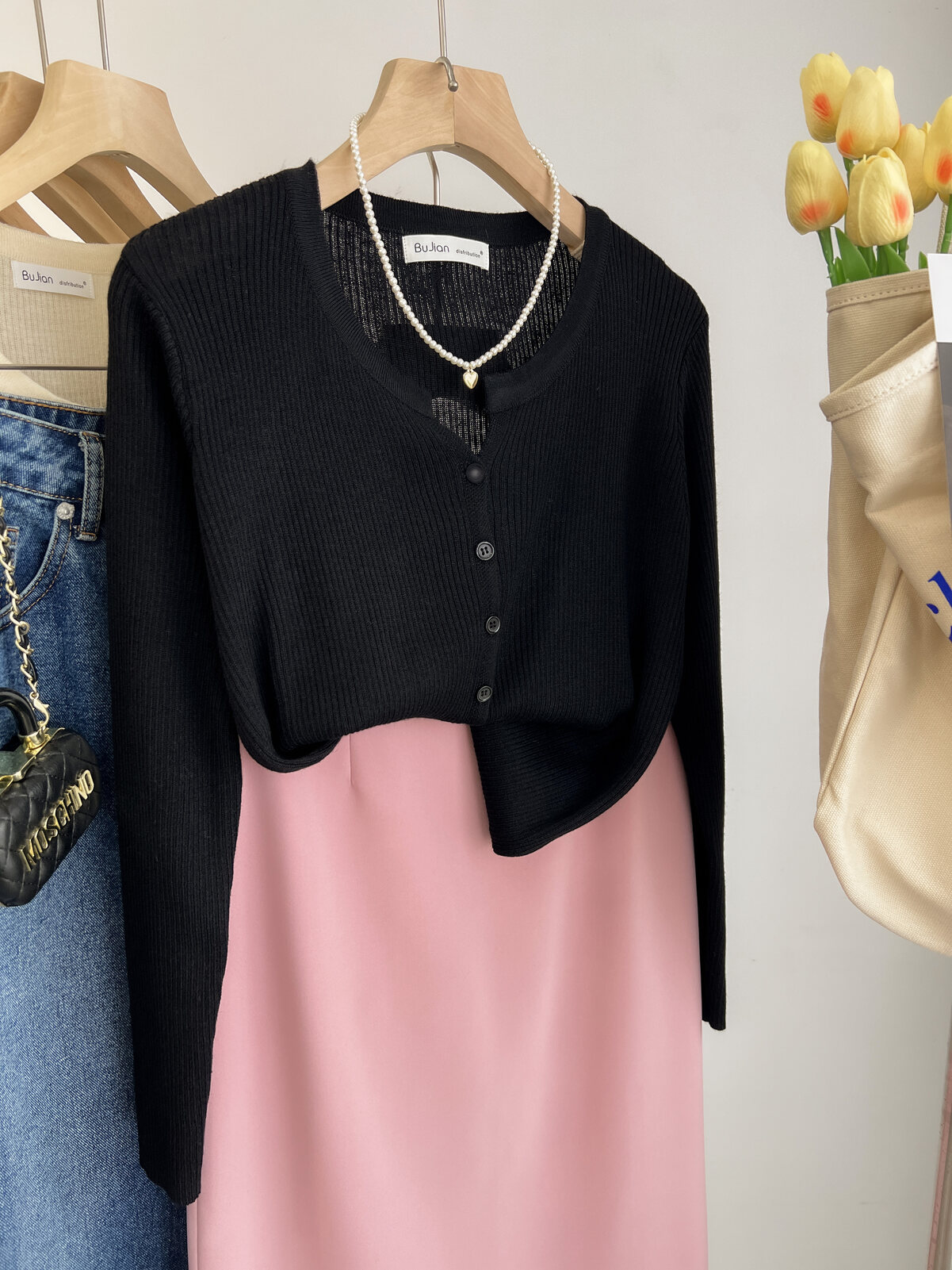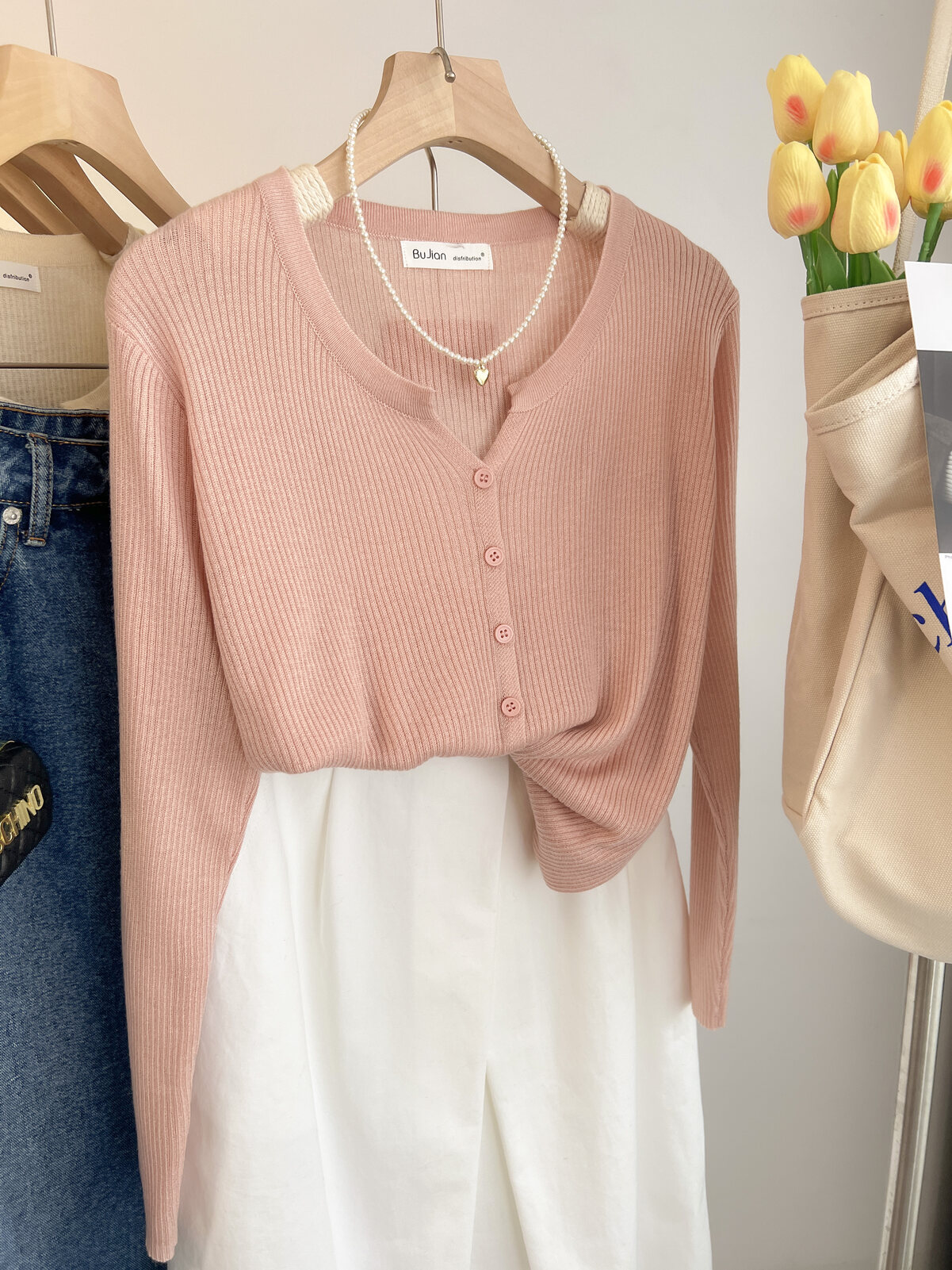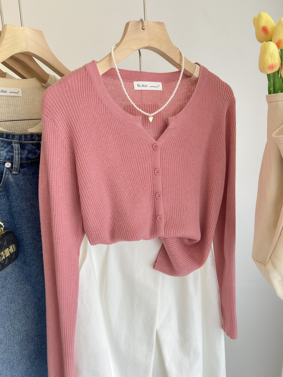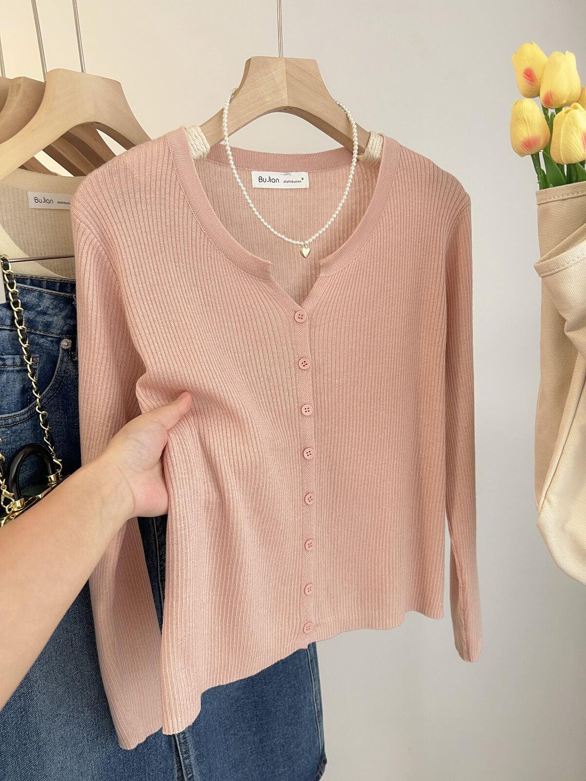 Розовый осенний кардиган, тонкий свитер, куртка, в стиле Шанель, V-образный вырез, оверсайз