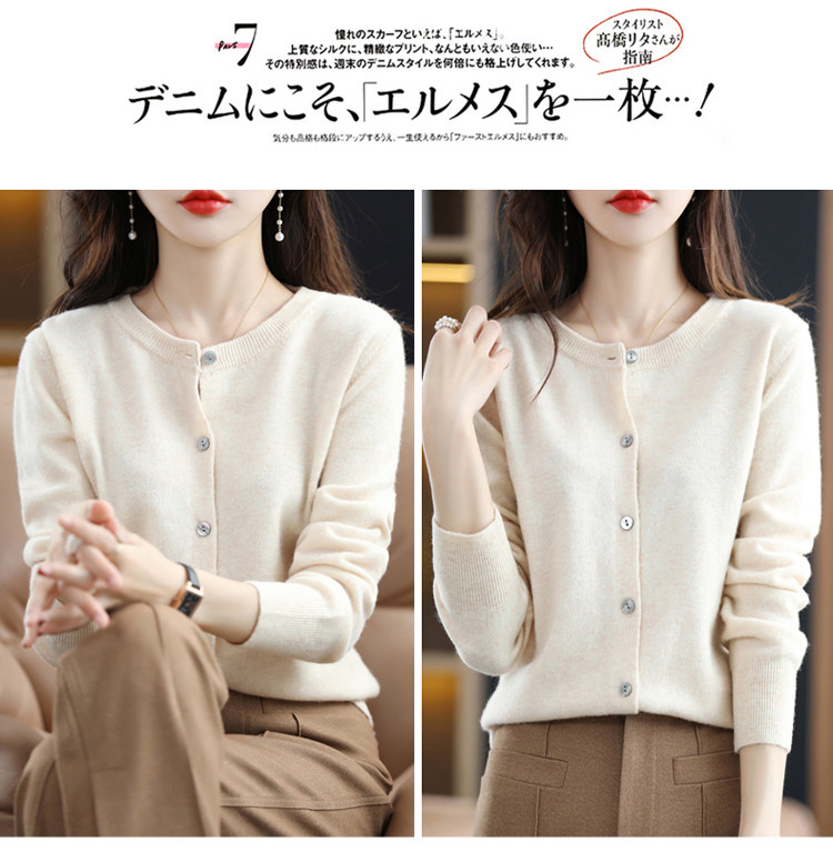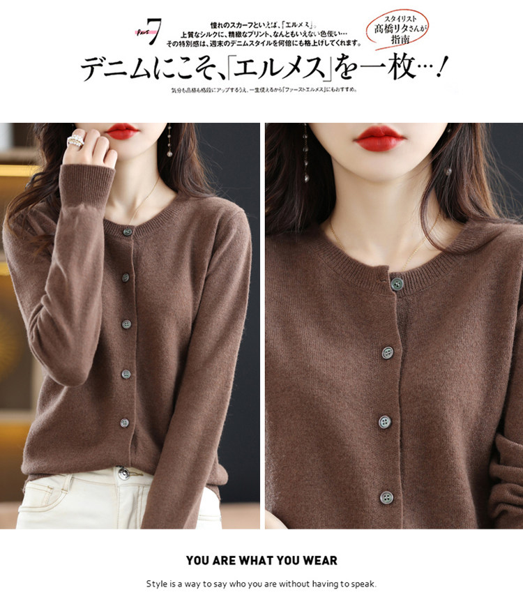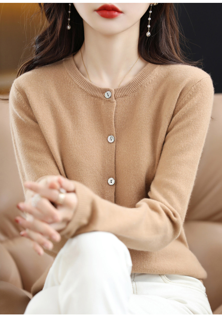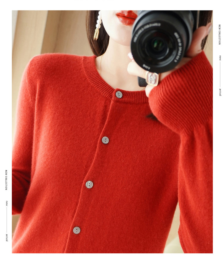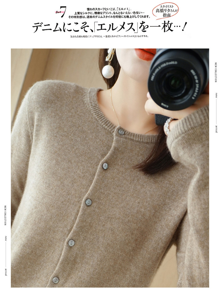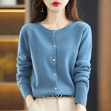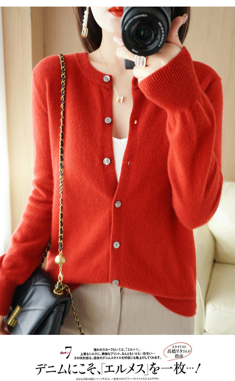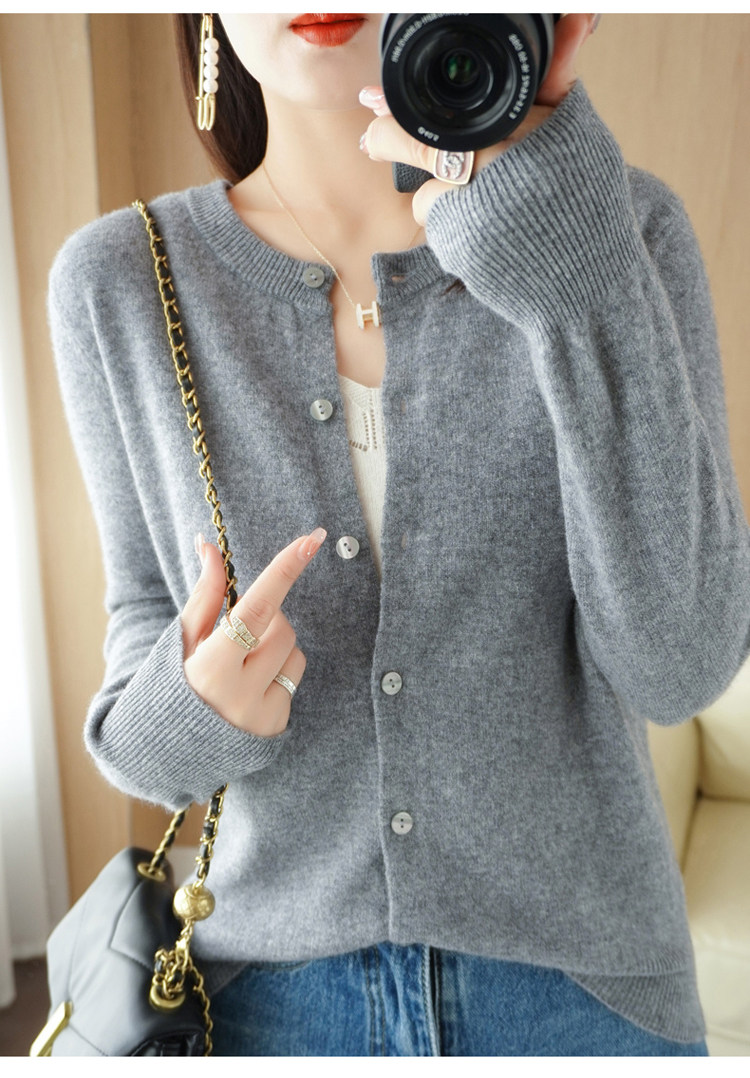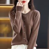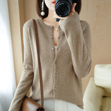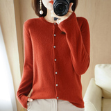 Шерстяной тонкий осенний кардиган с круглым воротником, свитер, куртка, оверсайз, в стиле Шанель