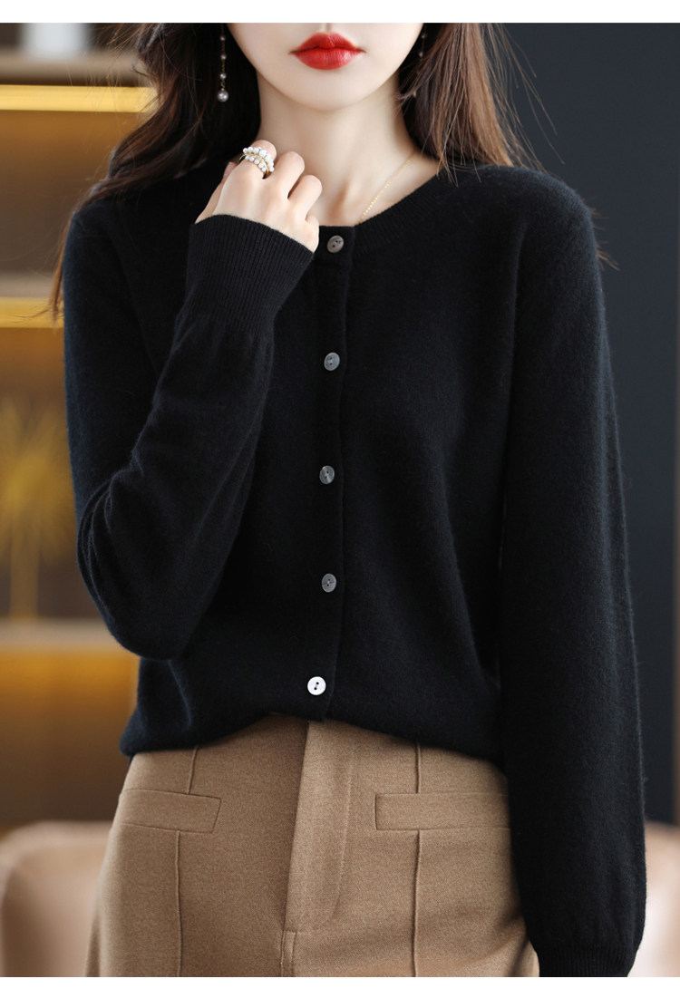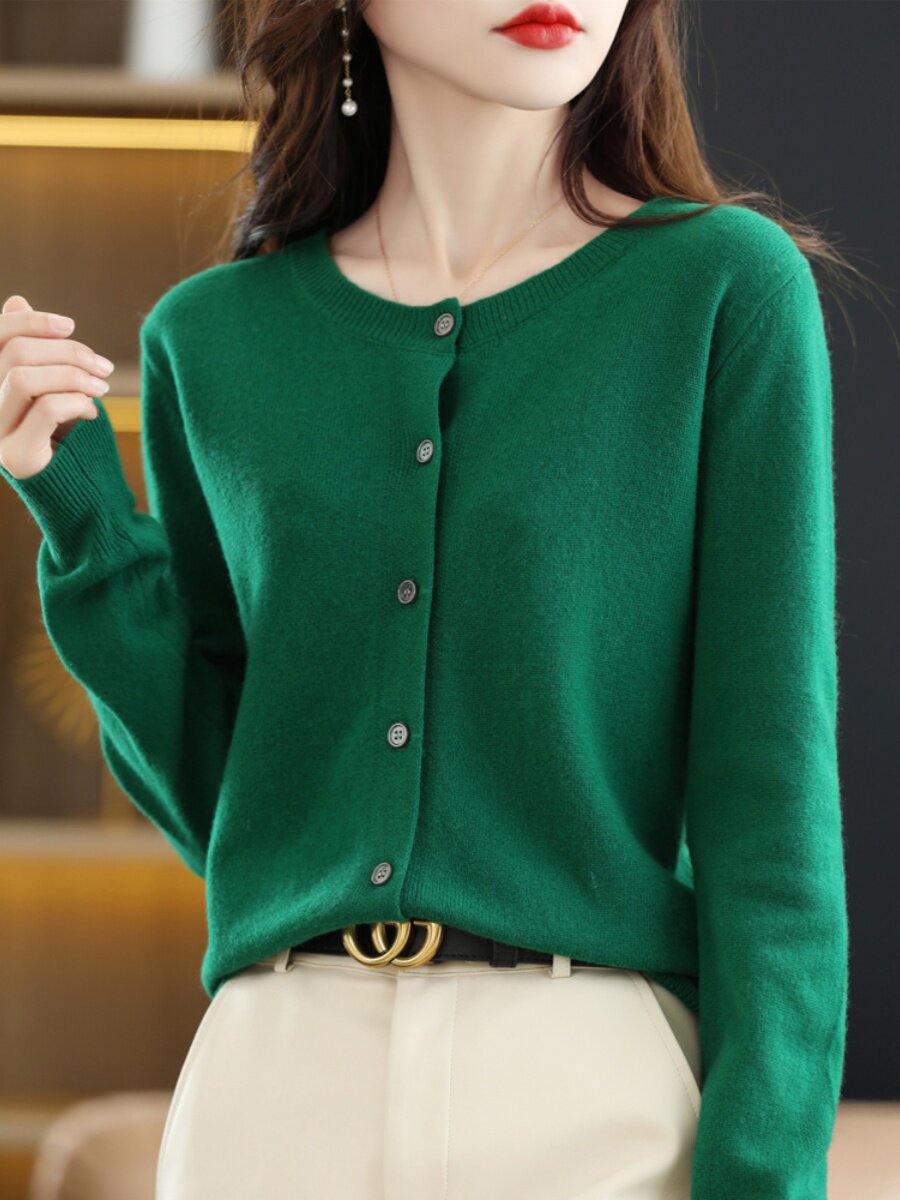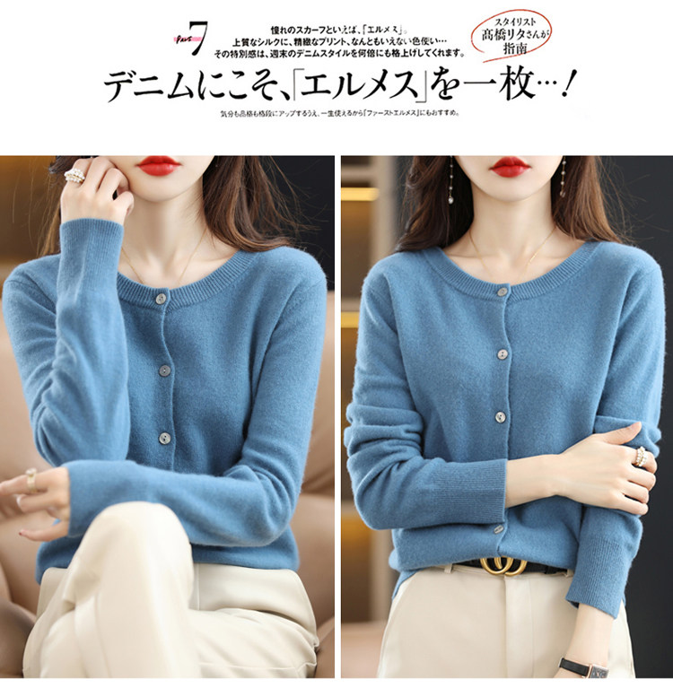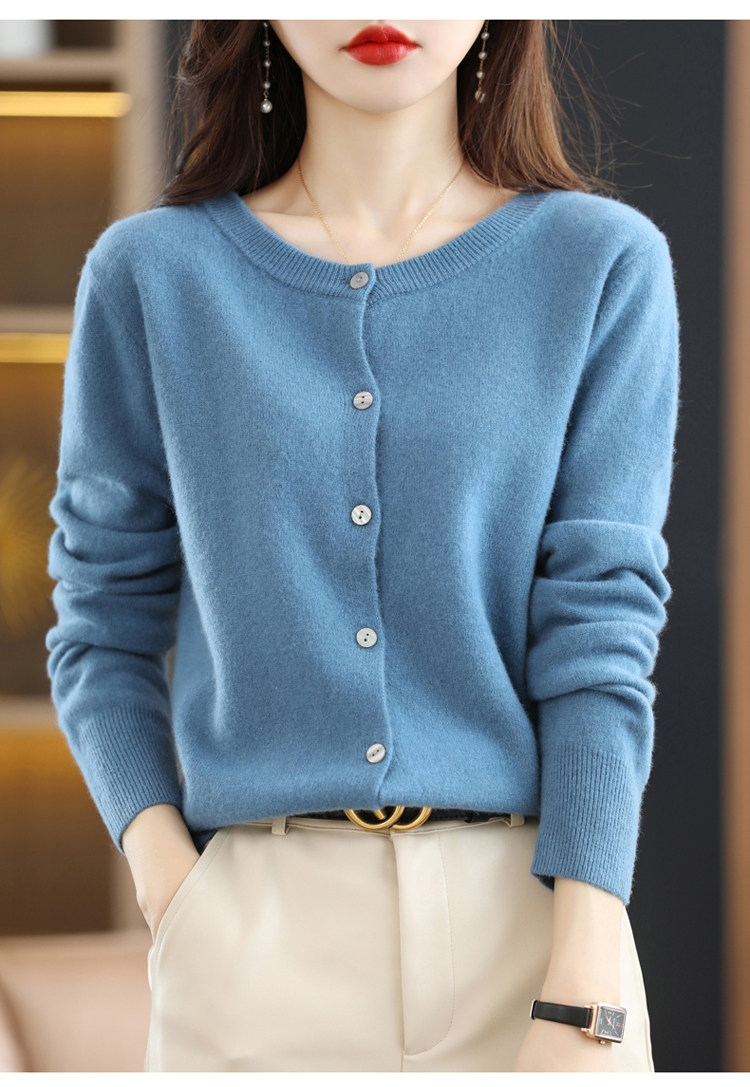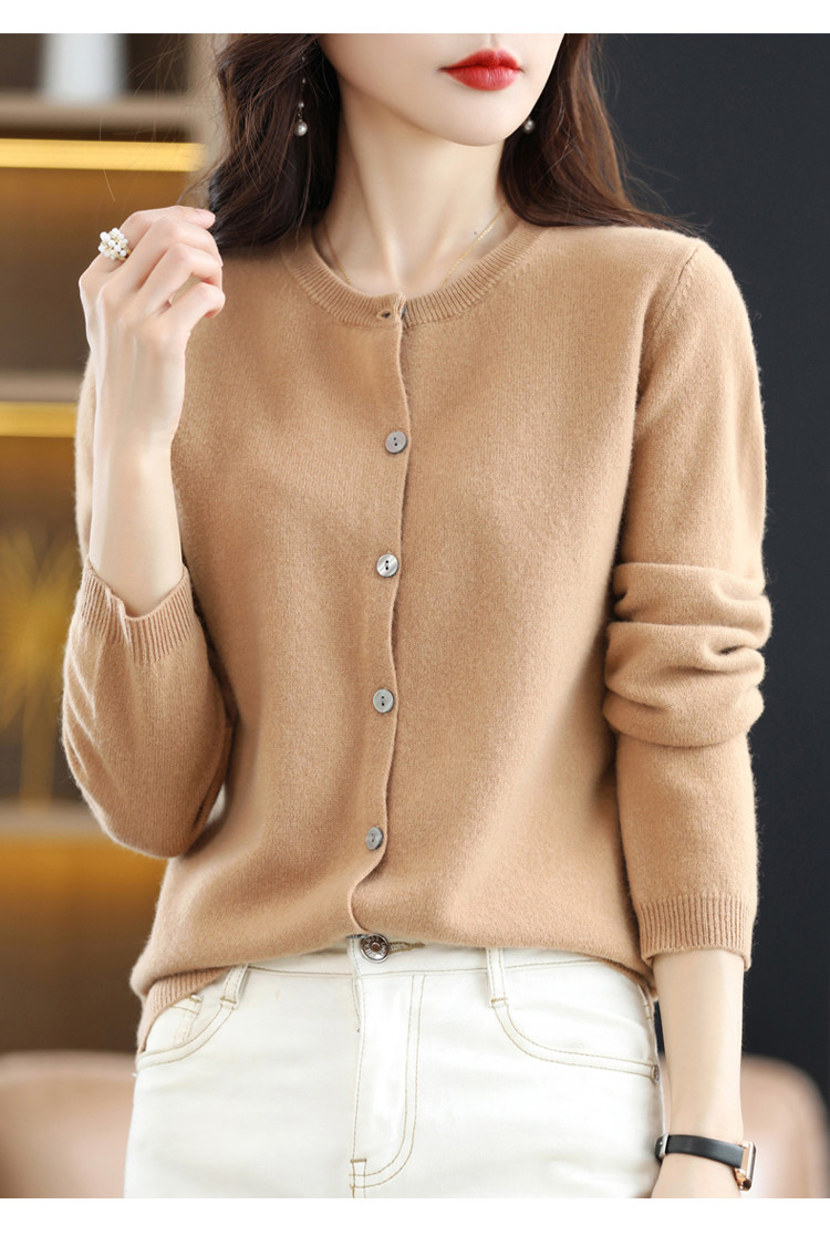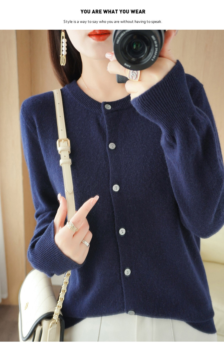 Шерстяной тонкий осенний кардиган с круглым воротником, свитер, куртка, оверсайз, в стиле Шанель