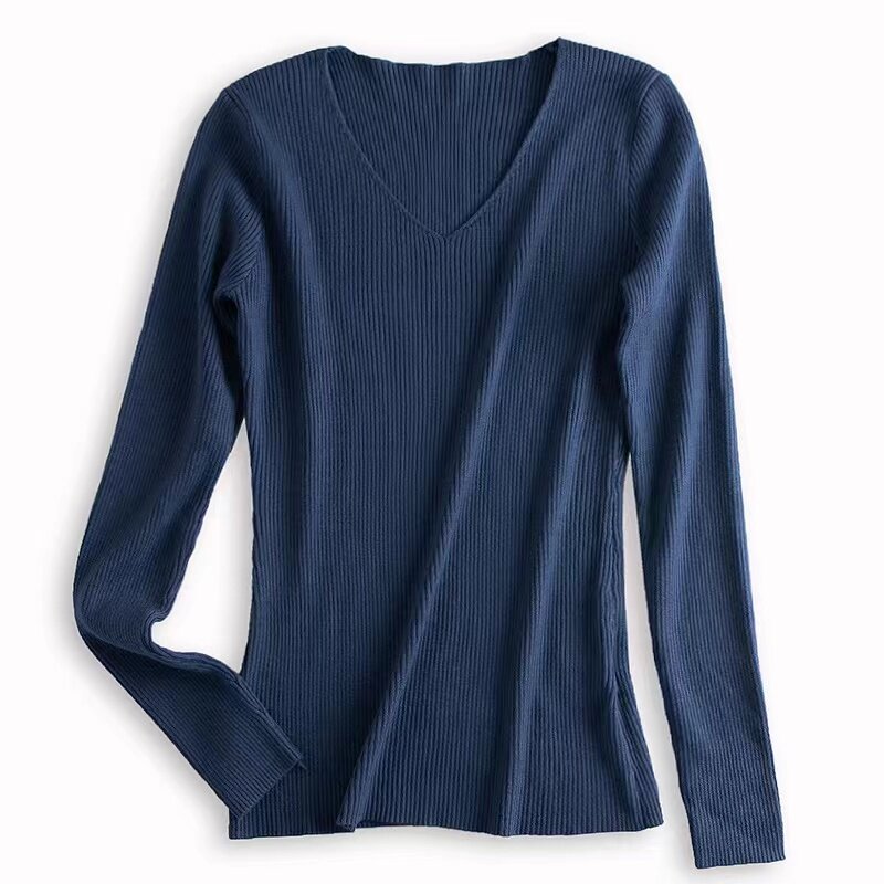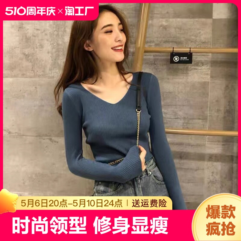 Базовый приятный телу осенний демисезонный трикотажный свитер, коллекция 2023, V-образный вырез
