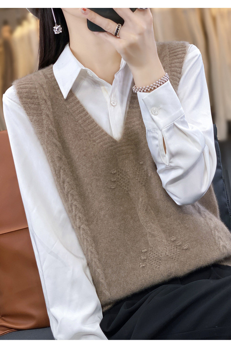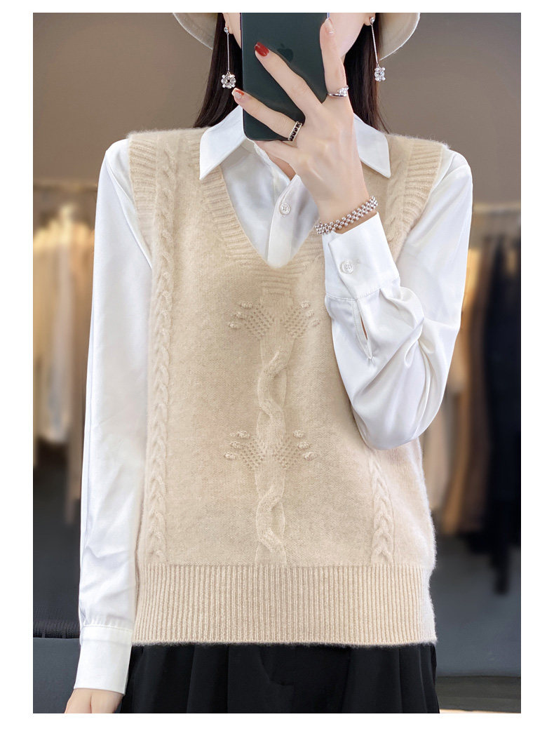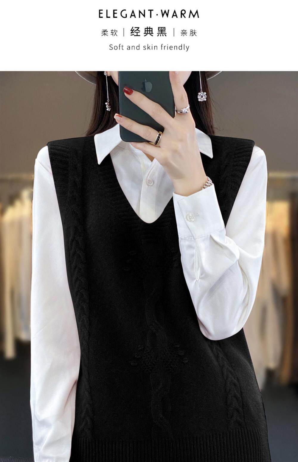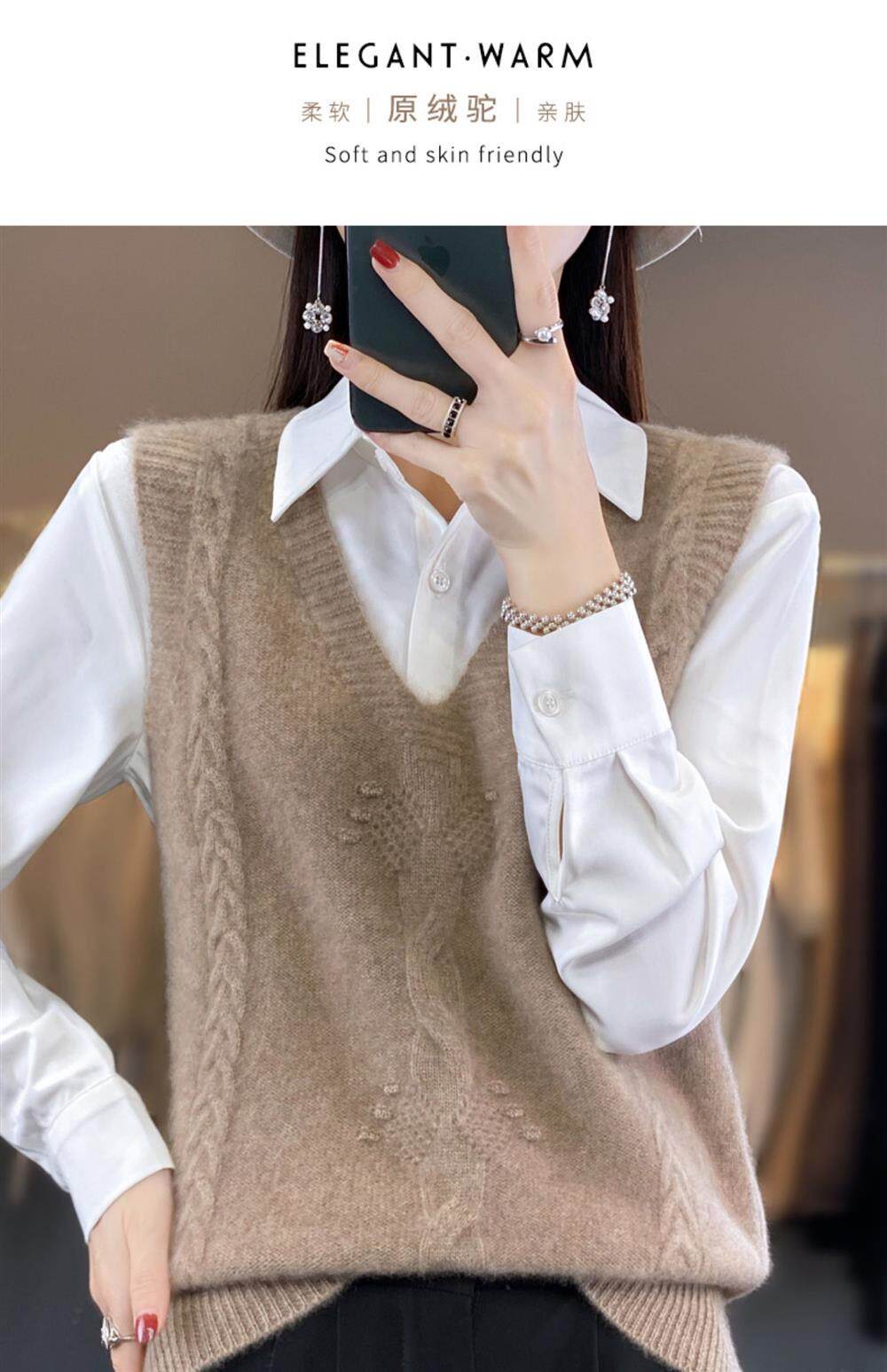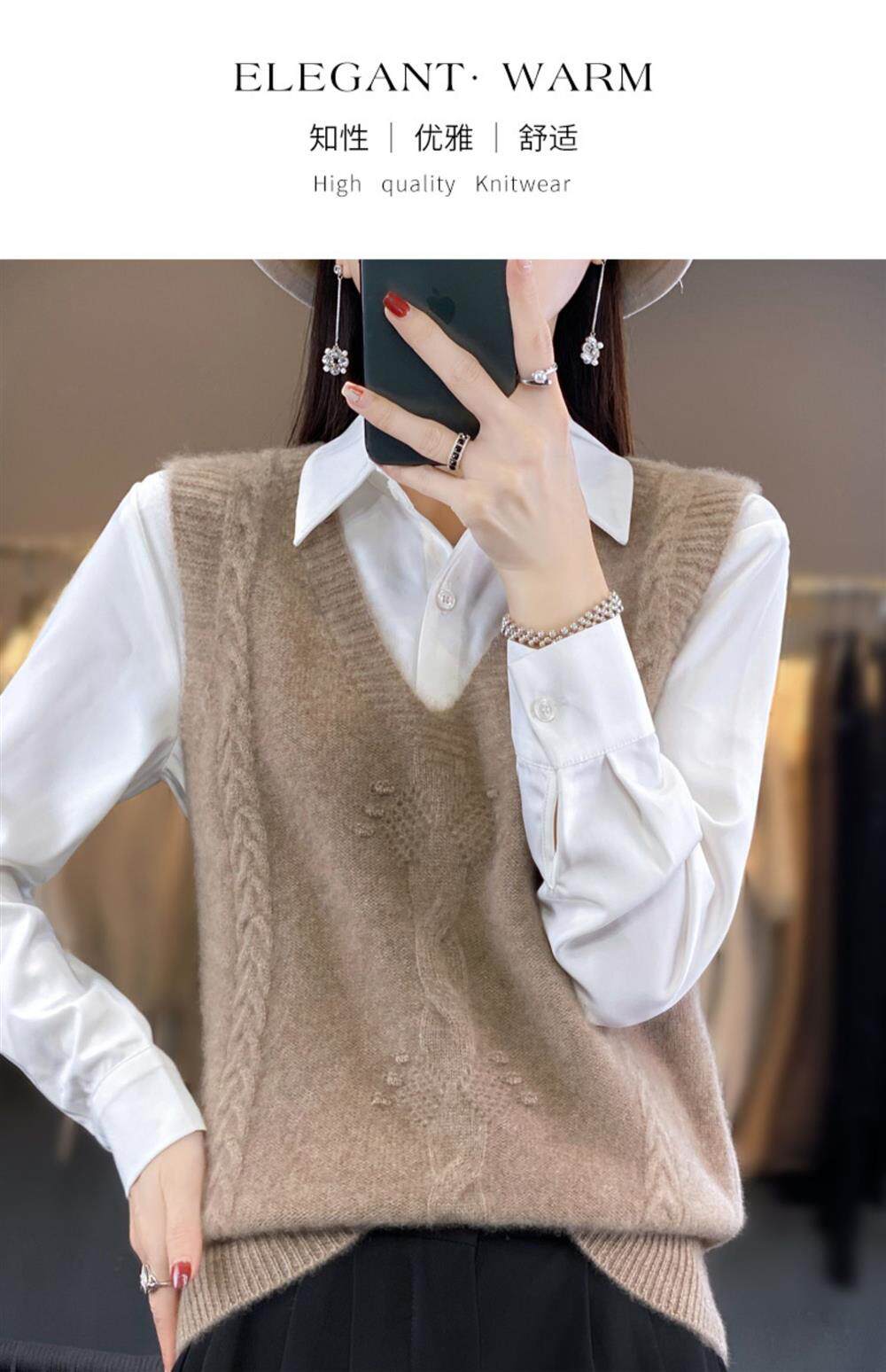 Жилет, трикотажная демисезонная майка топ, свитер без рукавов, оверсайз, V-образный вырез