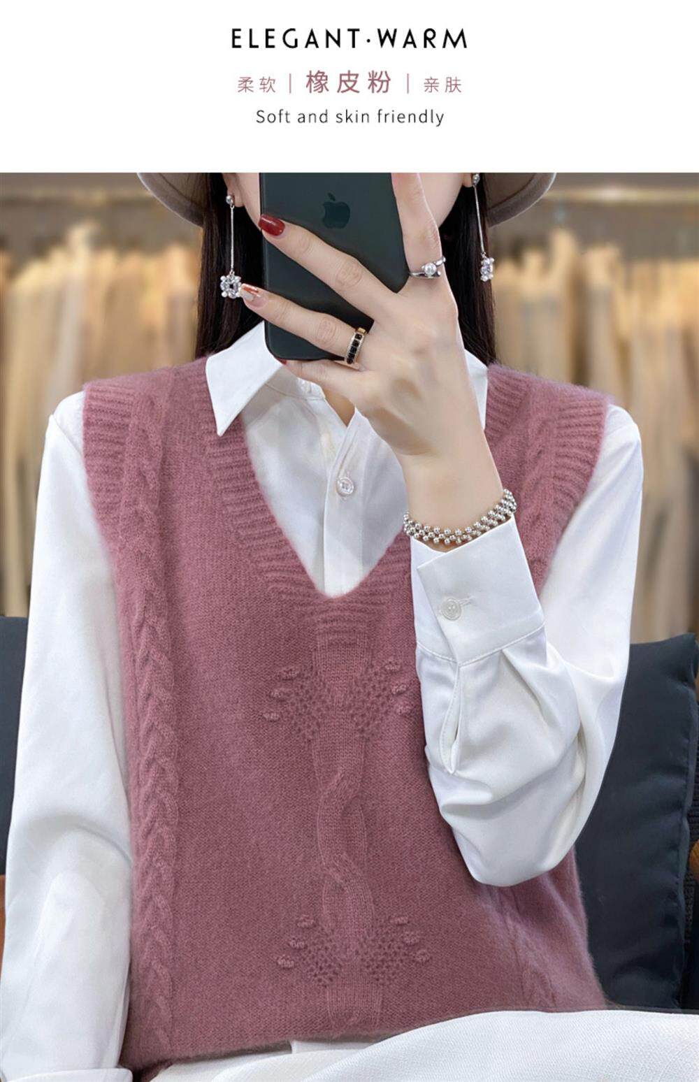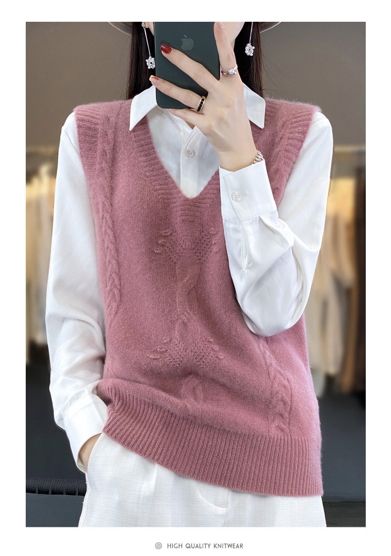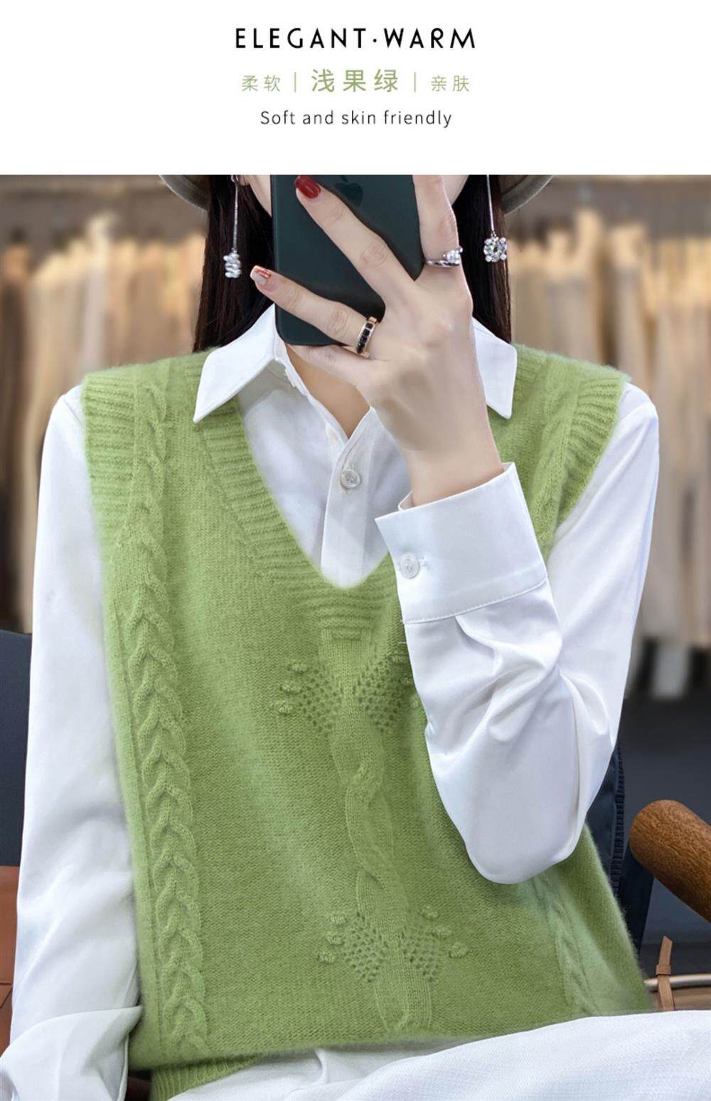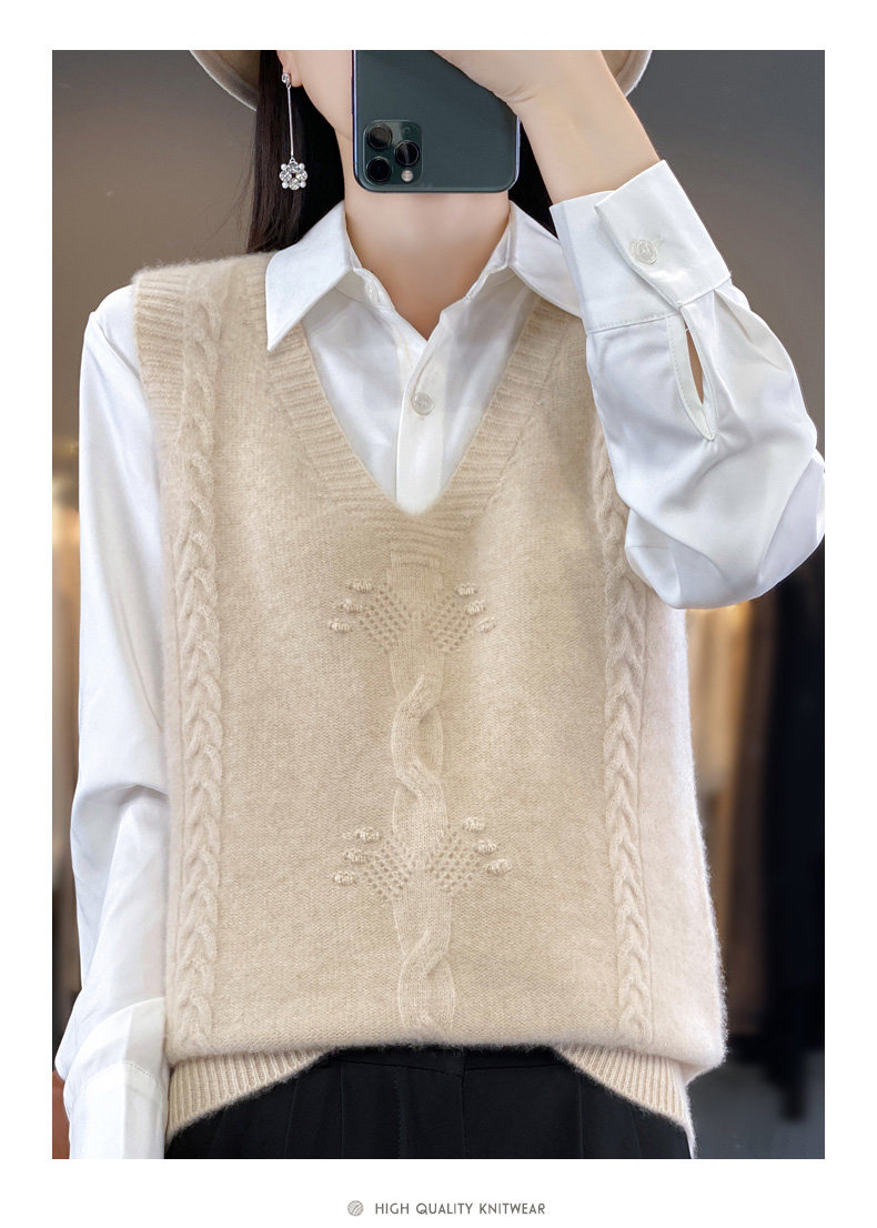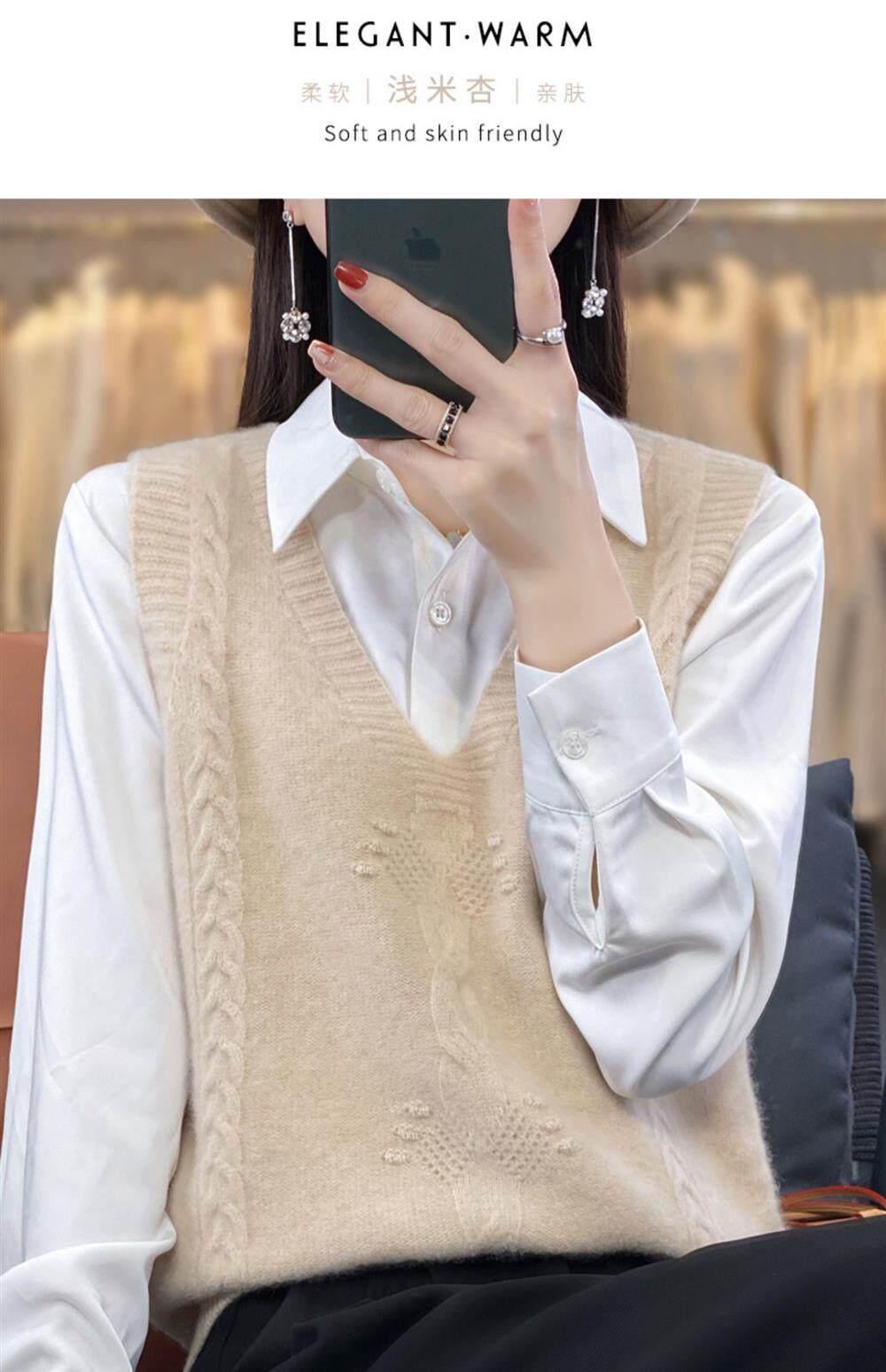 Жилет, трикотажная демисезонная майка топ, свитер без рукавов, оверсайз, V-образный вырез