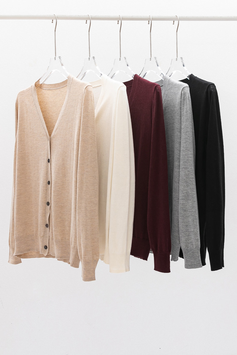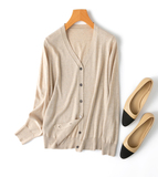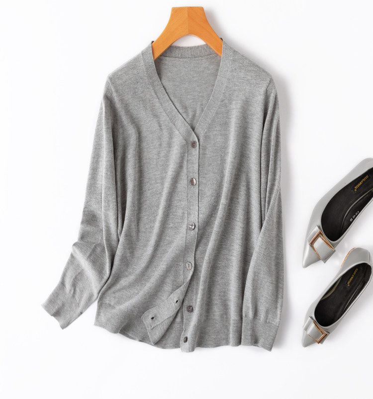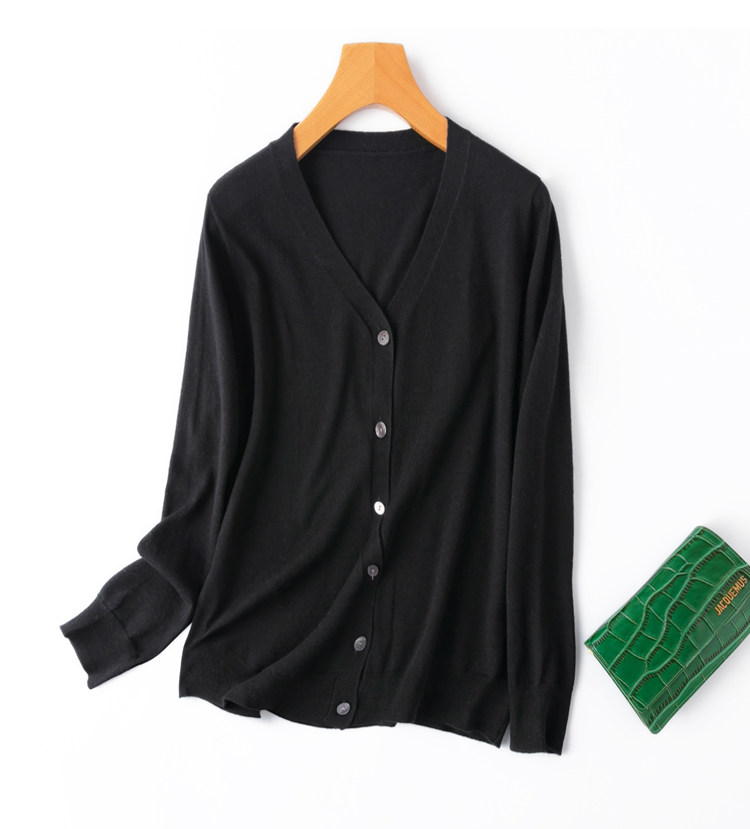 Осенний шелковый кашемировый базовый лонгслив для отдыха, кардиган, трикотажный свитер, V-образный вырез