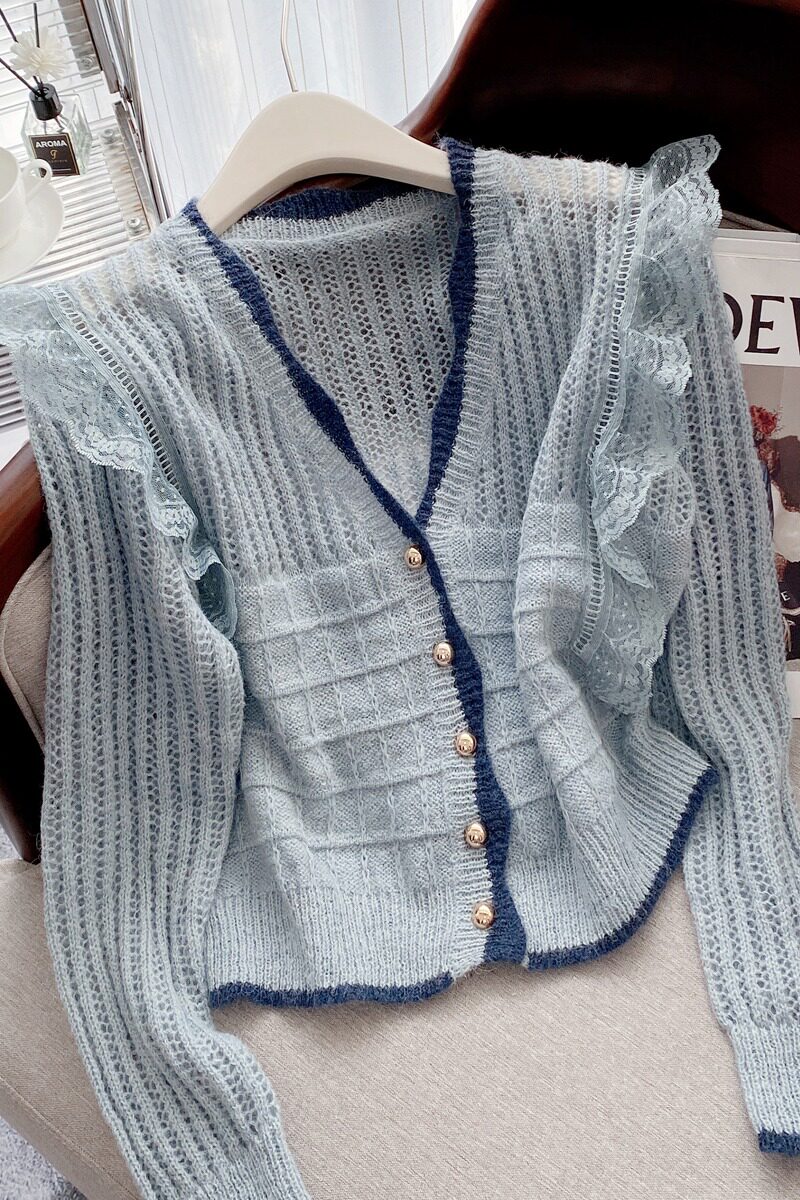 Осенний свитер, трикотажный кардиган, изысканный стиль, V-образный вырез