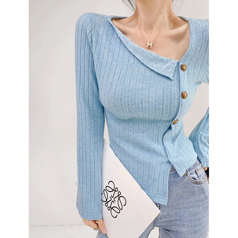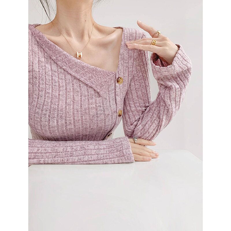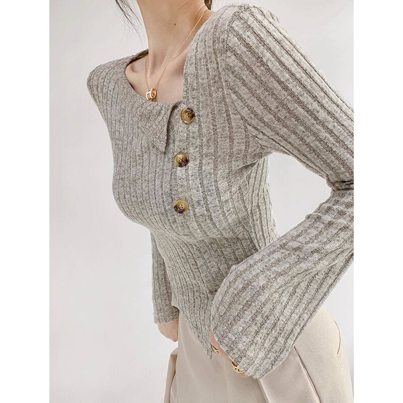 Базовый приятный телу демисезонный трикотажный свитер, коллекция 2023, французский стиль