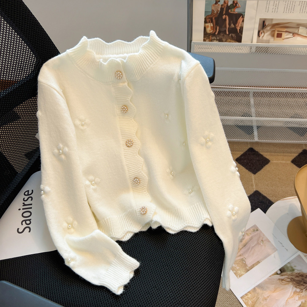 Короткий осенний свитер, куртка, трикотажный кардиган, французский стиль, в стиле Шанель