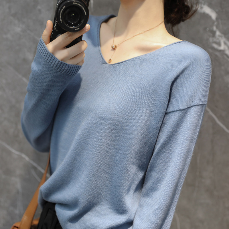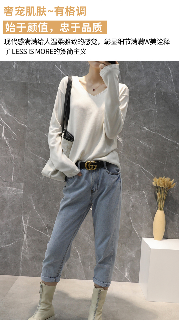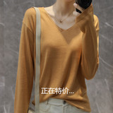 Демисезонный кашемировый трикотажный свитер, V-образный вырез, облегающий крой