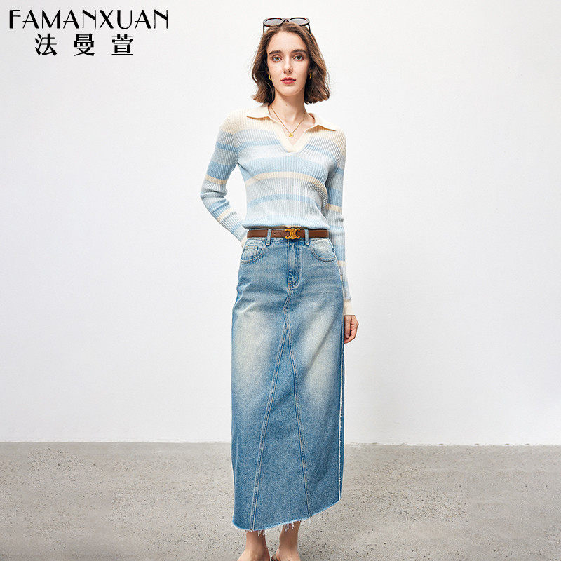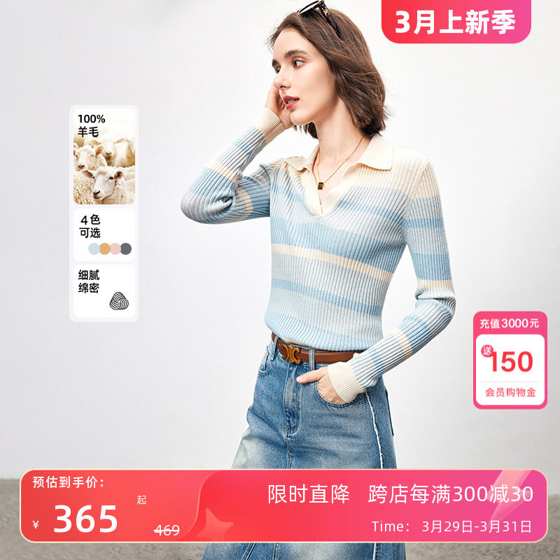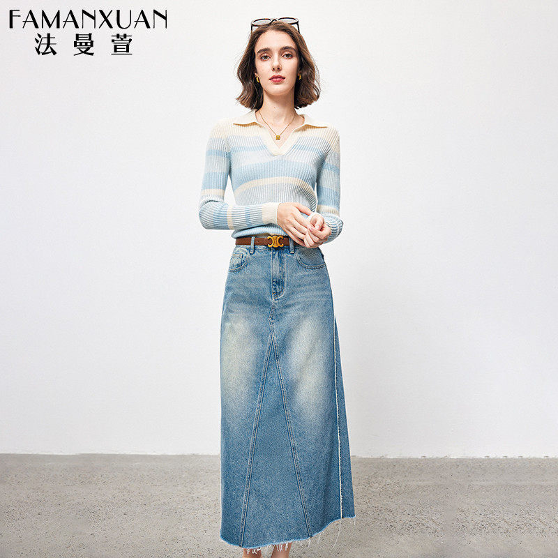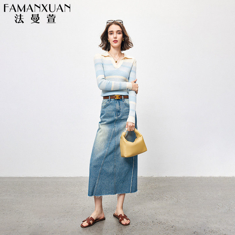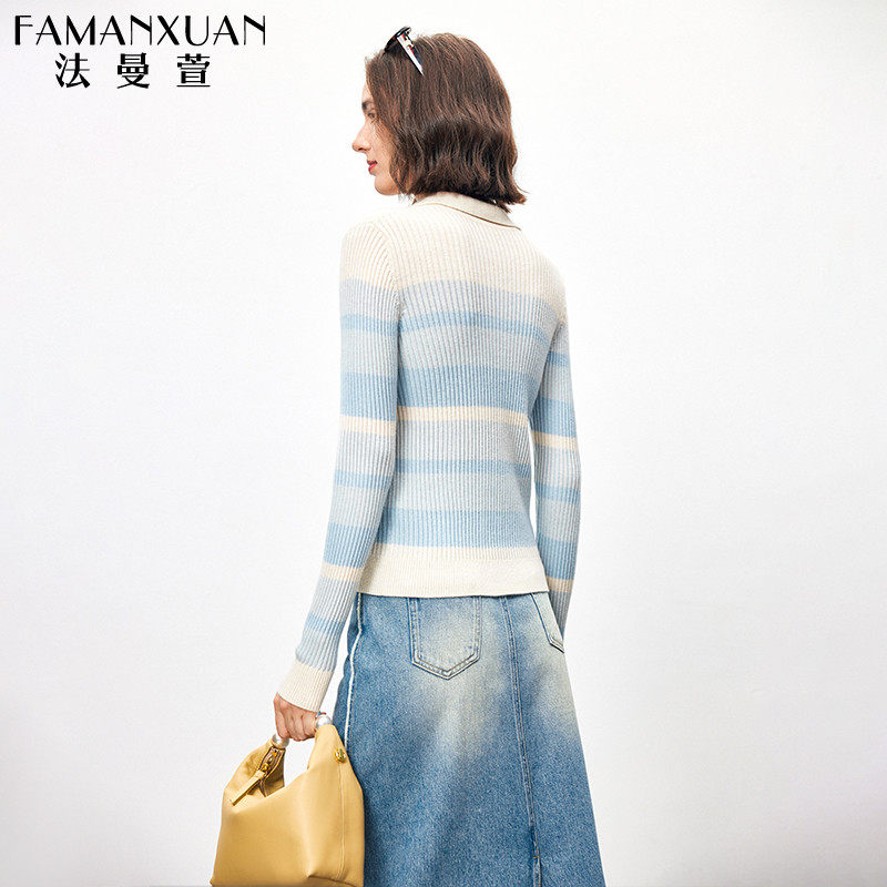 法曼萱 Трикотажный весенний шерстяной базовый приятный телу свитер, французский стиль, воротник поло, облегающий крой