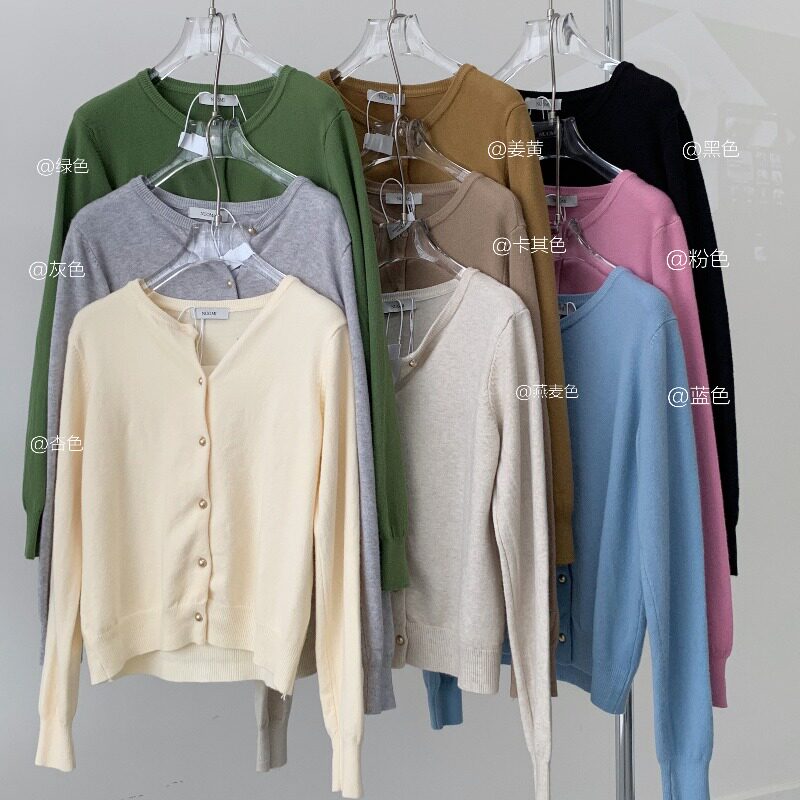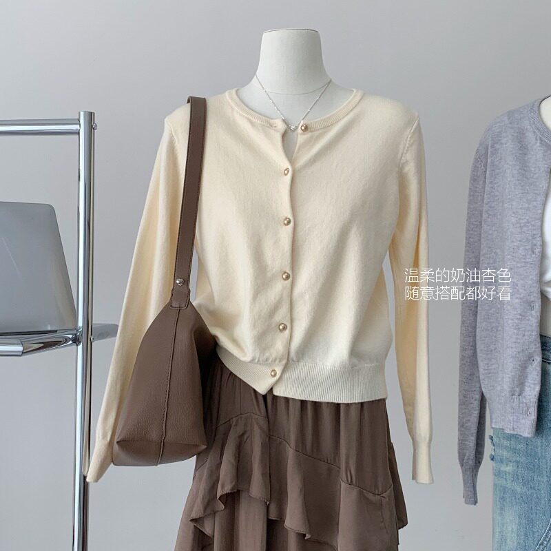 Абрикосовый трикотажный осенний свитер с круглым воротником, кардиган, базовый лонгслив, в западном стиле