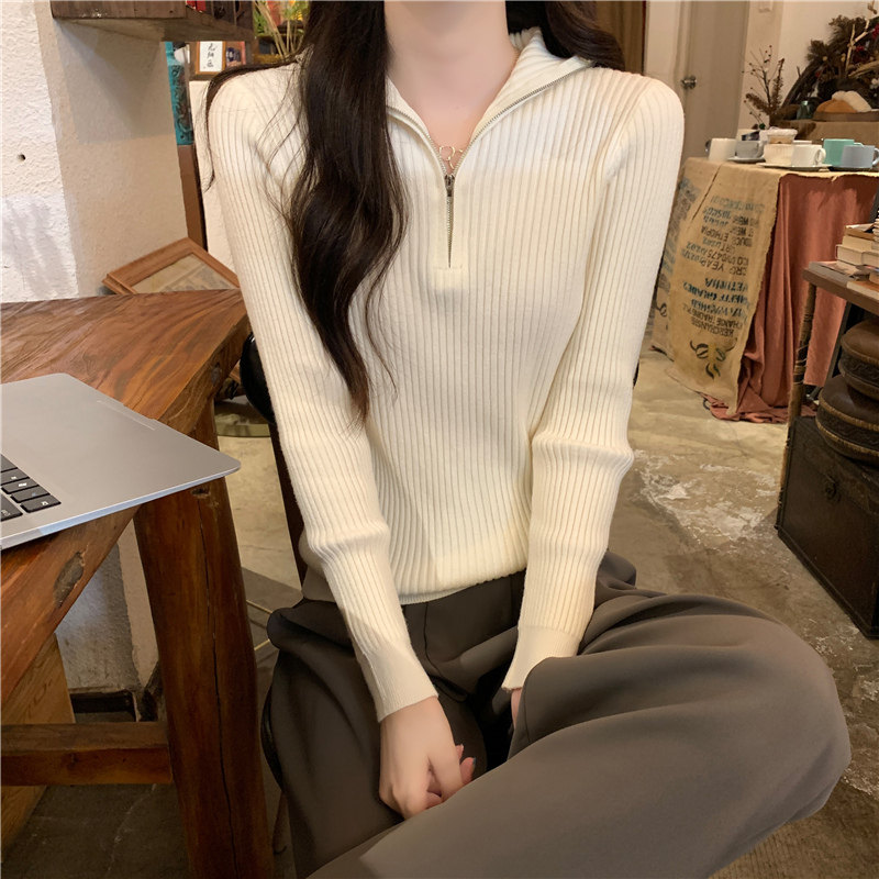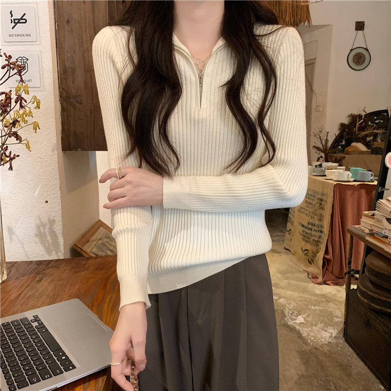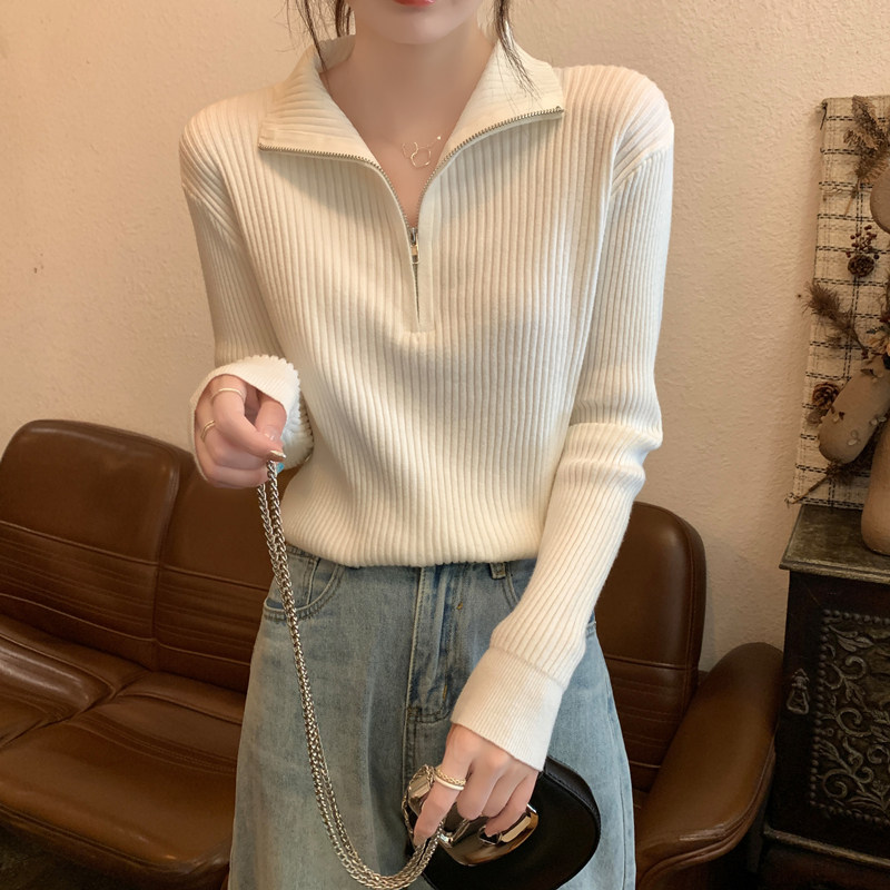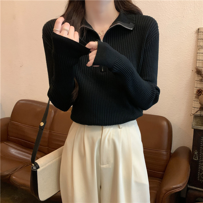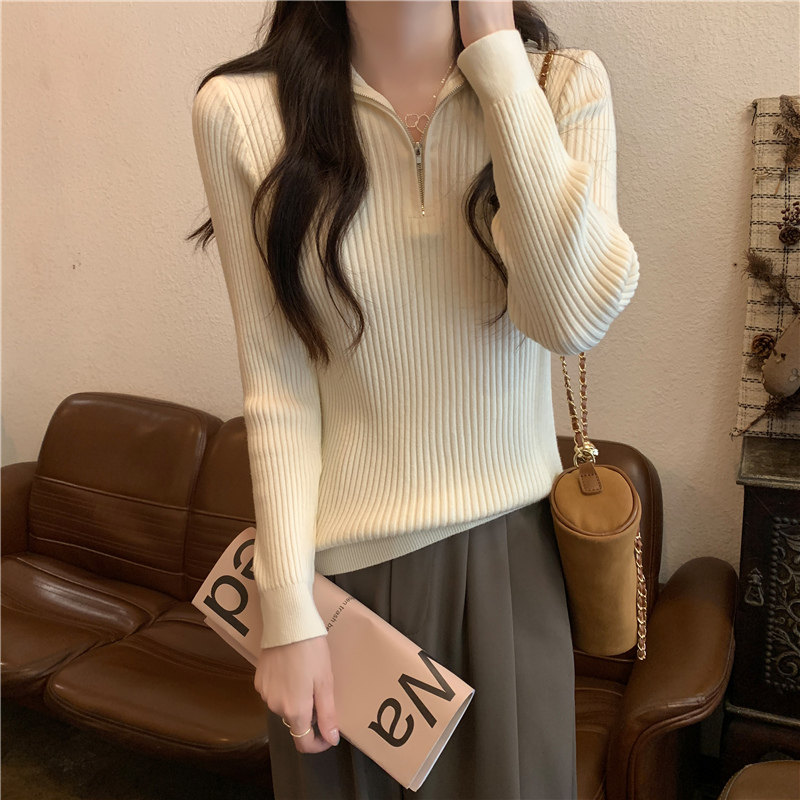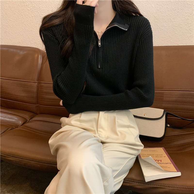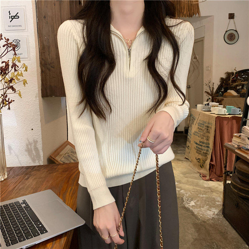 Демисезонный трикотажный лонгслив, свитер, французский стиль, изысканный стиль