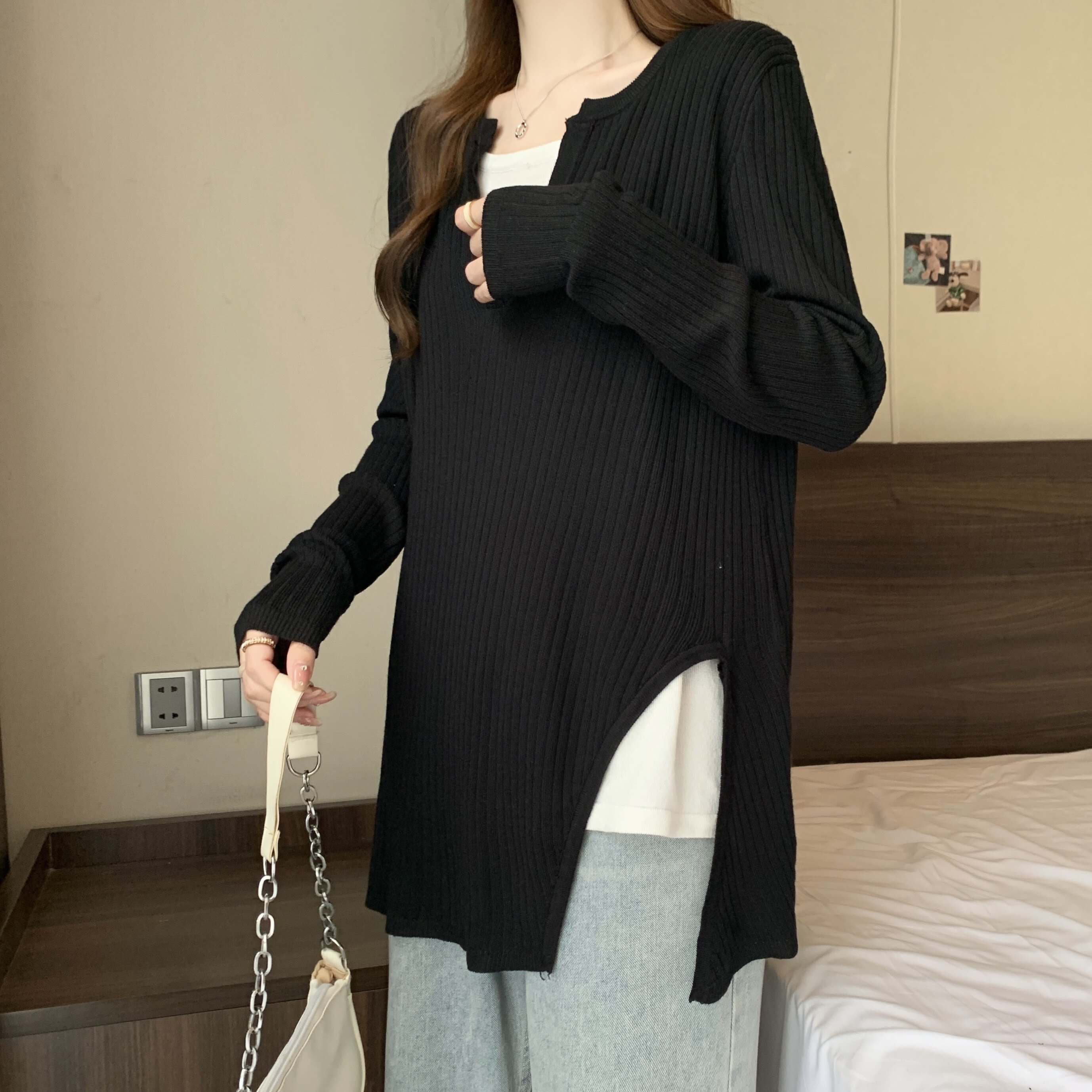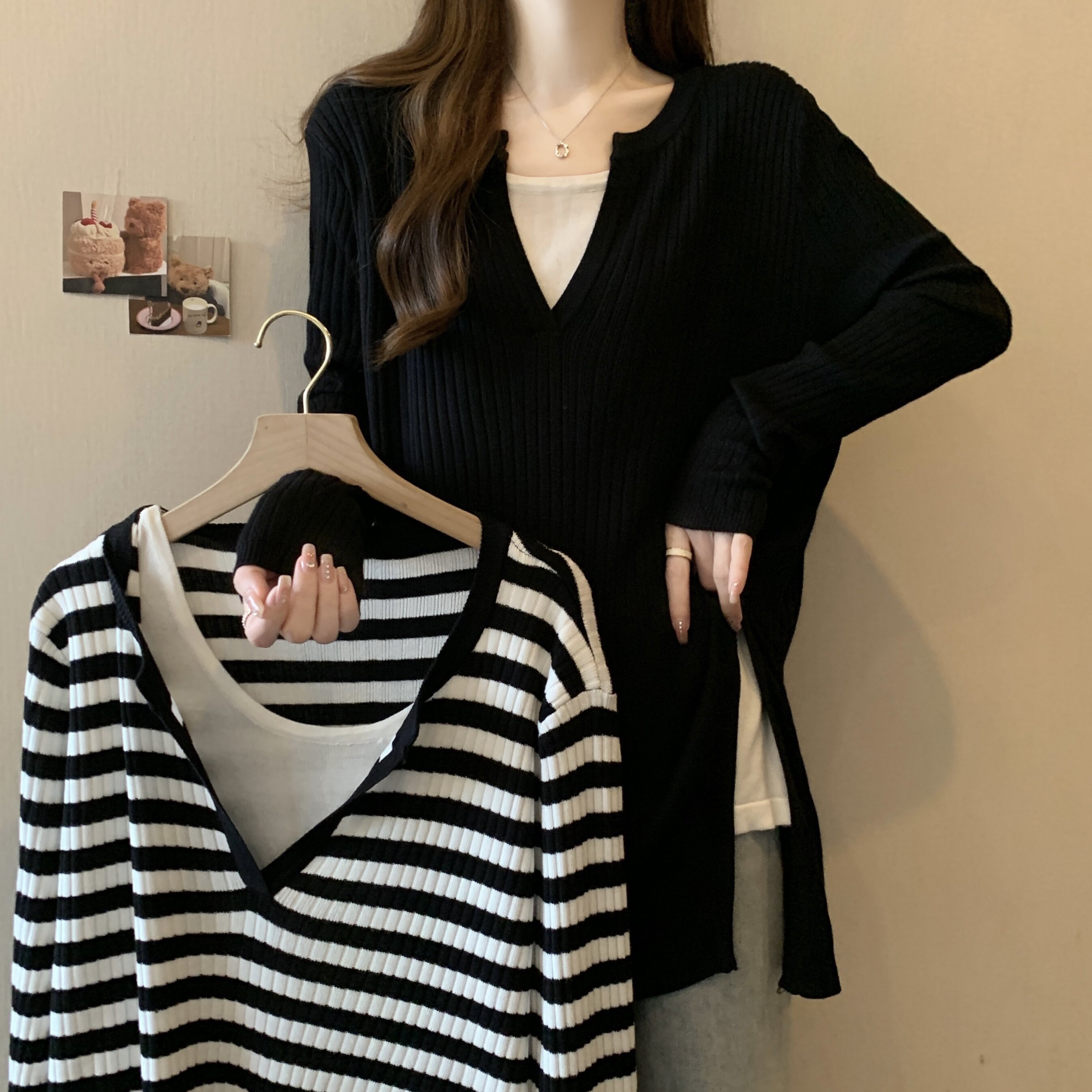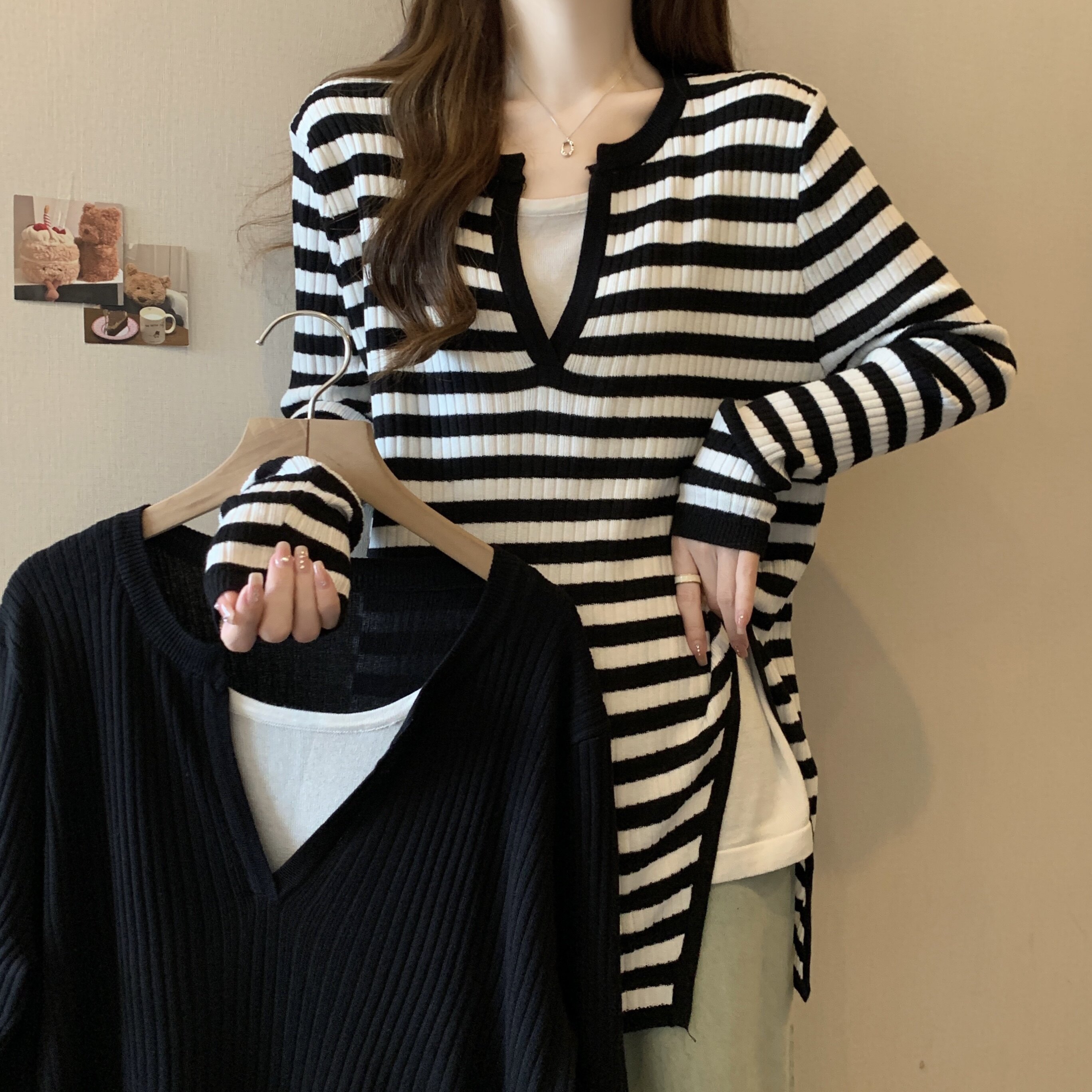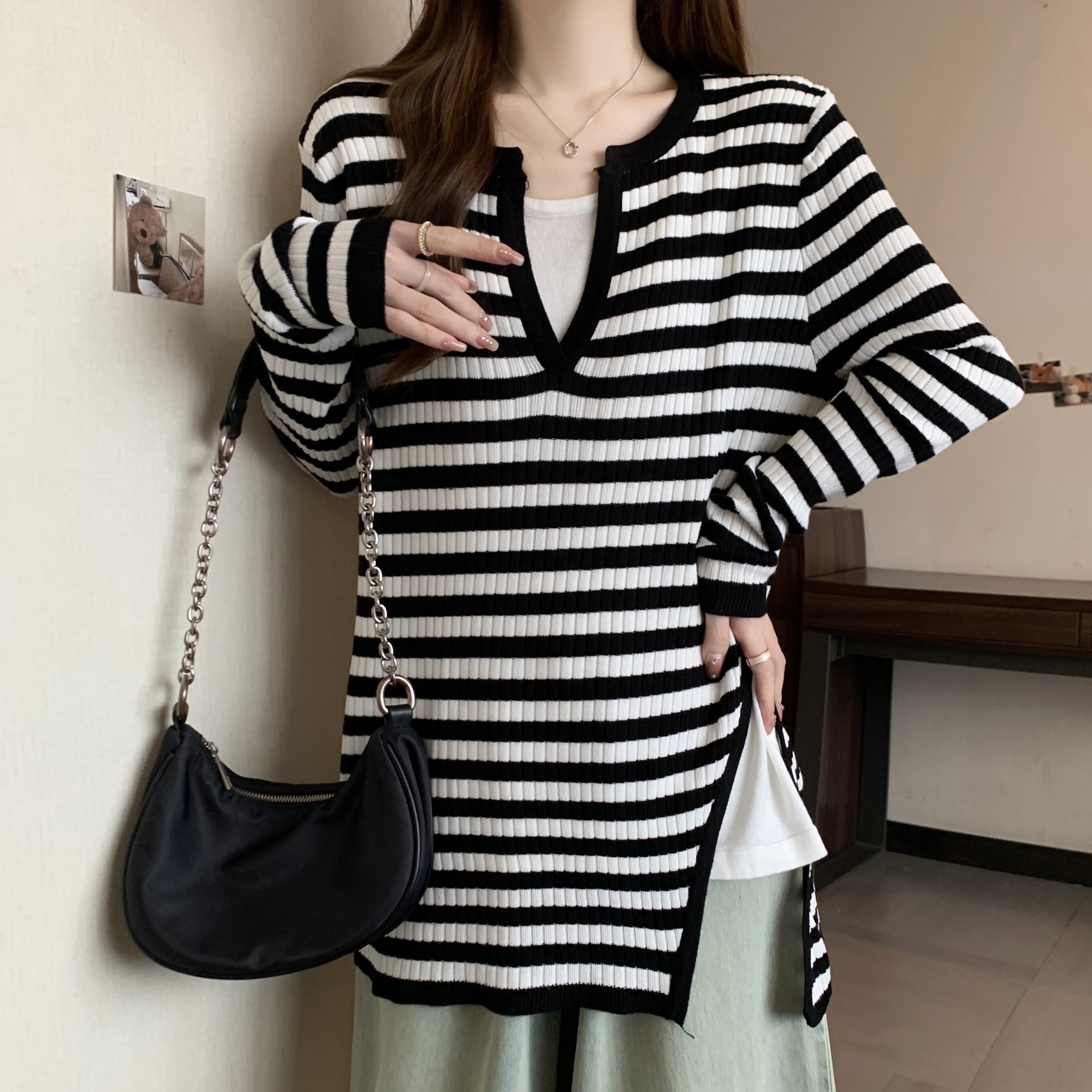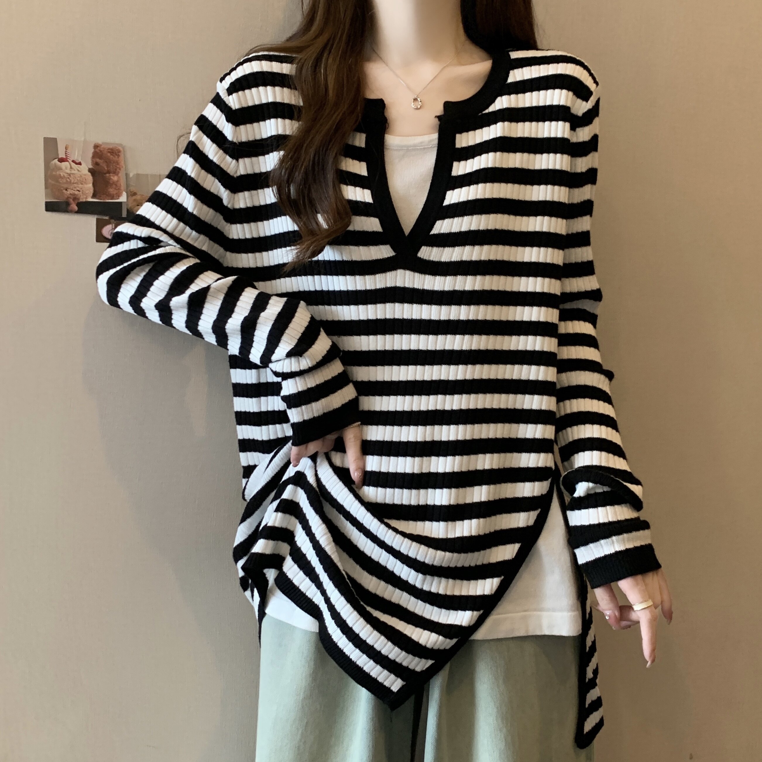 Базовый демисезонный свитер, дизайнерский трикотажный комплект, большой размер, подходит для полных девушек, оверсайз, свободный крой, V-образный вырез