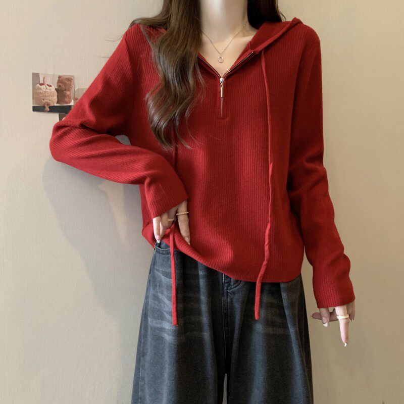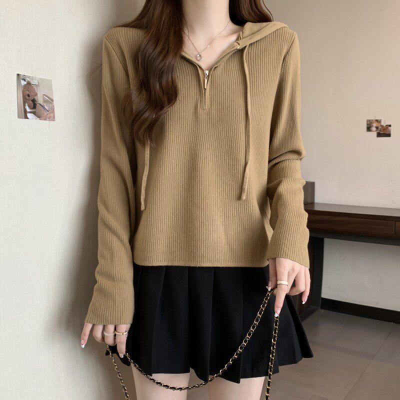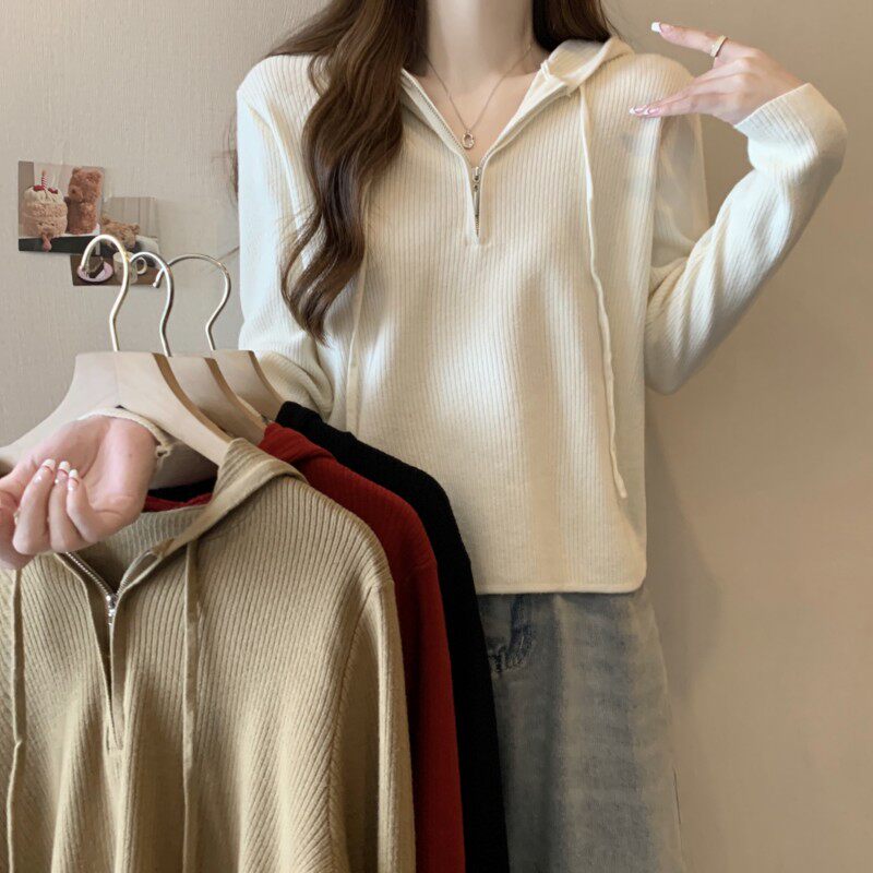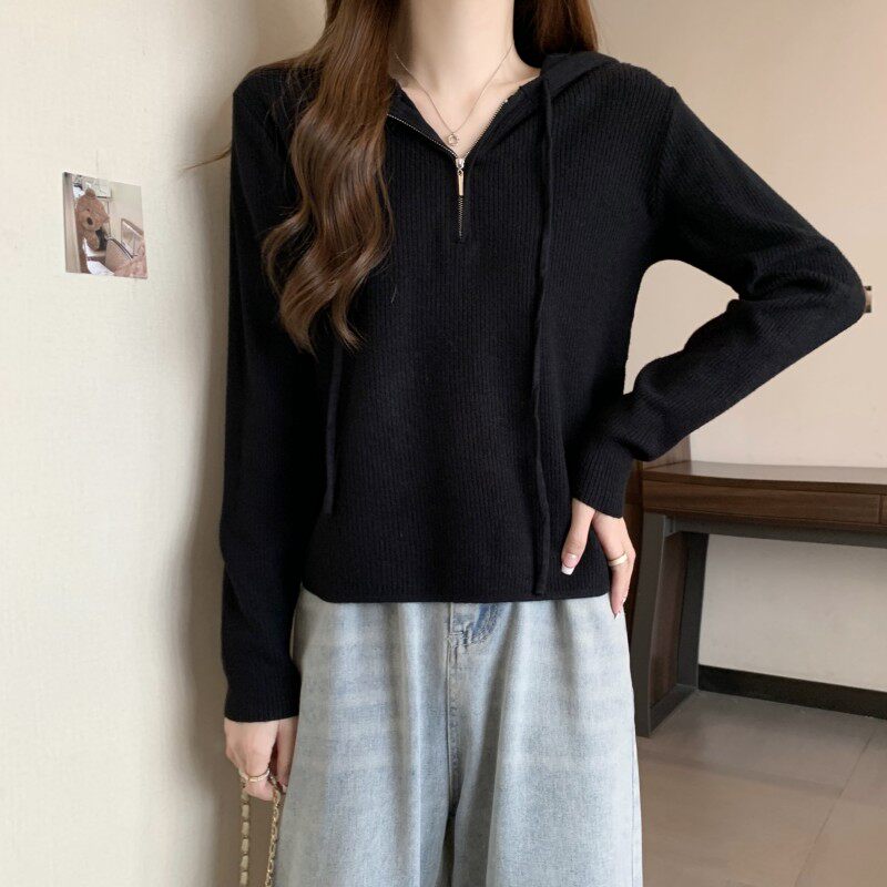 Трикотажный свитер с капюшоном, осенняя толстовка, комплект, приталенный лонгслив, коллекция 2023