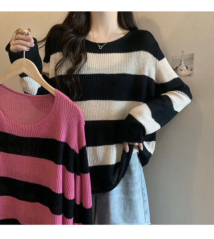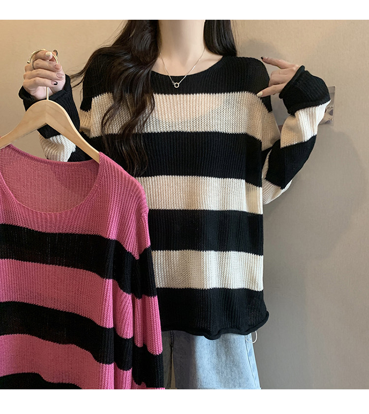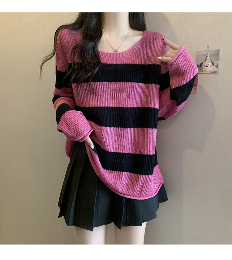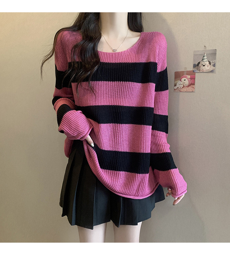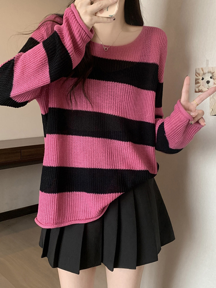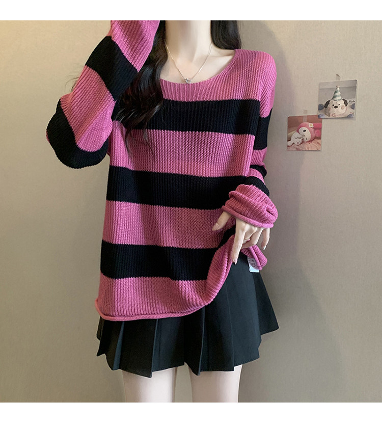 Женский трикотаж в розово-красную полоску больших размеров, ранняя осень 2025, новинка толстых миллиметров, тонкий стиль, уникальный топ