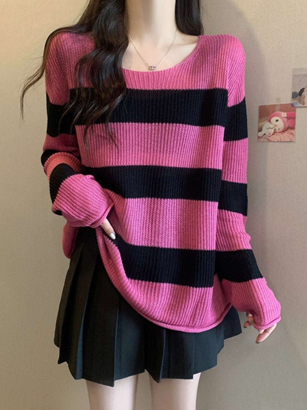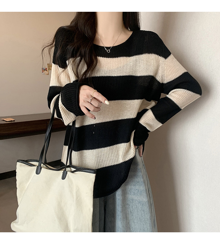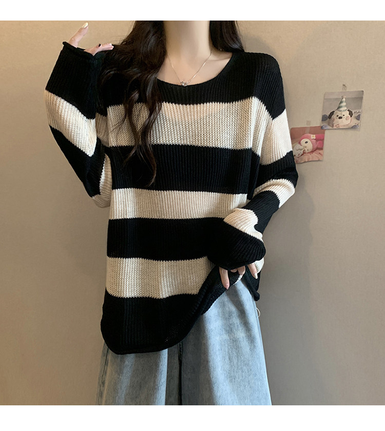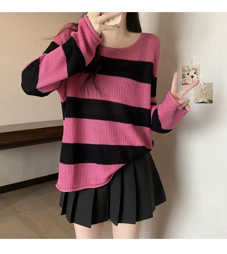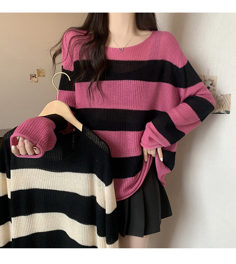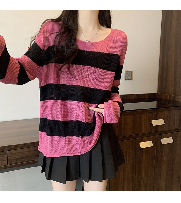 Женский трикотаж в розово-красную полоску больших размеров, ранняя осень 2025, новинка толстых миллиметров, тонкий стиль, уникальный топ